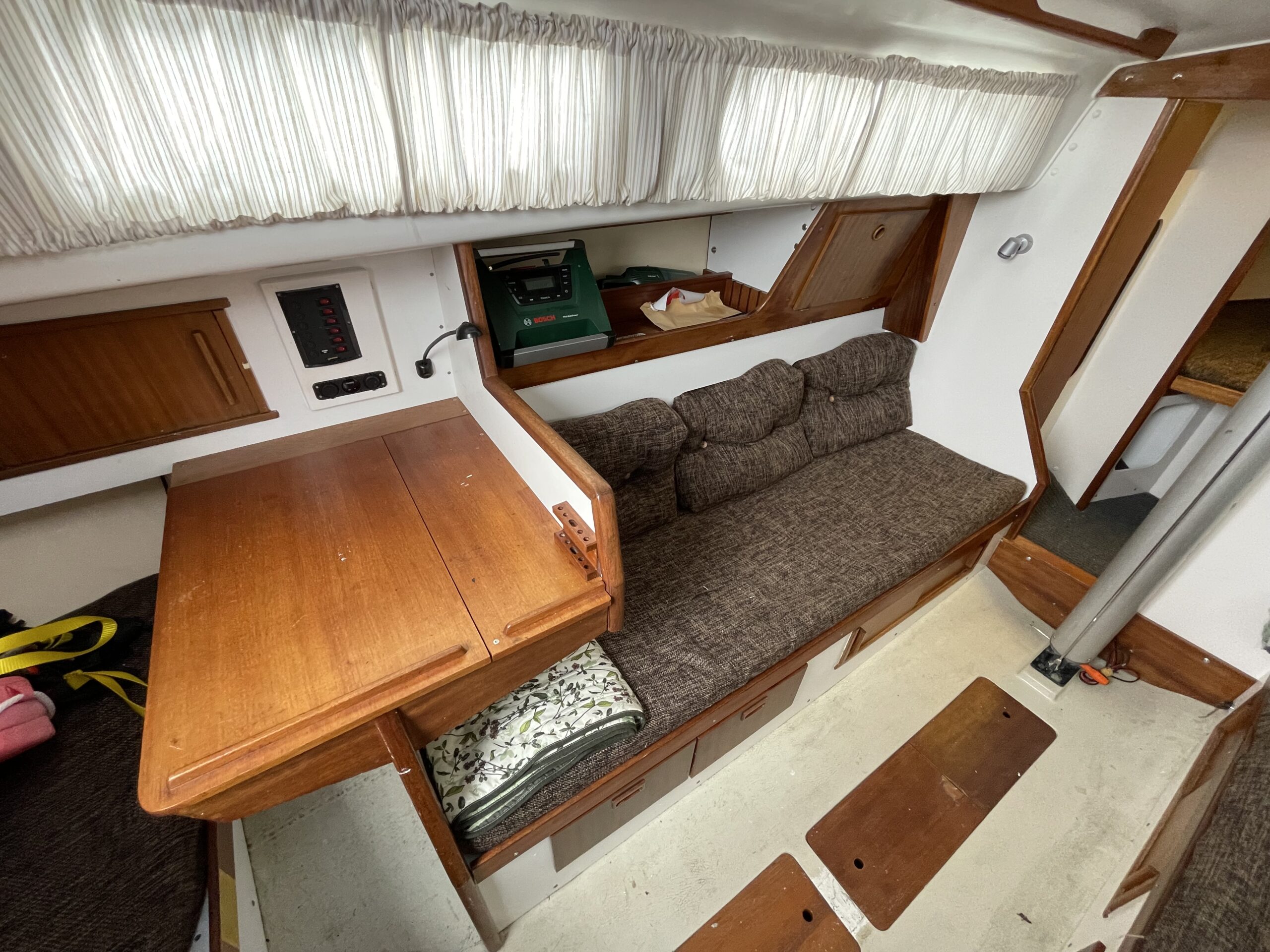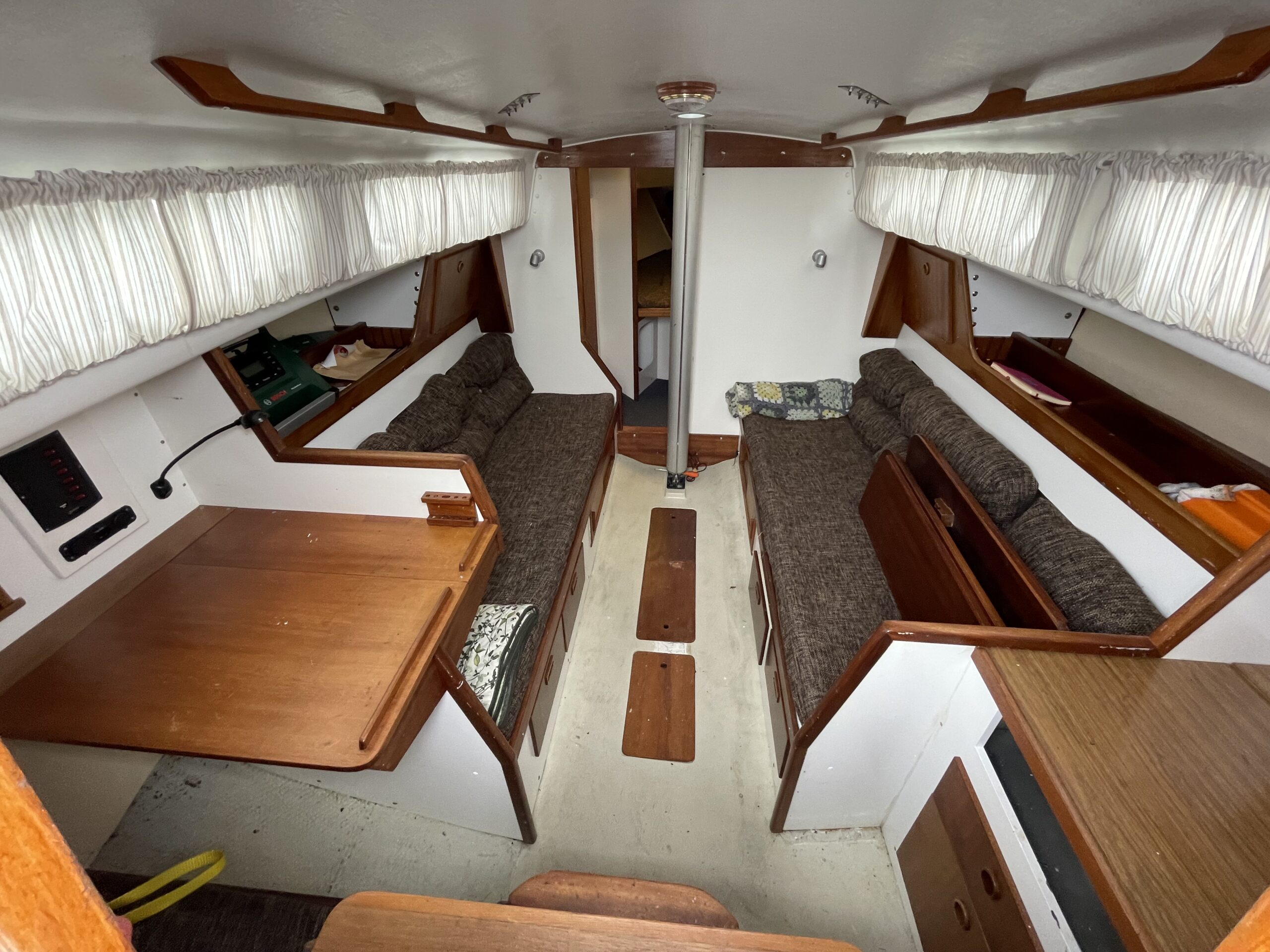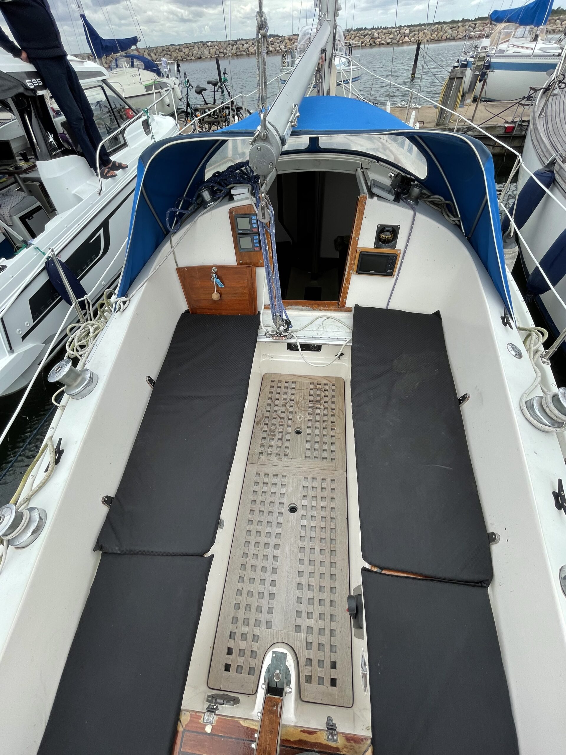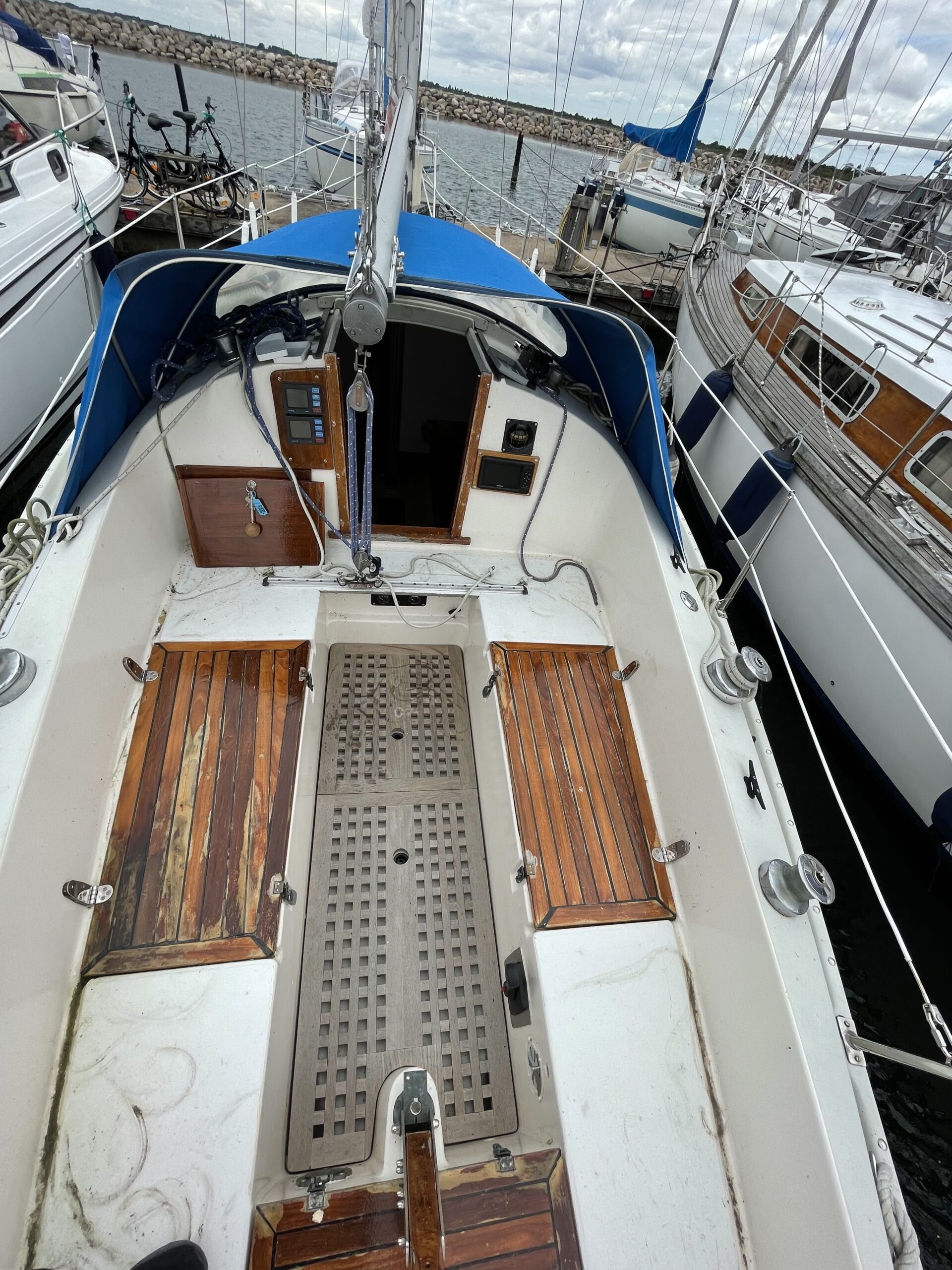 Svensk klassiker – fantastisk sejler og plads til familien. Her får du det hele til en yderst fair pris. Stort rummeligt cockpit med teak og rorpind. Nedgang til hyggelig lys salon med langsgående sofaer og bordløsning. Begge sofaer kan omgøres til gode voksenkøjer. Pantrysektion med vask og køl samt gasblus. Toilet med vaskemodul og holdingtank. Stikkøje under cockpit I BB side I forbindelse fin lille kortbordsløsning. Fremme yderligere dobbeltkøje med skabsløsning. hynder er kun et par år gamle. Løbende passet med kærlighed og nænsom hånd. Et godt bud på familiens første båd til en yderst fair pris. Motoren har i 2020 været ude af både og blive tjekket af Volvo Marine i Køge. (nr 980)