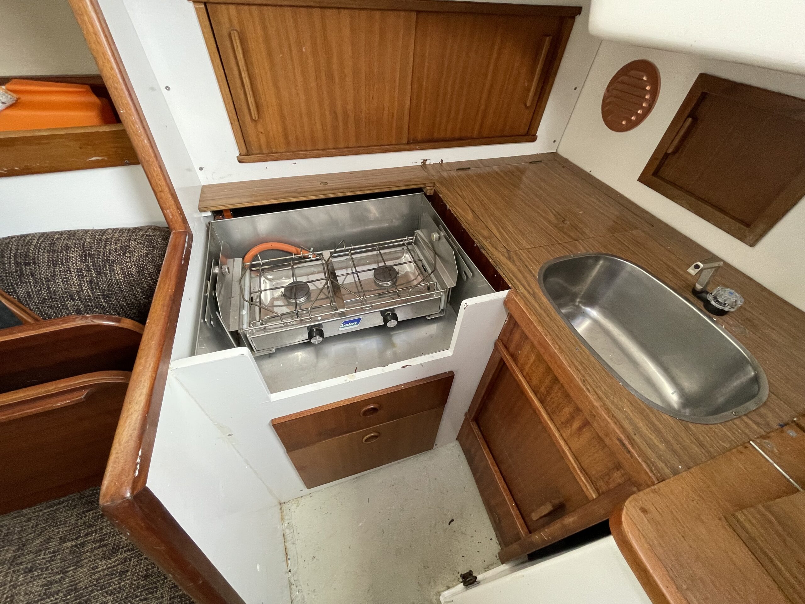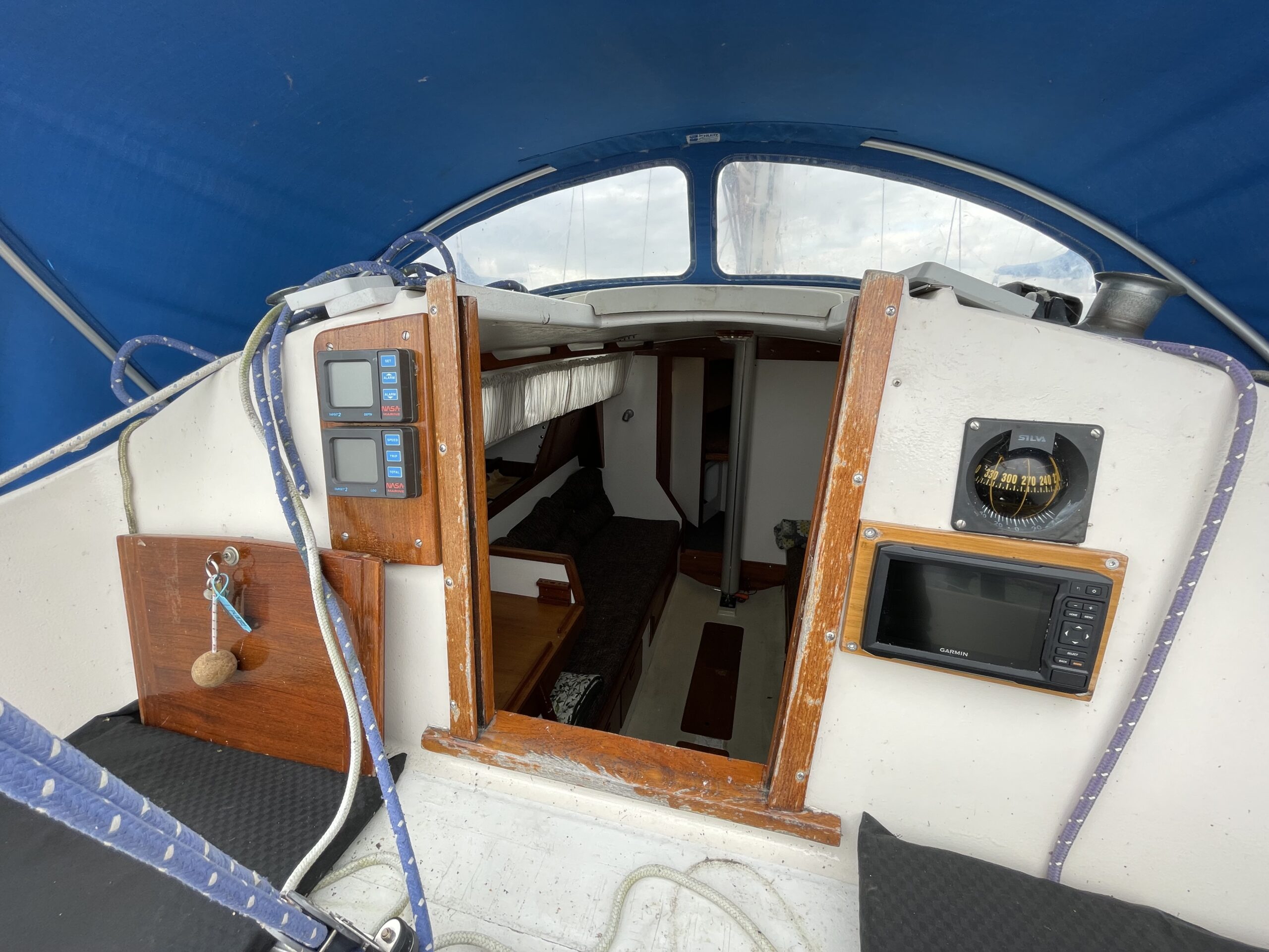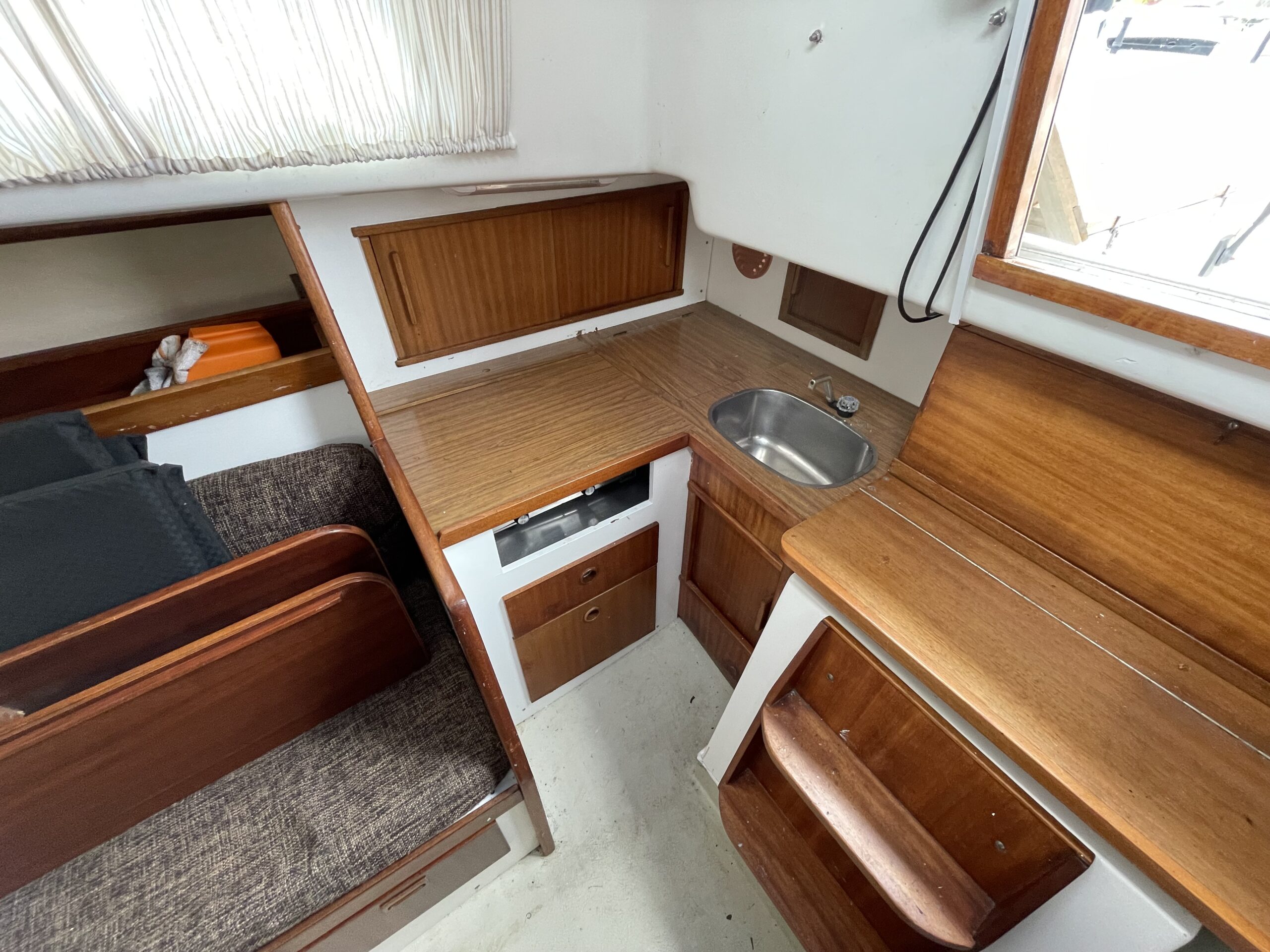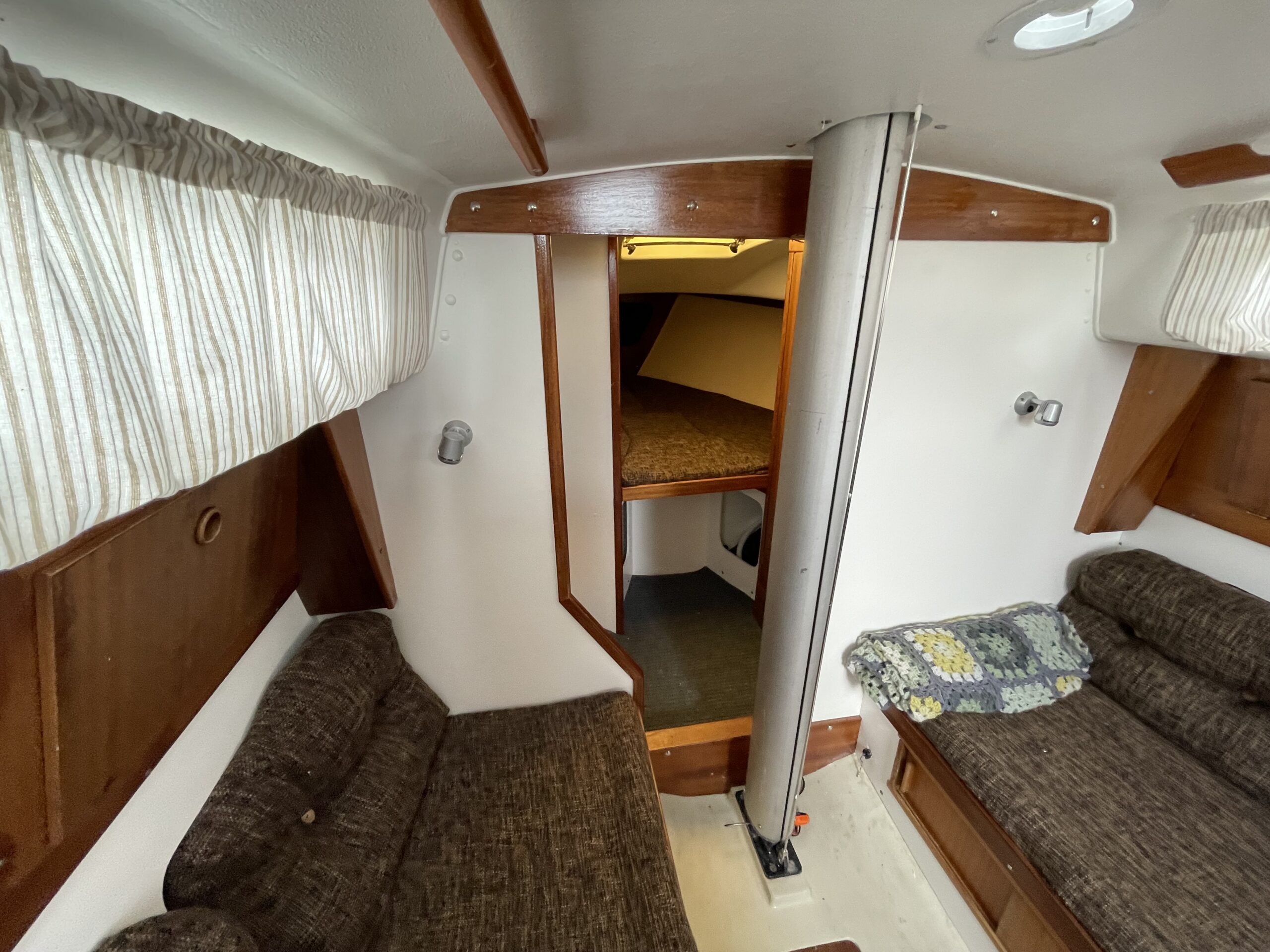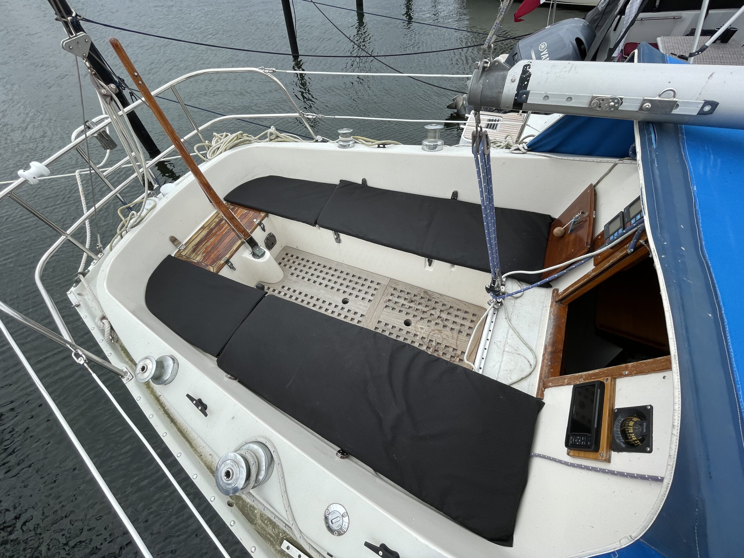 Svensk klassiker – fantastisk sejler og plads til familien. Her får du det hele til en yderst fair pris. Stort rummeligt cockpit med teak og rorpind. Nedgang til hyggelig lys salon med langsgående sofaer og bordløsning. Begge sofaer kan omgøres til gode voksenkøjer. Pantrysektion med vask og køl samt gasblus. Toilet med vaskemodul og holdingtank. Stikkøje under cockpit I BB side I forbindelse fin lille kortbordsløsning. Fremme yderligere dobbeltkøje med skabsløsning. hynder er kun et par år gamle. Løbende passet med kærlighed og nænsom hånd. Et godt bud på familiens første båd til en yderst fair pris. Motoren har i 2020 været ude af både og blive tjekket af Volvo Marine i Køge. (nr 980)
