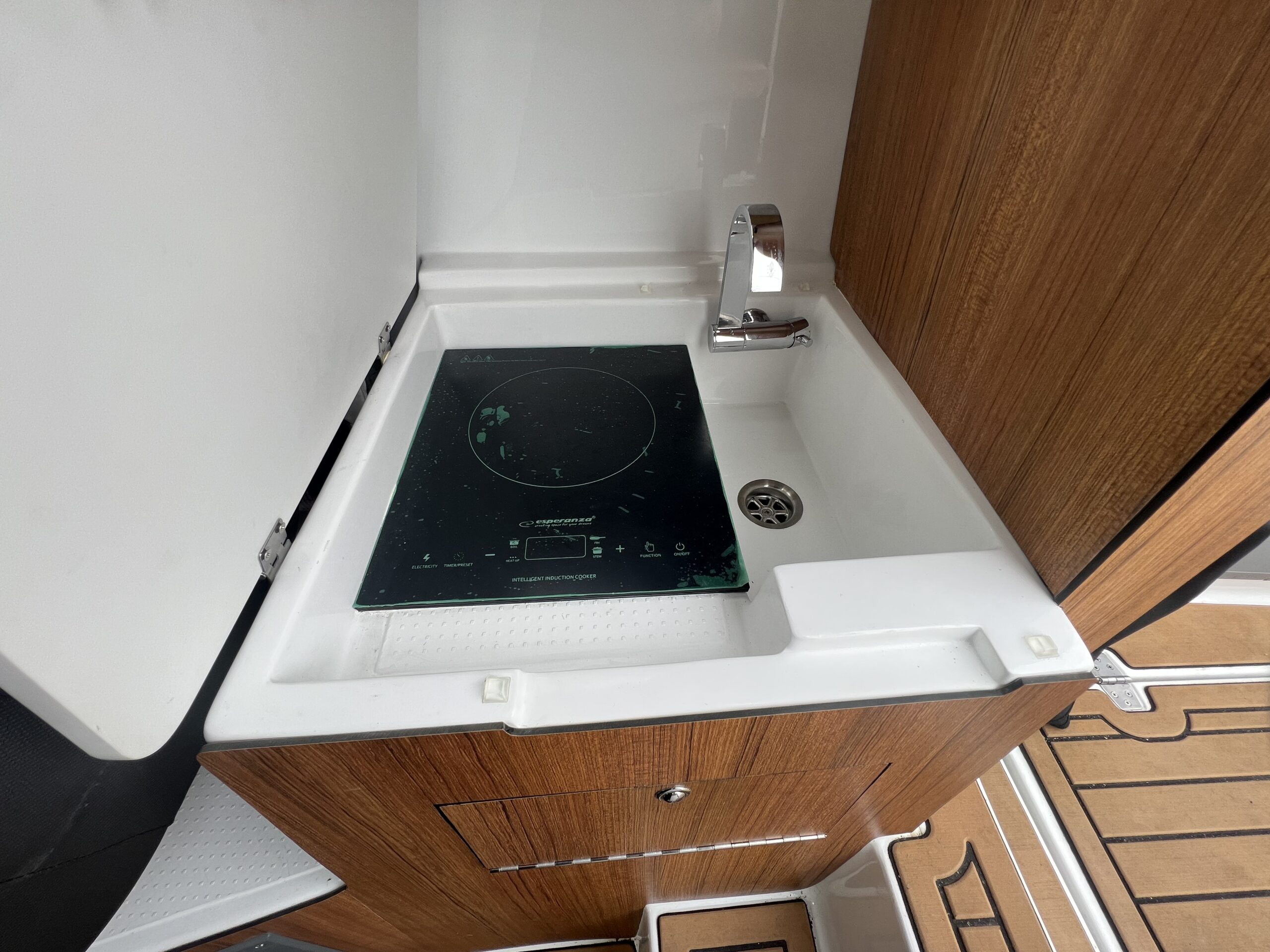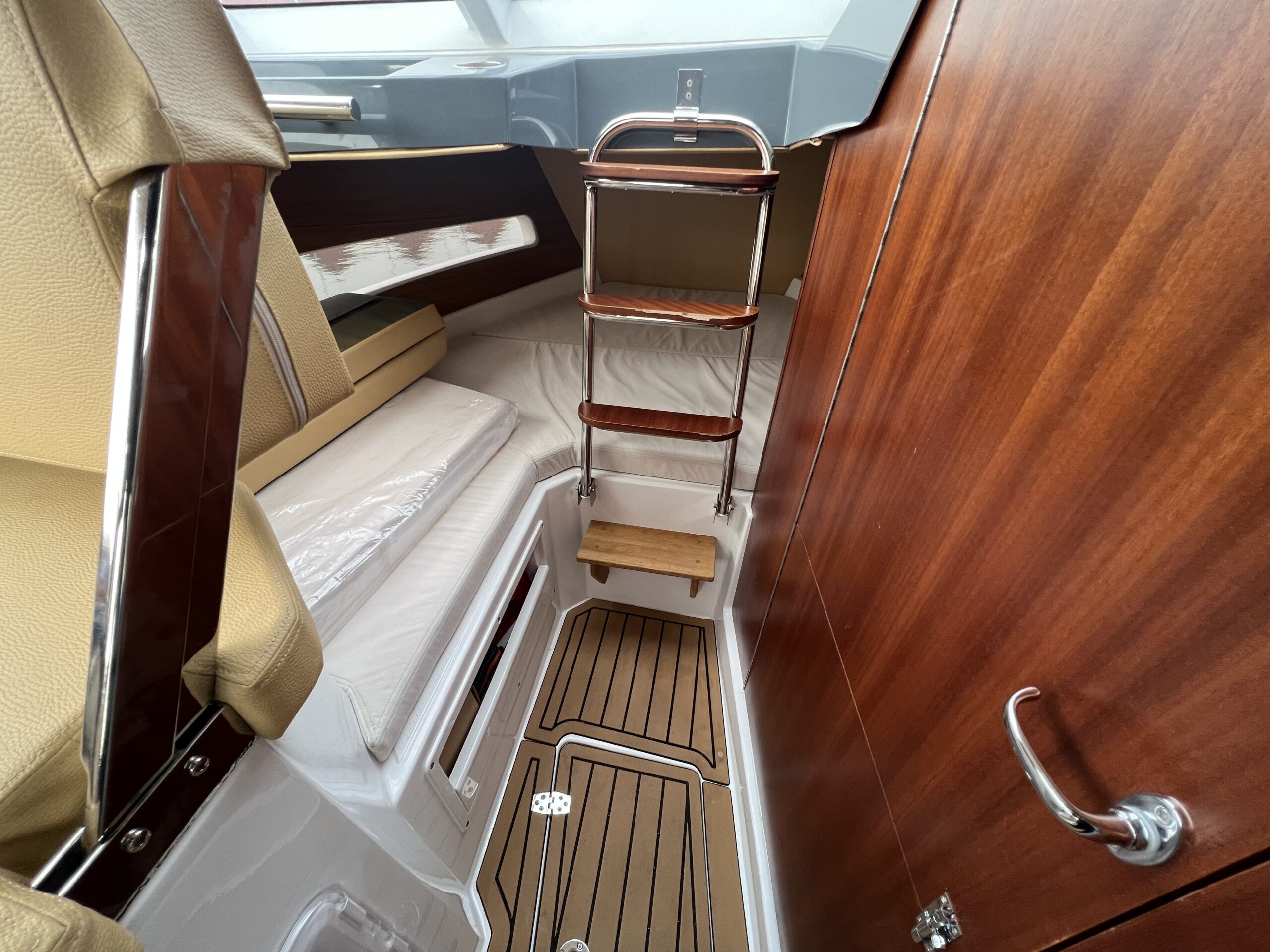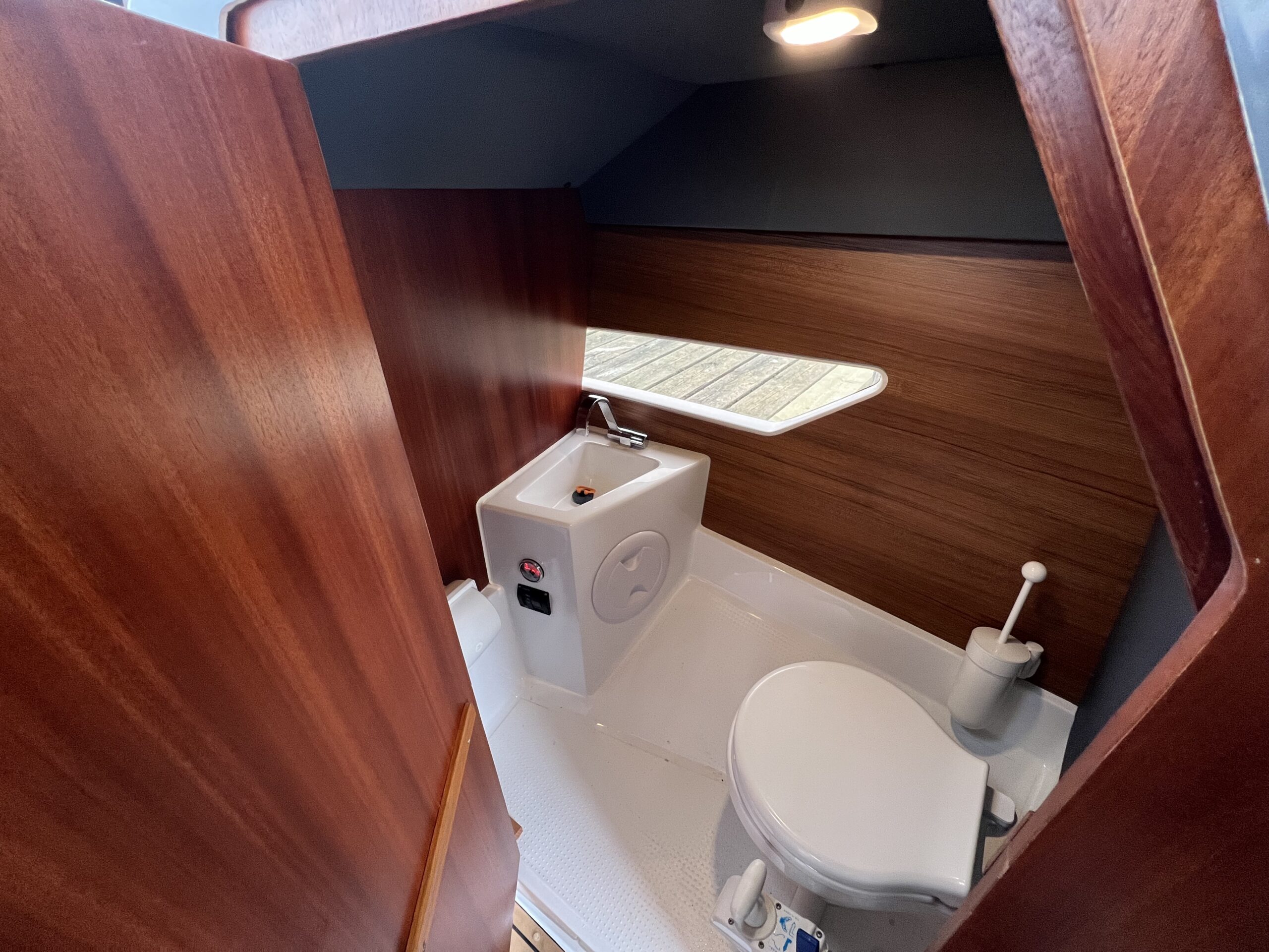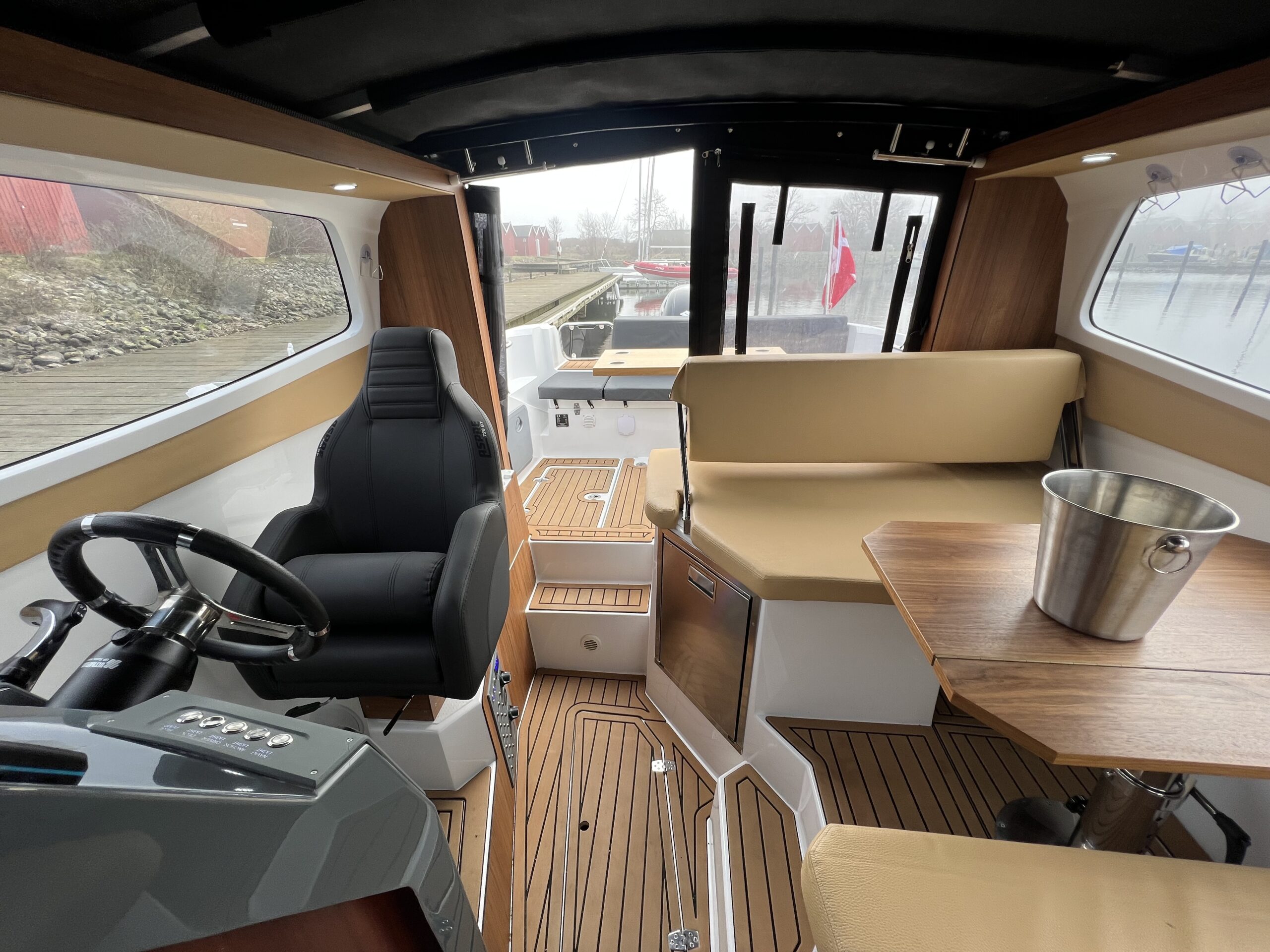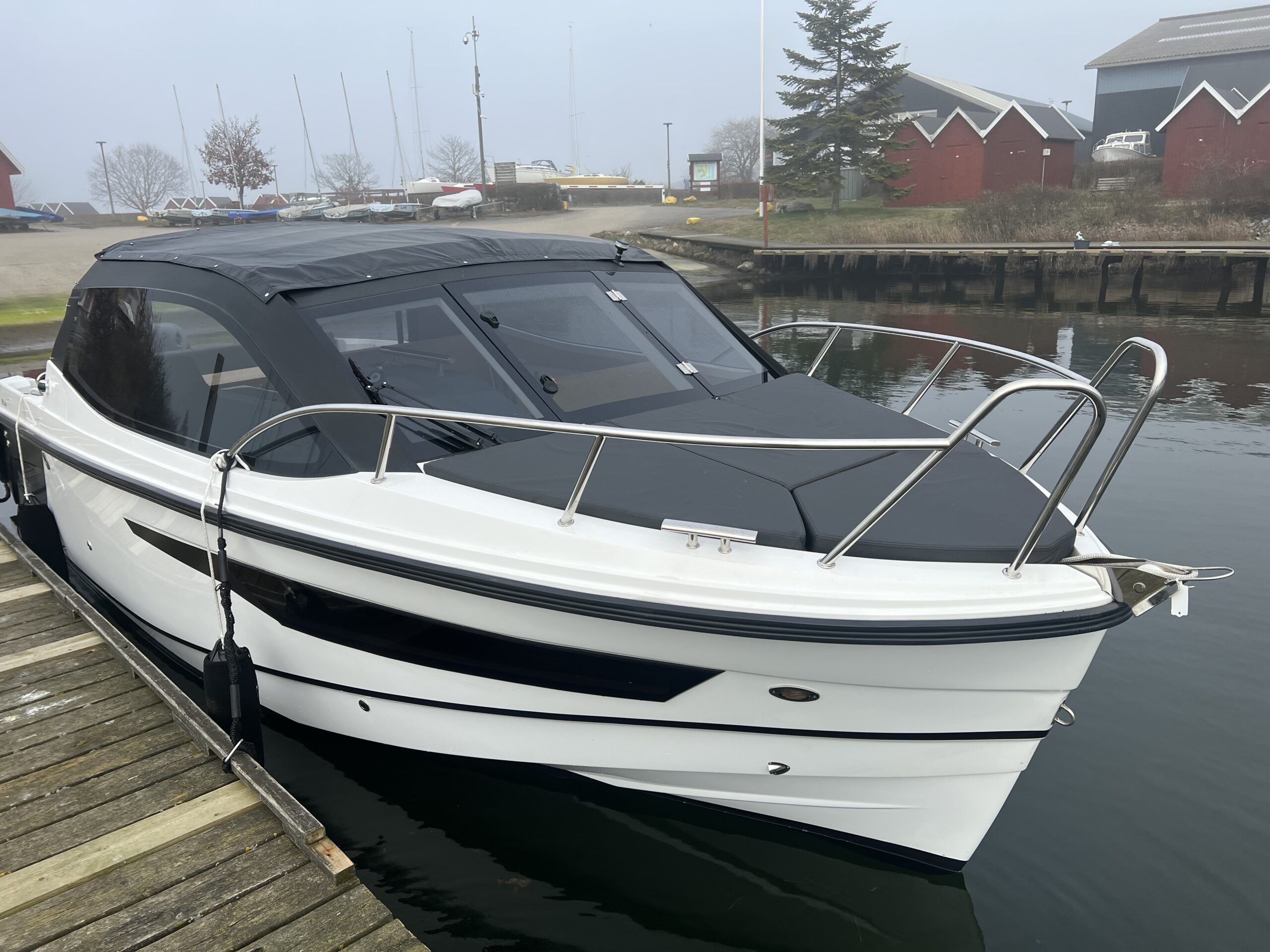Skønt Agterdæk med stor sofaløsning med bord. Cockpittet er vel indrettet med dobbelt sidde pladser og bord der kan omgøres til fin og behagelig køje, bag førerpladsen er der Vask og kogeplade samt køleskab i modsat side, Fremme den perfekte dobbelt soveplads, man flytter stigen op til fronttækket og får en stor soveplads for denne bådstørrelse – fuld sovelængde. Maximal Lysindfald fra Vinduerne og Skydetaget, Separat toilet rum, Alt er gennemtænkt og praktiske detaljer kombineret med flot og moderne design. Bemærk den 2 opdelte toilet dør så man kan komme på toilettet om natten uden og skal lave det hele om. Båden er udstyret med 200 HK Suzuki, som giver båden god fart, der er stadig Garanti på motor og båd, Hele båden fremtræder flot og kan sammenlignes med en ny. Købt for ny i forår 2023 hos en svensk forhandler og der