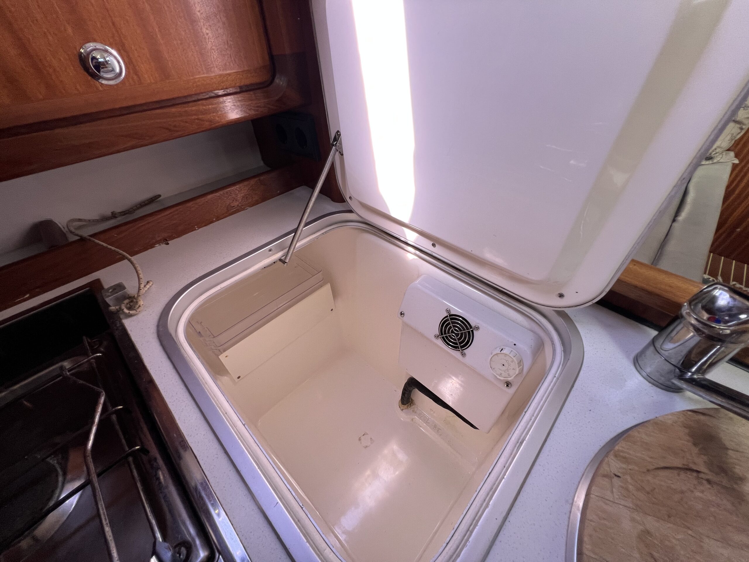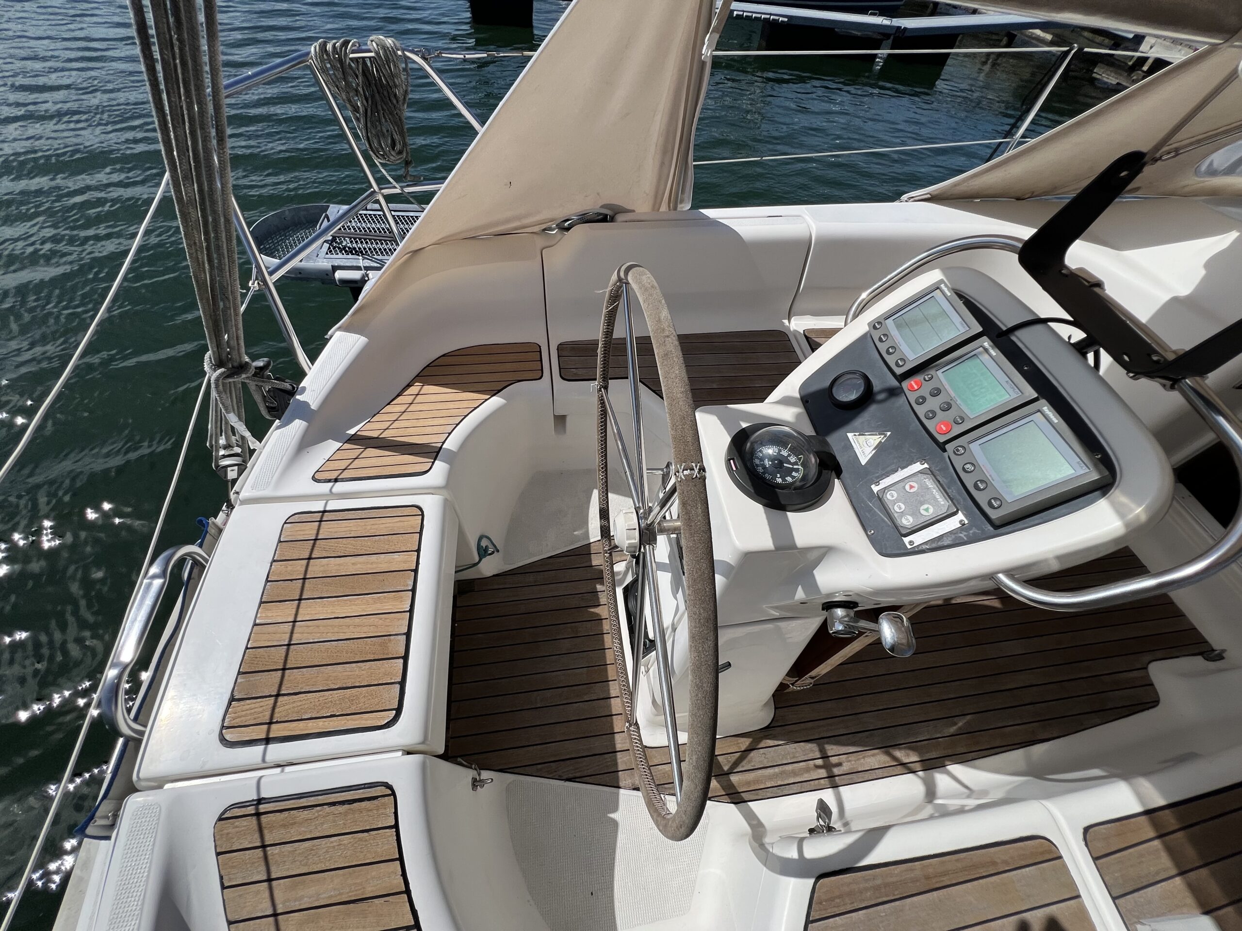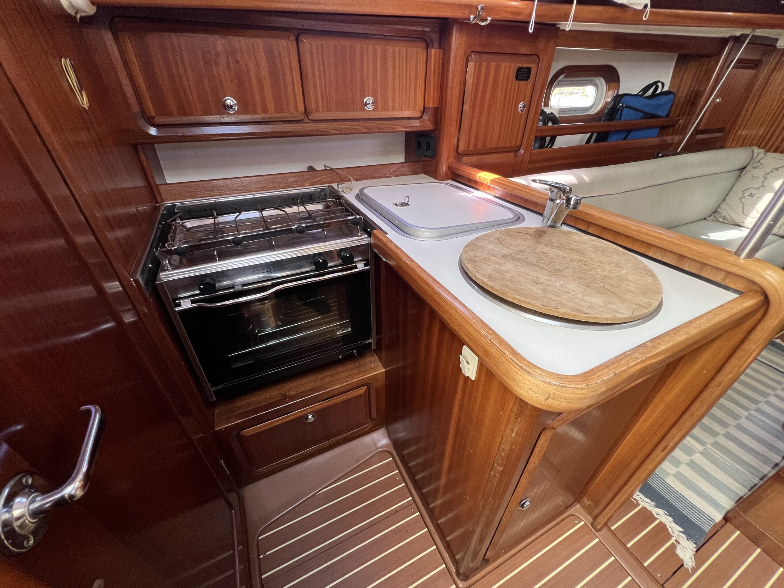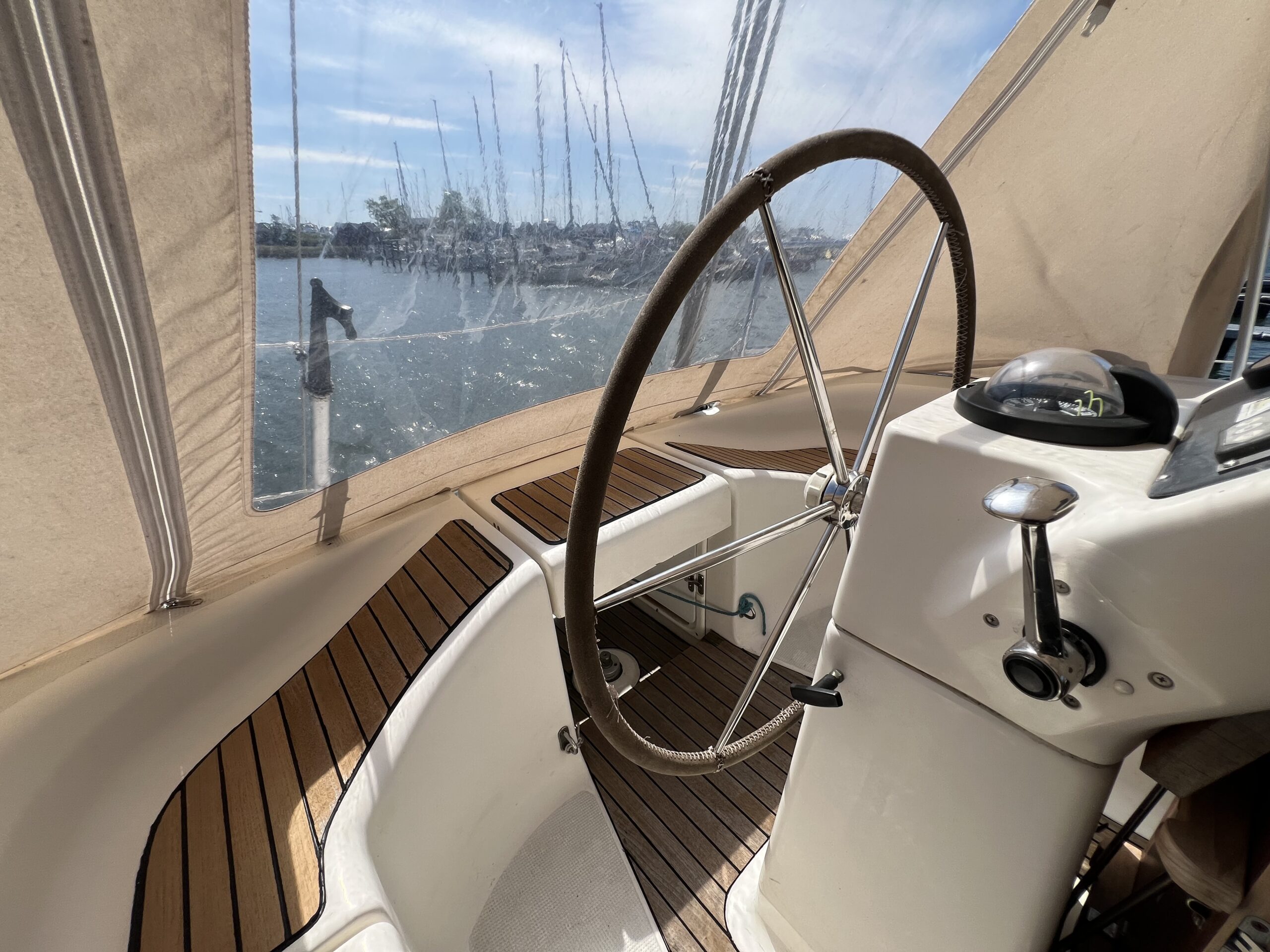 Flot og velholdt 2 kahytsversion med rullestorsejl og masser af lækkert udstyr. Stort cockpit med teakdørk og ratstyring med instrumentkonsol. Nedgang til flot og hyggelig salon med pantrysektion. En agterkahyt med dobbelt-køje og skabsplads. Midtskibs sofaarrangement med to langsgående sofaer som kan omgøres til to voksenkøjer og fint bord med klapper. Fremme fokahyt med owners dobbelt-køje og også her skabsløsning. Toiletrum med vaskmodul og brusemulighed med varmt og koldt vand. En virkelig velfungerende, velindrettet og velpasset Bavaria lige til at overtage. Bemærk ekstraudstyrslisten hvor vi lige fremhæver rullestorsejl, Fuld cockpit kaleche, Bovpropel, varmt vand, varmeanlæg og teak – hvad kan man ønske sig mere ?