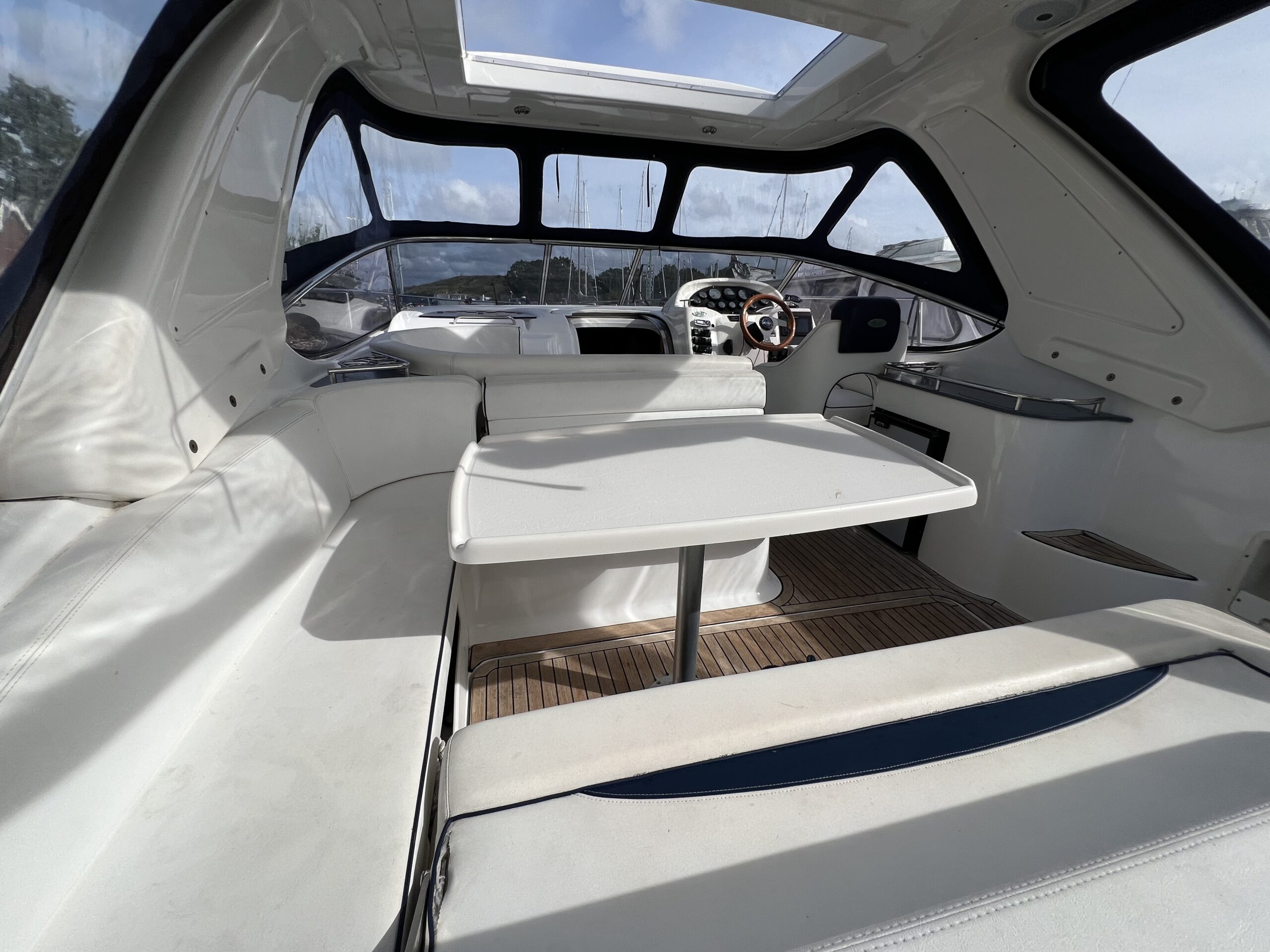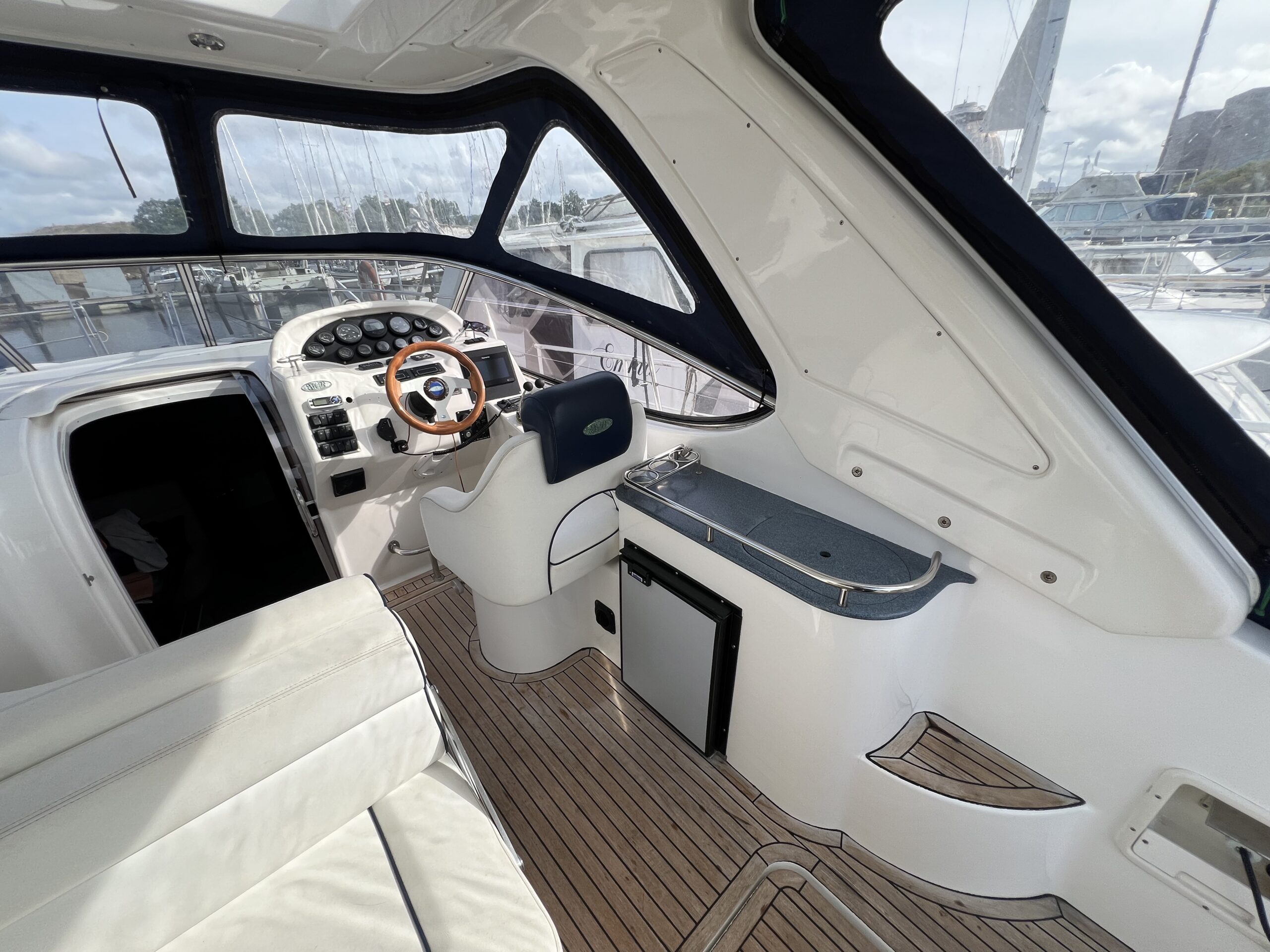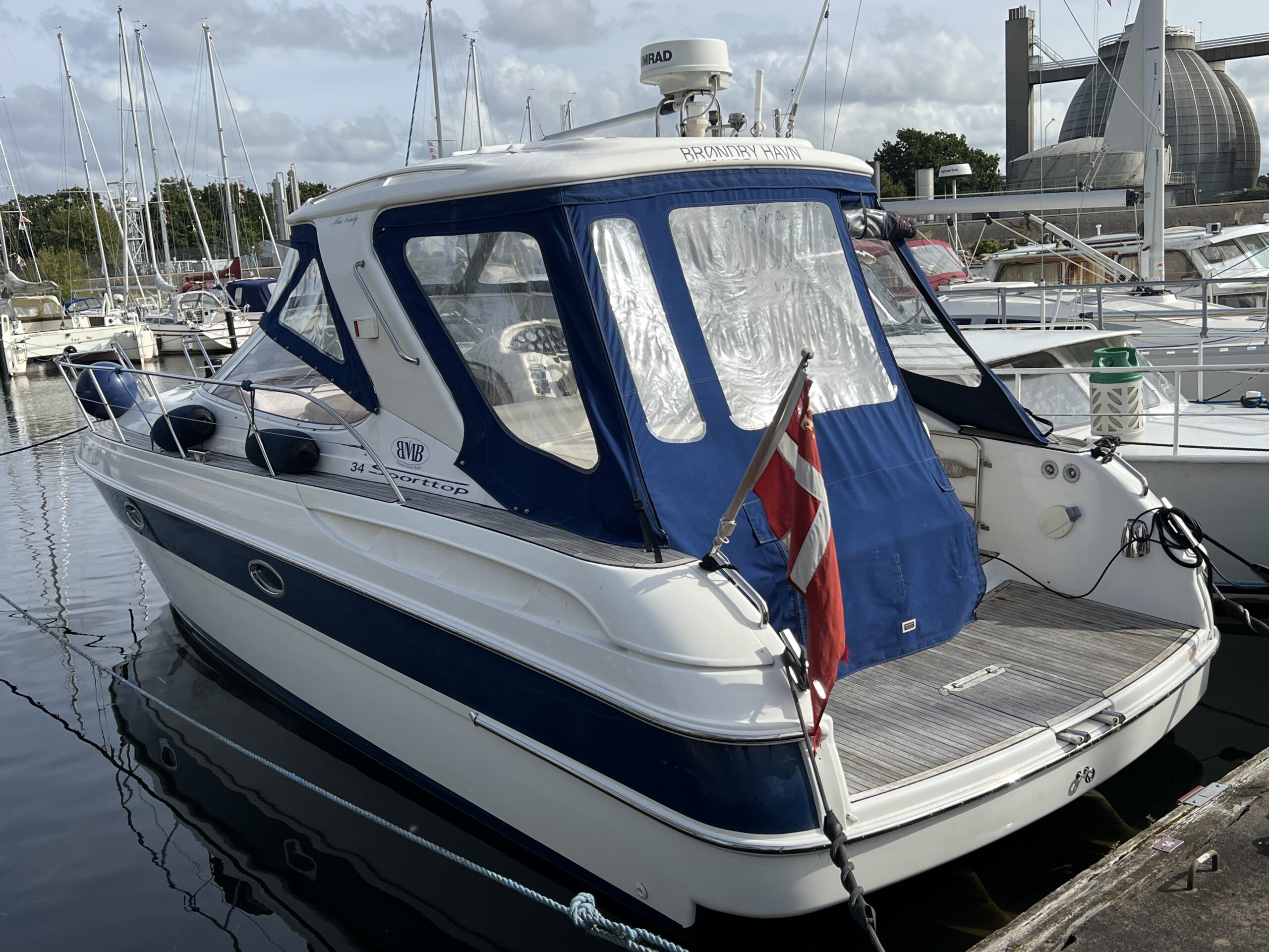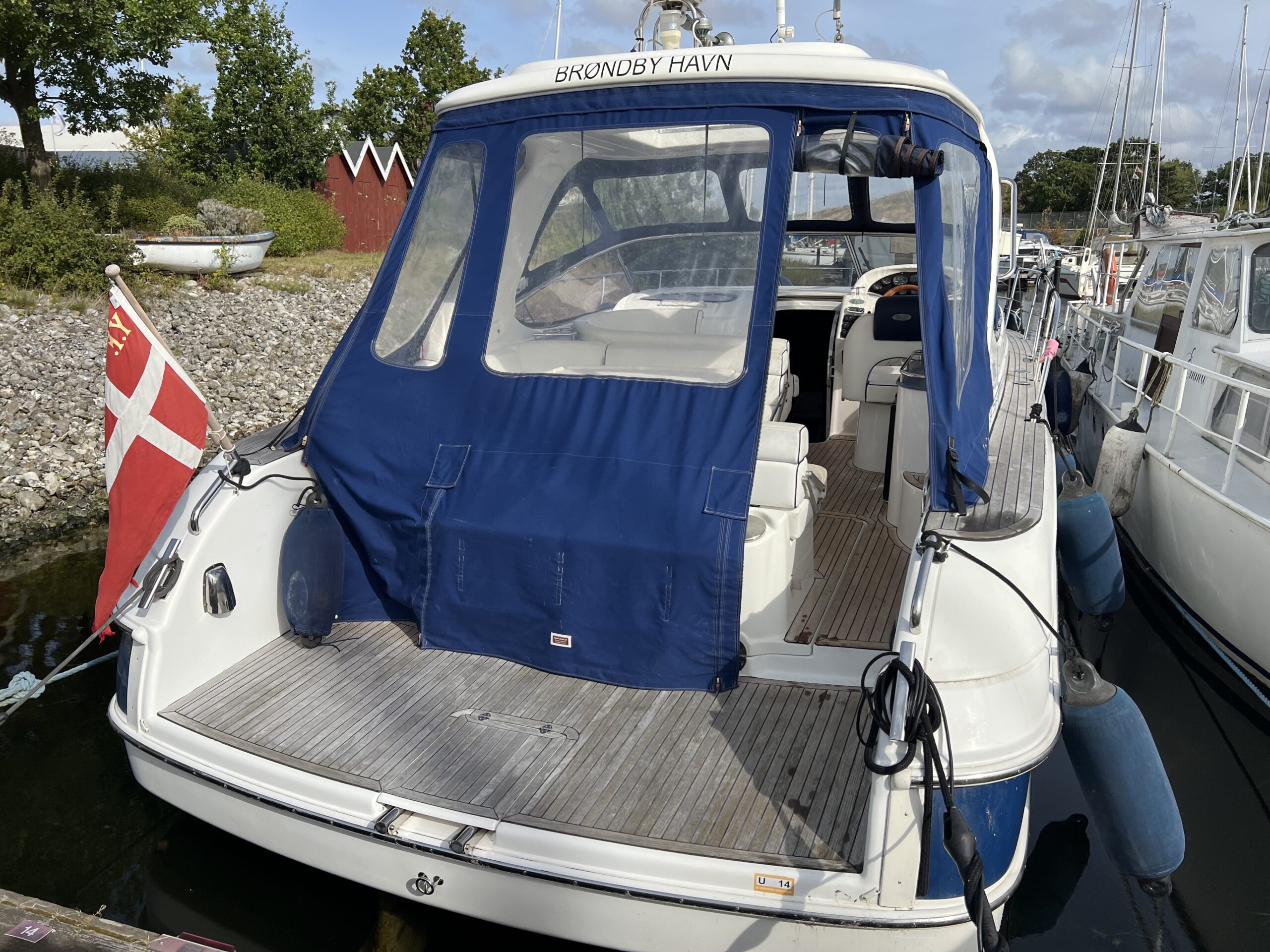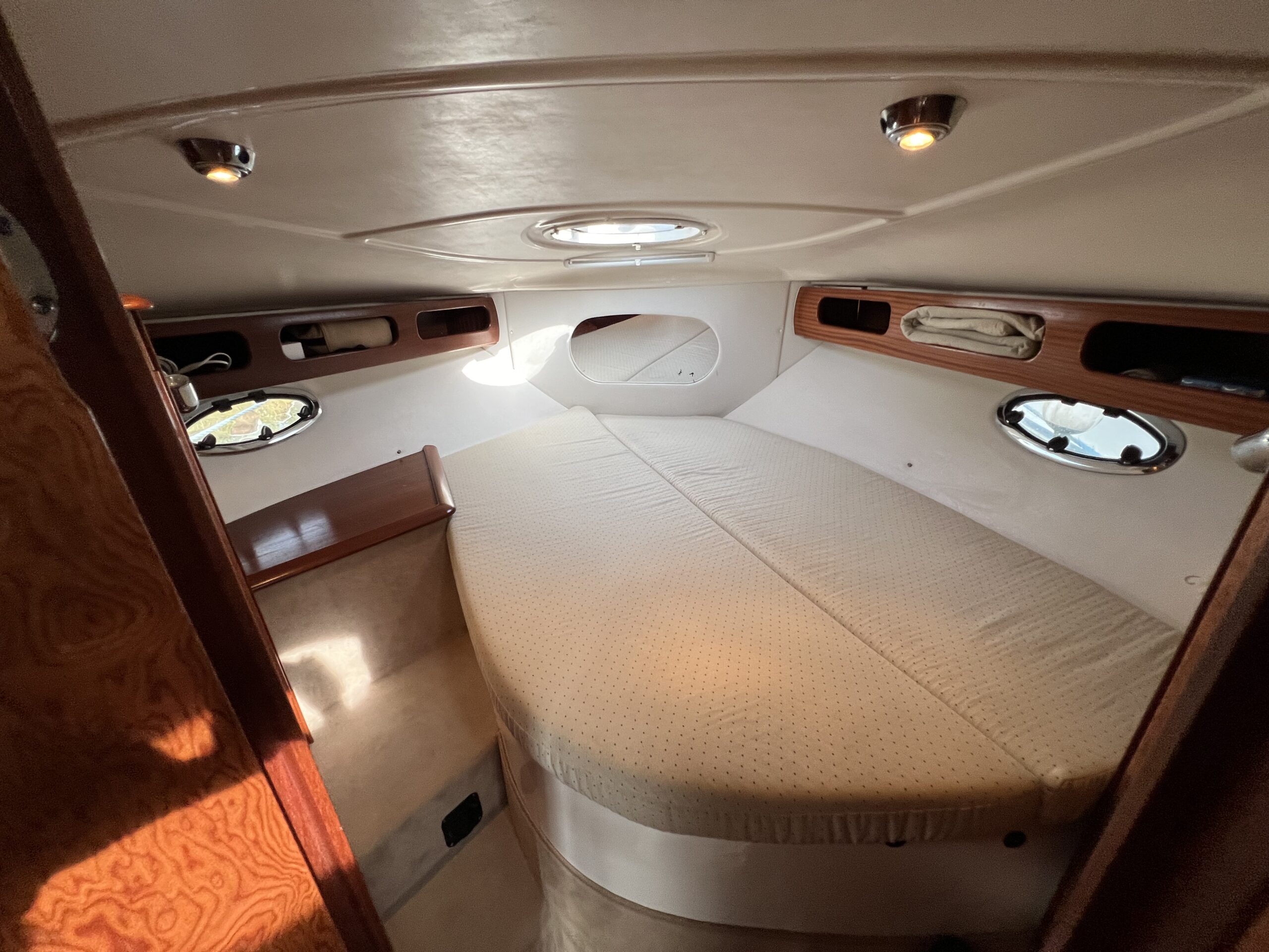 Virkelig en lækkerbisken for den kræsne sejler. 34 fod luxus – Skønt cockpit med stor sofagruppe med bordløsning i kombination med Køleskab og vask. Fremme førerplads og modsat loungesofa. Nedgang til flot apteret salon med stor u-sofa og langsgående pantrysektion. Fremme Lukkelig dobbelt køjeplads og yderligere lukkelig agter kahyt med dobbelt køje. Båden er udstyret med Bov propel og 2 X Volvo Penta KAD300 der årligt er serviceret og passet af professionelle.