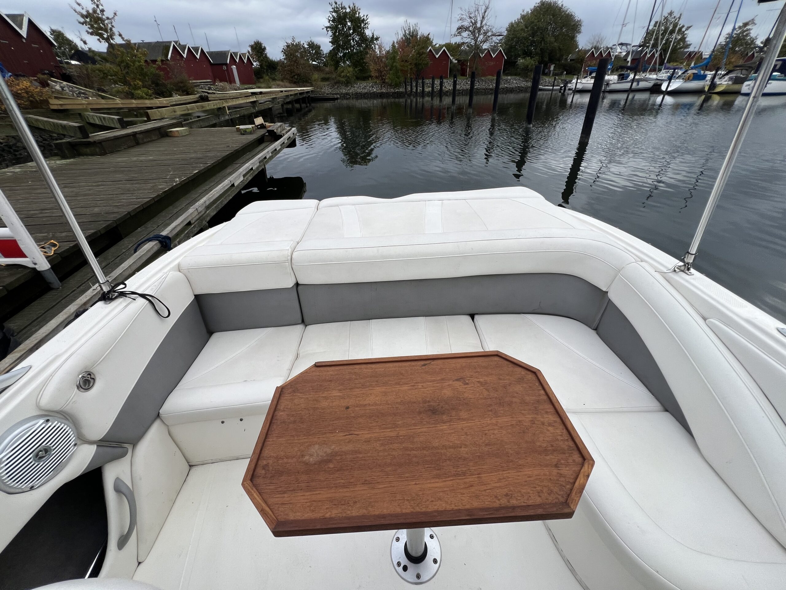 Båden er udstyret med den kraftfulde 4,3L Mercruiser motor, som ligeledes er professionelt serviceret gennem hele sin levetid.