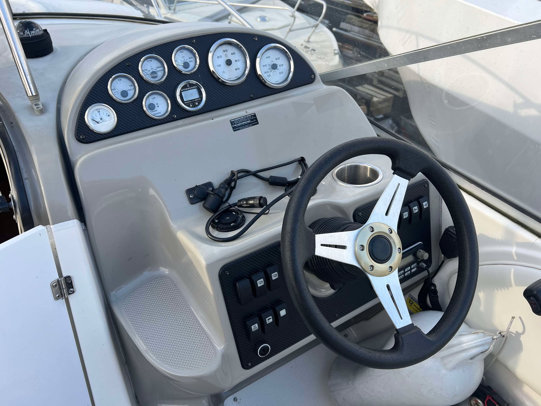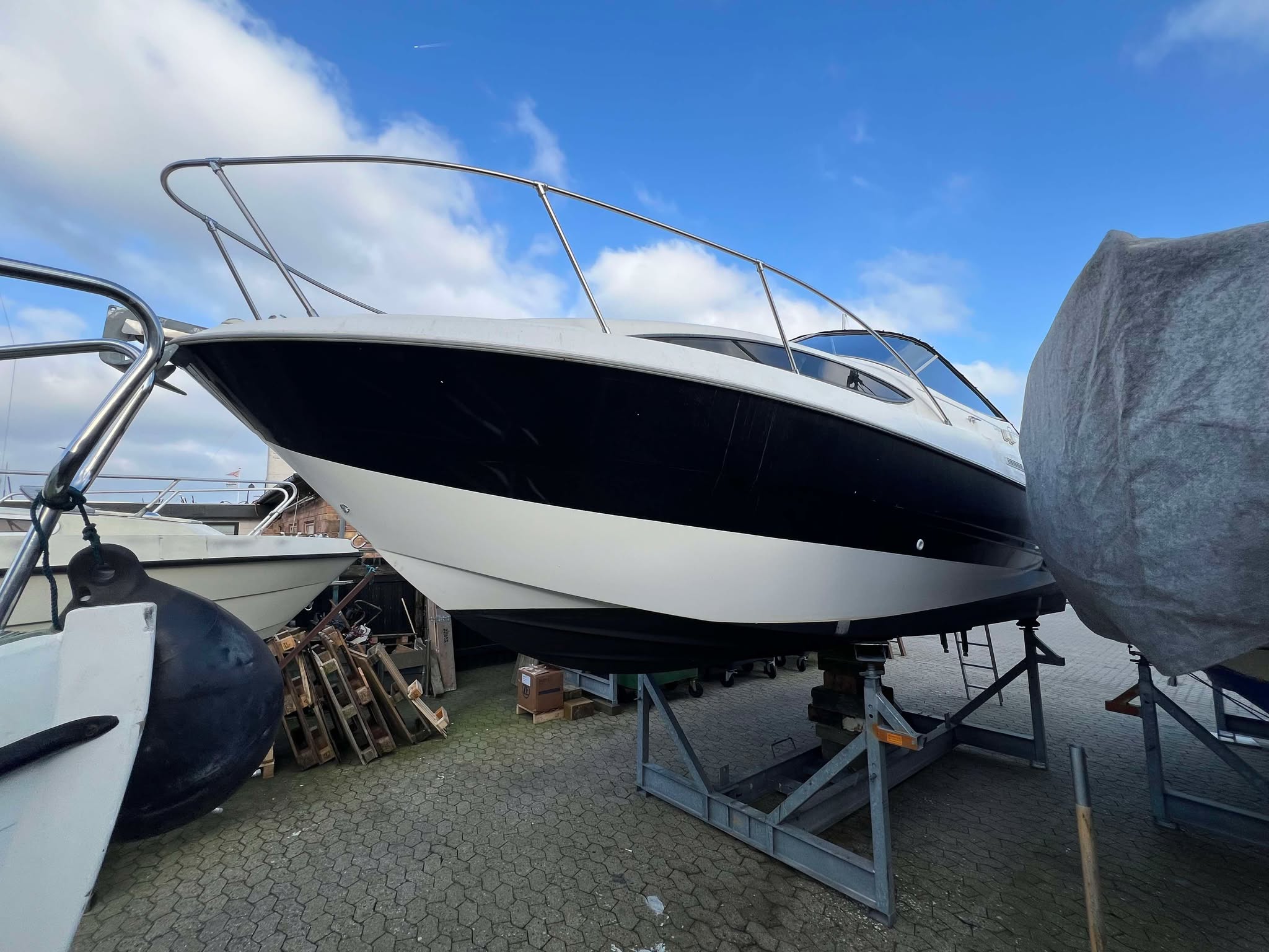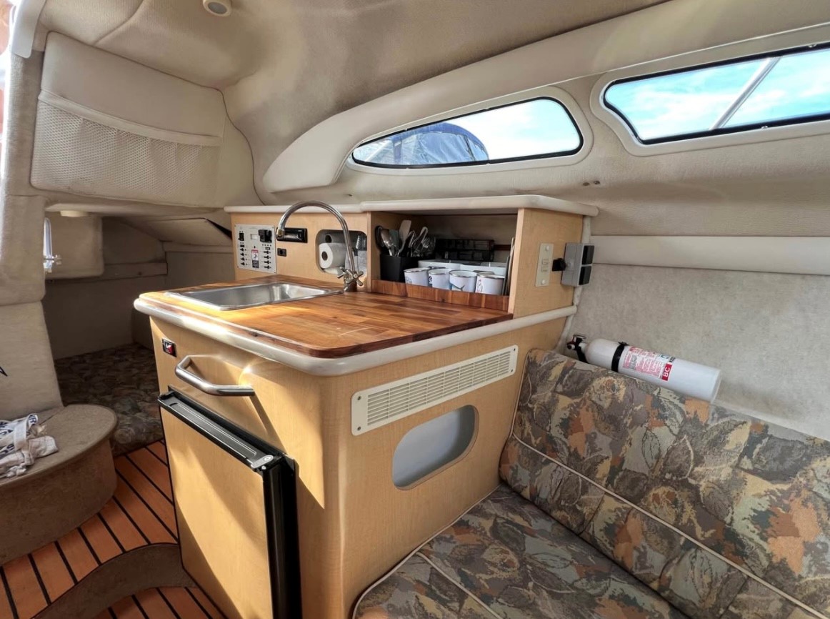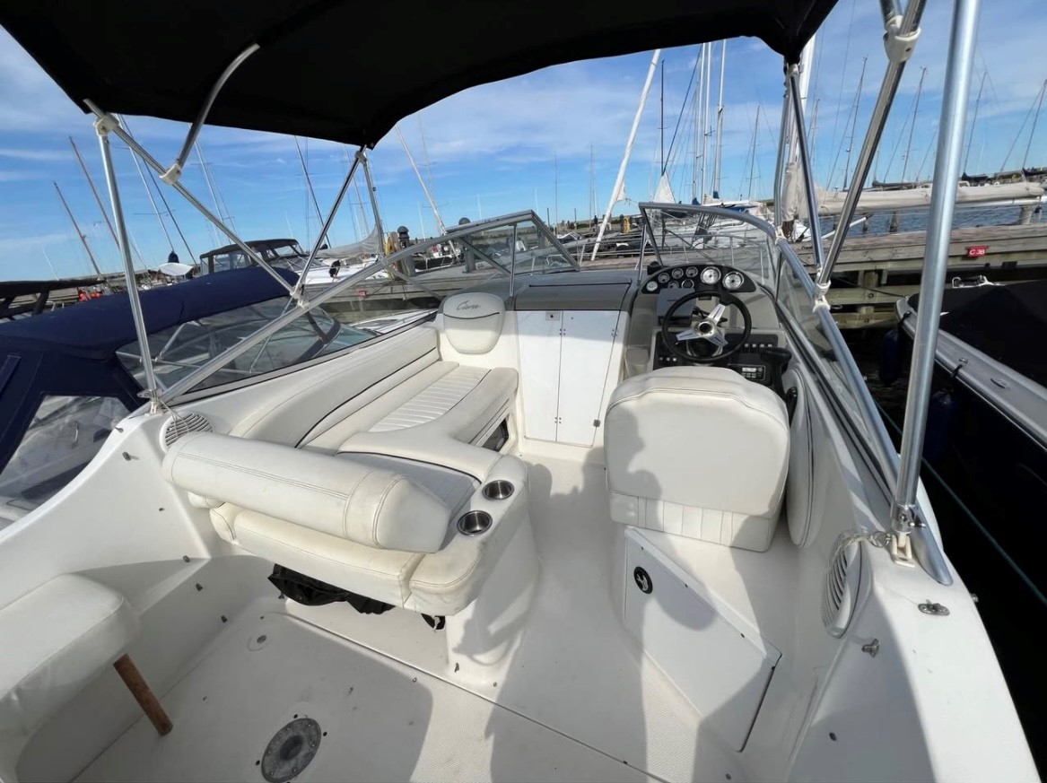 Super fin og populær weekendcruiser til familien som elsker livet i havnen kombineret med komfort og plads. Skønt cockpit med 2 sofagrupper og bord i mellem, Førerstol med godt udsyn og overblik over instrumenter – fint i læ bag det store vindspejl. Nedgang til kahyt med pantrysektion og toiletrum med vaskemodul samt bruser. Sofagruppe med plads til den store familie som kan omgøres til stor dobbeltseng med rigelig plads til 2 voksne. Dobbeltkøje under cockpit giver denne båd hele 4+ rigtig fine sovepladser. Velpasset med 5,0L motor som fik ny motorblok i 2022 og giver kraftoverskud til sjov på vandet, Bemærk opdateret styrekonsol og Sort folie på siderne, som giver båden et mere moderne look.