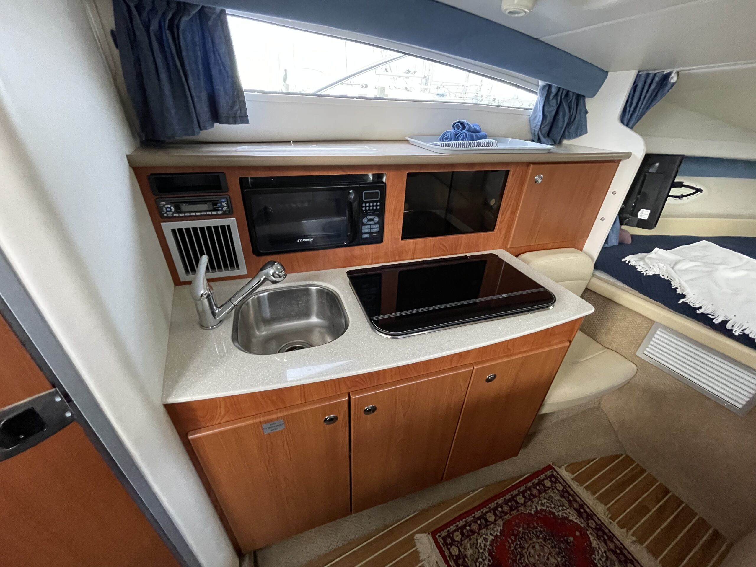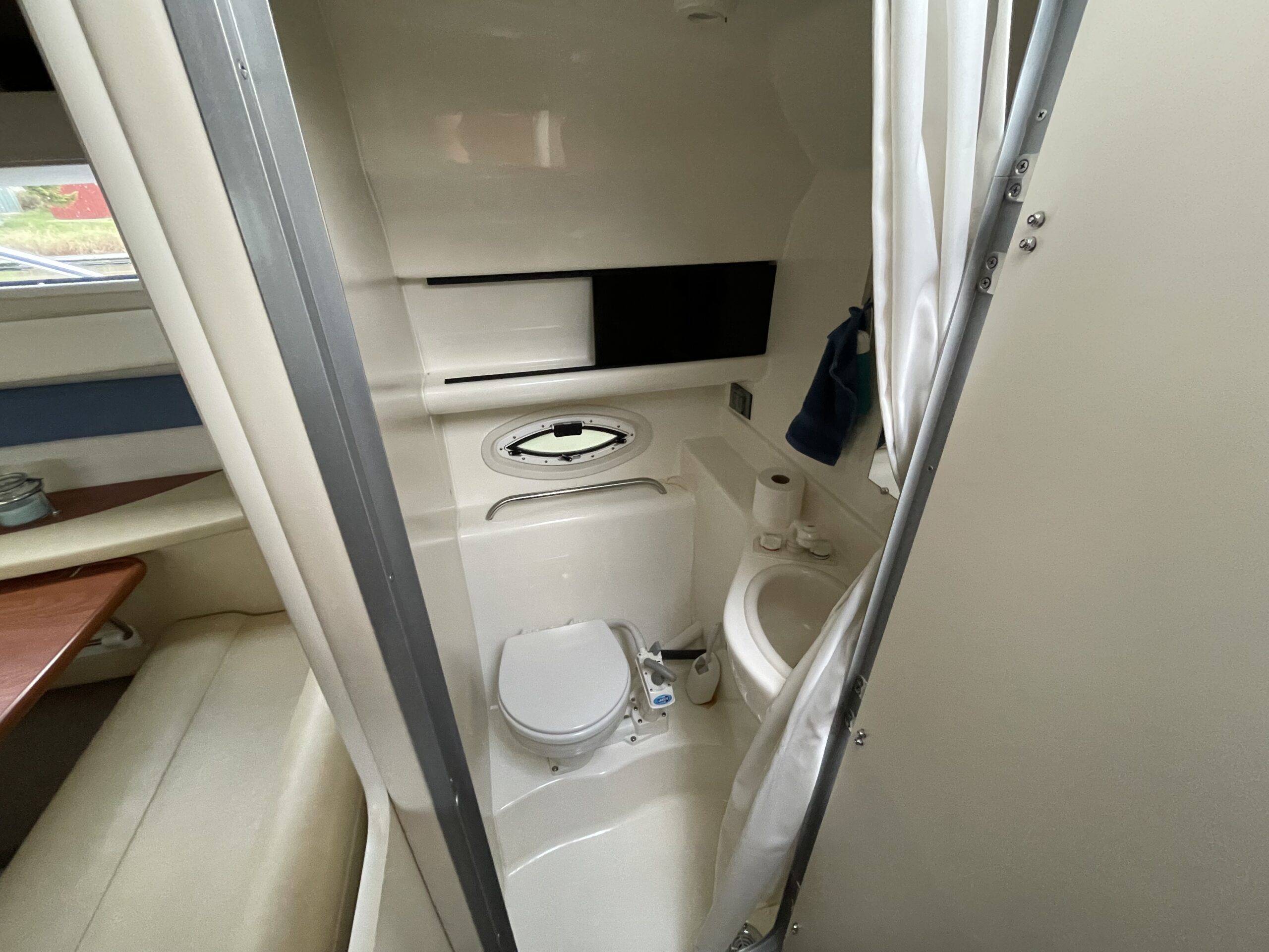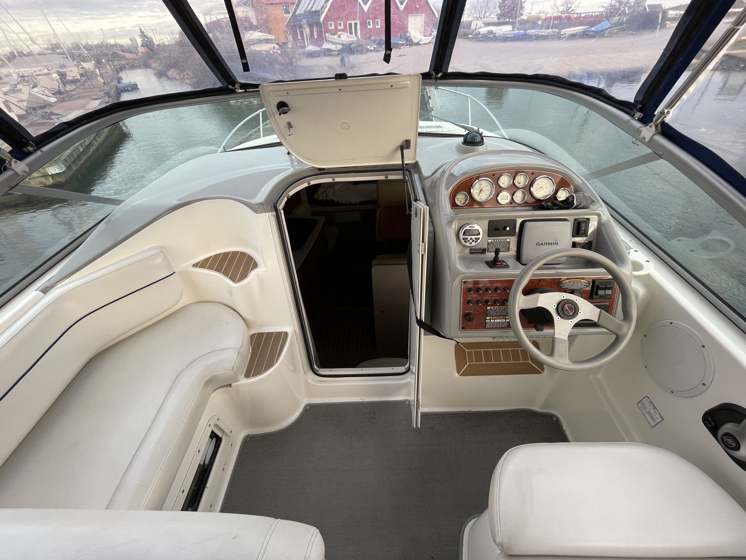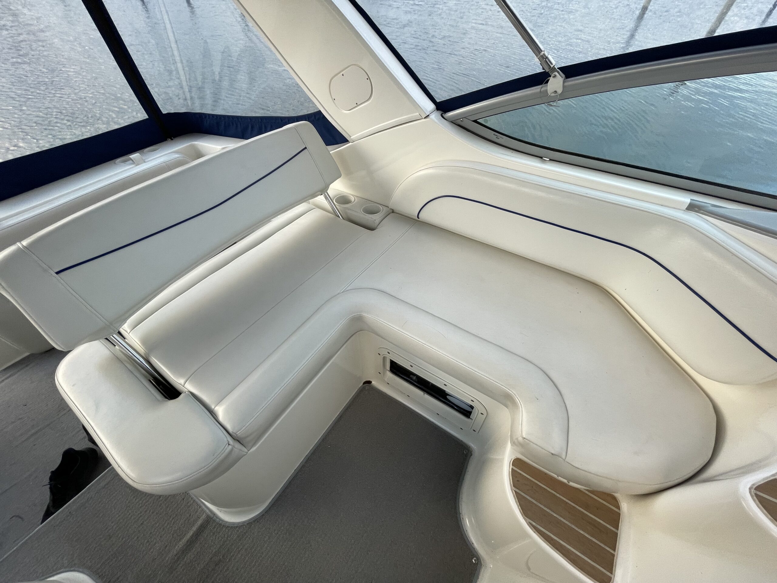 En af markedets mest populære cruisere i 28 fods klassen. Fantastisk velindrettet med rigeligt plads til familie på 4+. Godt cockpit med heldækkende camperkaleche. Stor sofagruppe med bordløsning. Førerplads med godt udsyn over instrumentbord og god læ bag det store vindspejl. Nedgang til hyggelig kahyt med langsgående pantrysektion med vask, dobbelt kogeblus microovn og køleskab. Dinettearrangement som kan omgøres til dobbeltkøje. Toiletrum med vask og brusemulighed. Agterkøje med dør og rigeligt plads til to voksne. Fremme yderligere dobbelt køje. Overalt er der fine gennemtænkte løsninger og båden byder på masser af plads og rum. En virkelig velindrettet båd med den rigtige maskine og det rigtige udstyr. BEMÆRK der er i 2020 ilagt FABRIKSNY Mercruiser 383 MAG MPI PLUS med 350HK i båden.