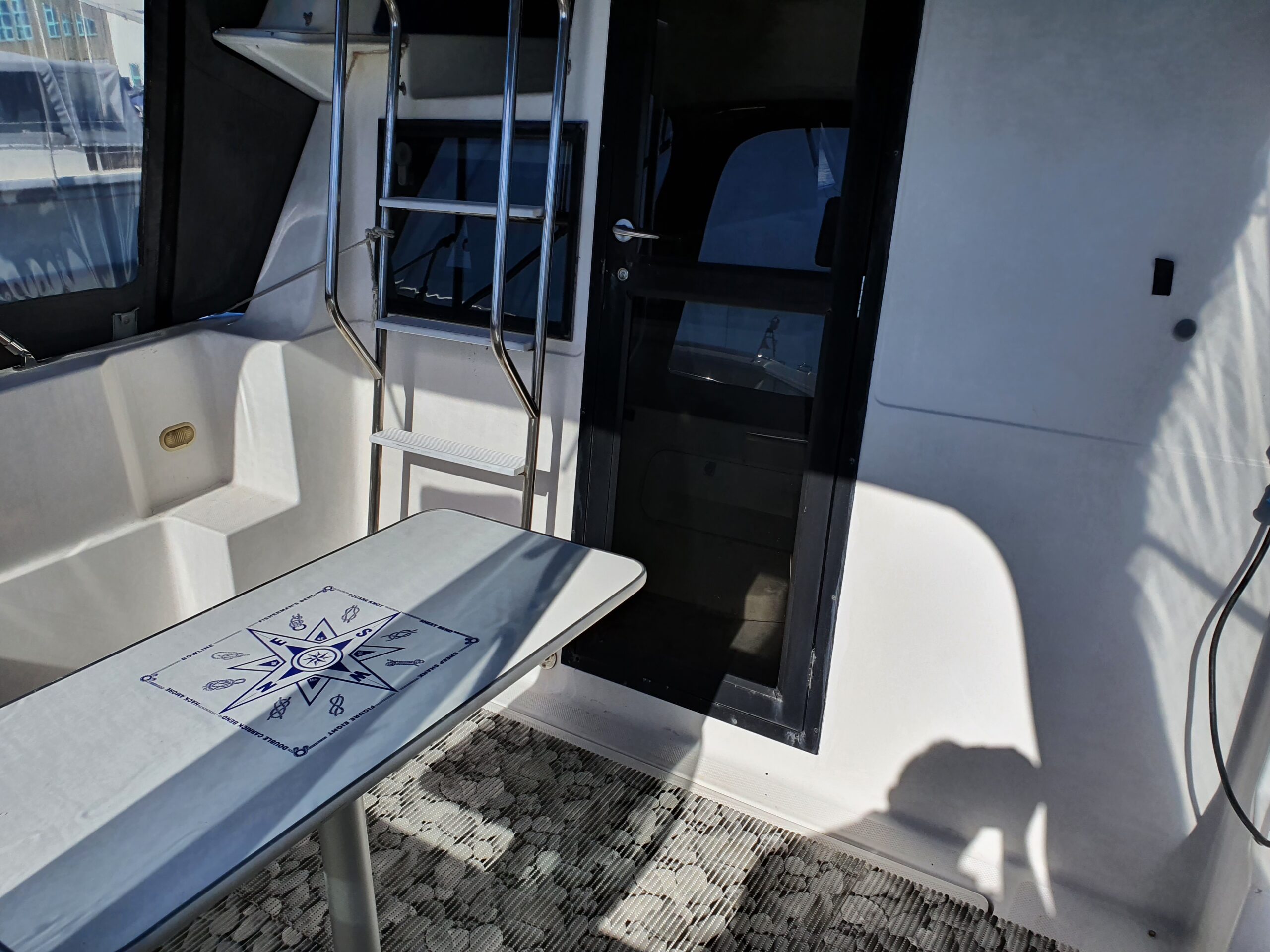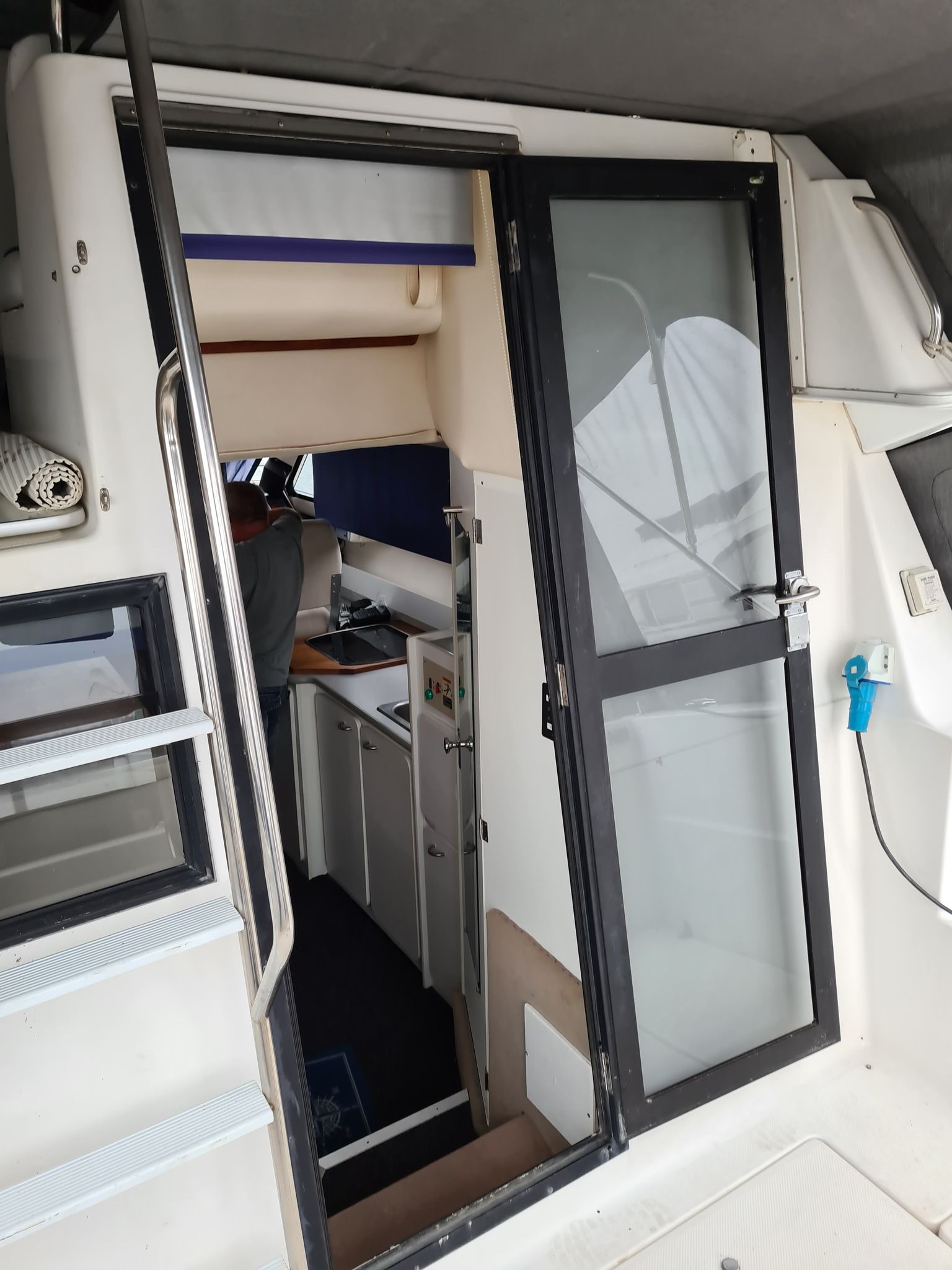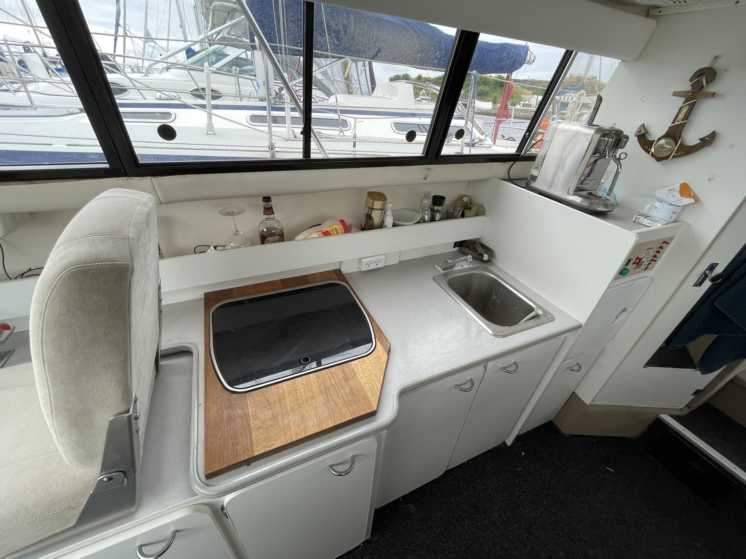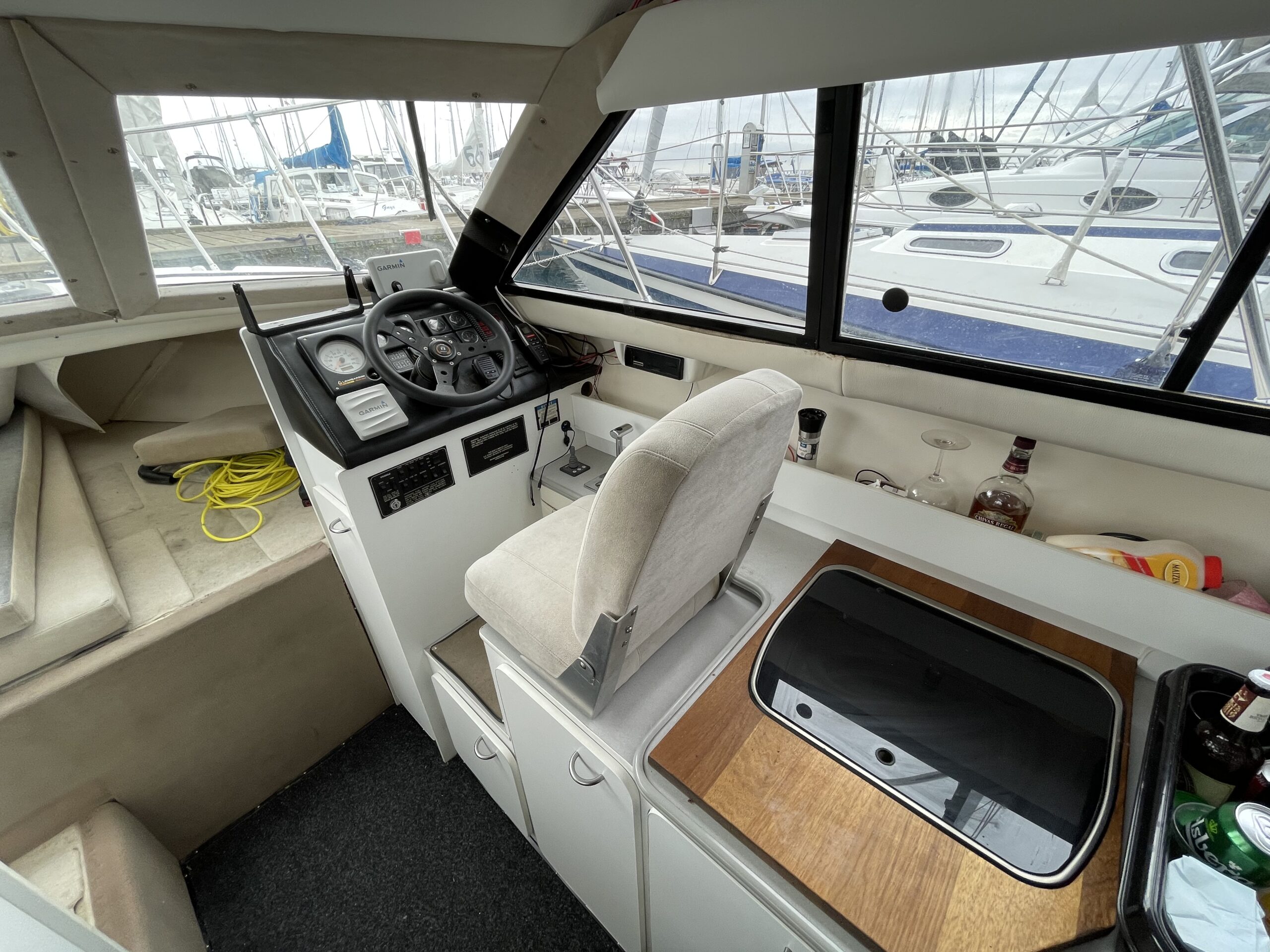Flot amerikansk weekendcruiser med lækre detaljer, anderledes design og indretning end du normalt. Agterdæk med plads til hele familien rundt om bordet. adgang via dør til salon med pantrysektion og sofagruppe. Her kan sofaen omgøres til kæmpe dobbeltkøje med smart løsning. Sovepladser i fronten, Toiletrum med vaskemodul og brusemulighed. Stor ny badeplatform.
