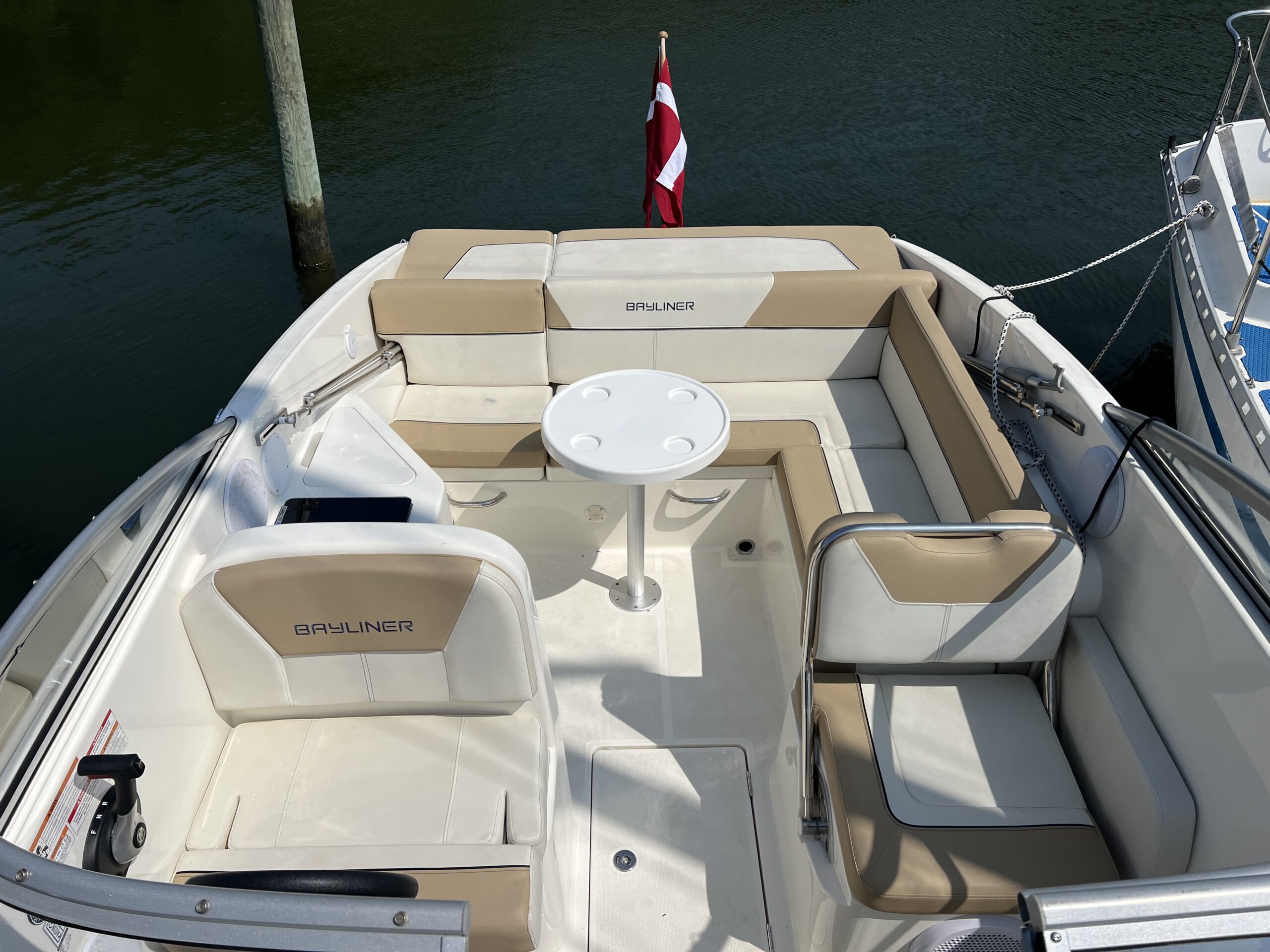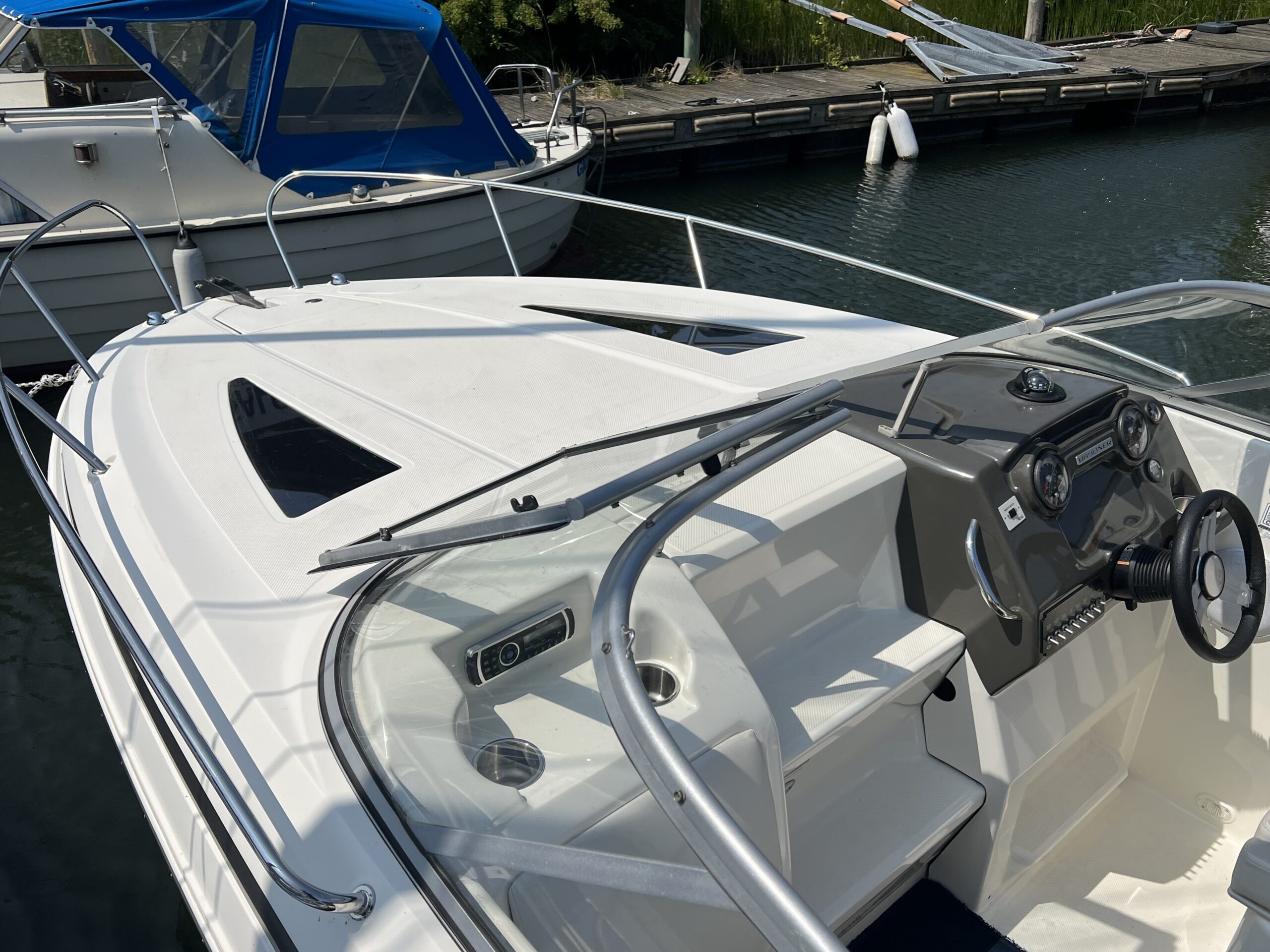 Den komplette kaleche har ståhøjde og skaber et lunt og beskyttet rum, så du kan nyde kølige aftener i havnen eller tage på weekendture med overnatning i båden – uanset vejrforholdene. Båden er fra 2017 og har kun haft en ejer. Kan besigtiges hos Dansk sejl og motor i Brøndby havn