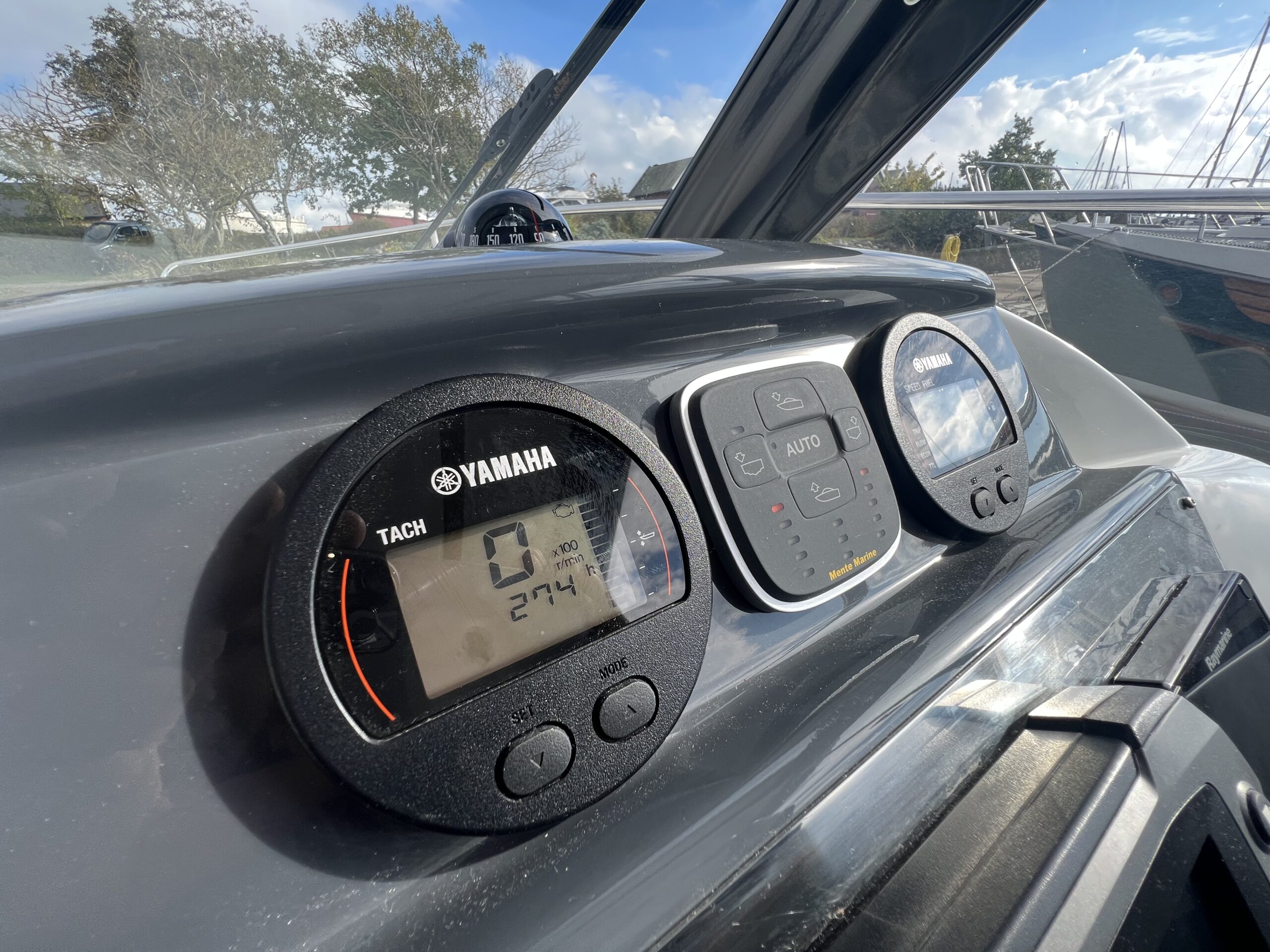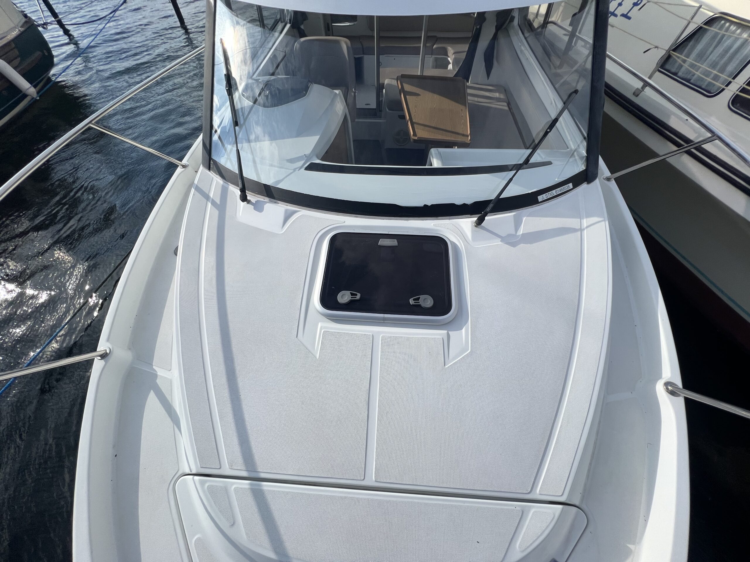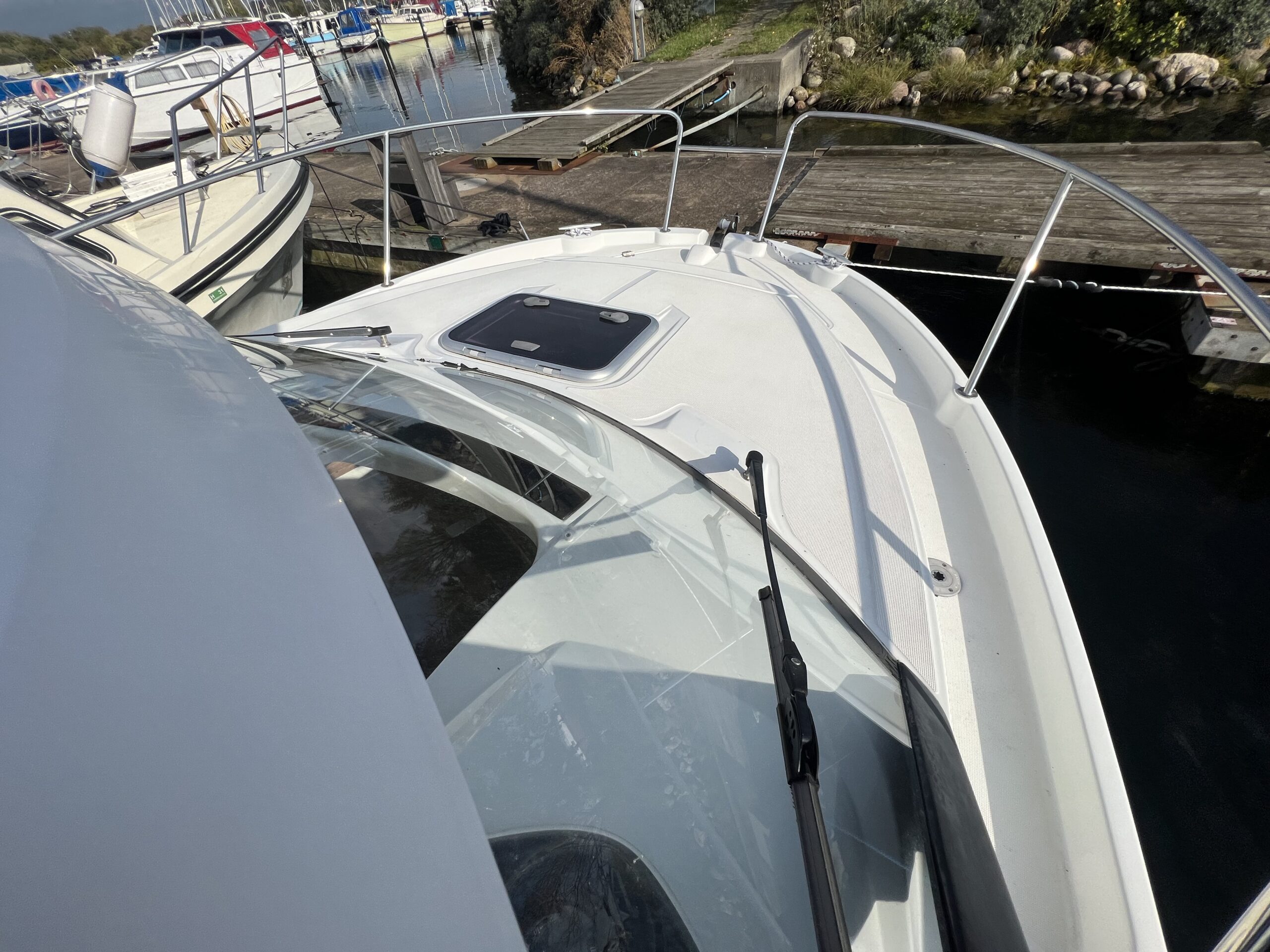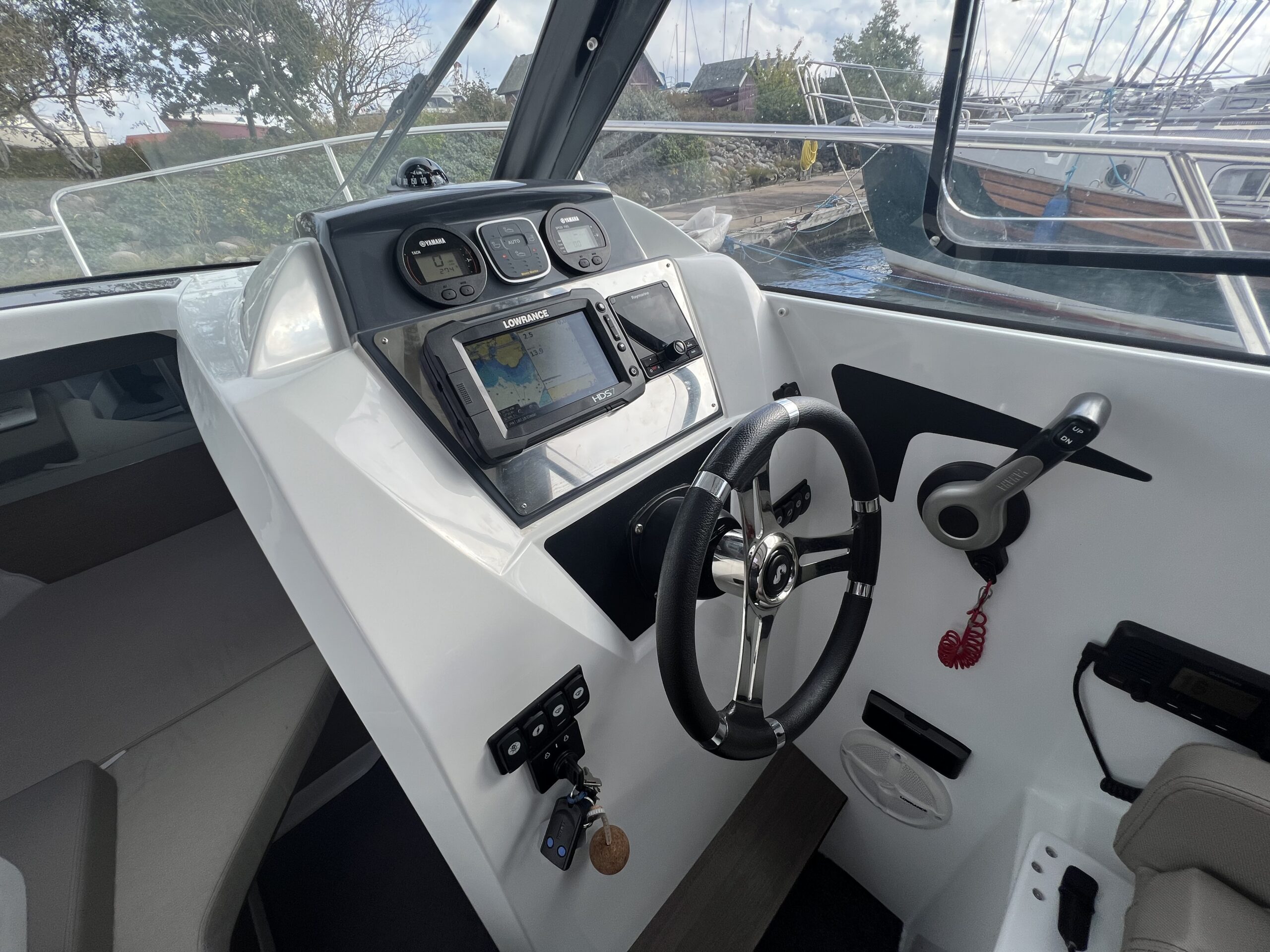 Skønt agterdæk med mulighed for stor siddegruppe med bordløsning som kan omgøres til fin solplads. God sikker adgang til badeplatform med badestige. Via skydedøre adgang til rummelig lys salon med lækker styreplads og god komfortabel siddegruppe med bordløsning som også kan omgøres til dobbeltkøje. Smart velfungerende pantrysektion med alle fornødenheder. Fremme yderligere dobbeltkøje i forbindelse med fint toiletrum. Masser af funktionelle løsninger og et dejligt lysindfald gør båden attraktiv for familie som søger en velfungerende turbåd. Båden er topudstyret og er med en Yamaha 150HK der har gået 275 timer som altid er blevet passet og serviceret. Båden er i forår 2022 opdateret med bl.a. Autopilot, VHF, AIS, og Trimflaps, Havneplads Brøndby havn og Båd trailer kan tilkøbes.