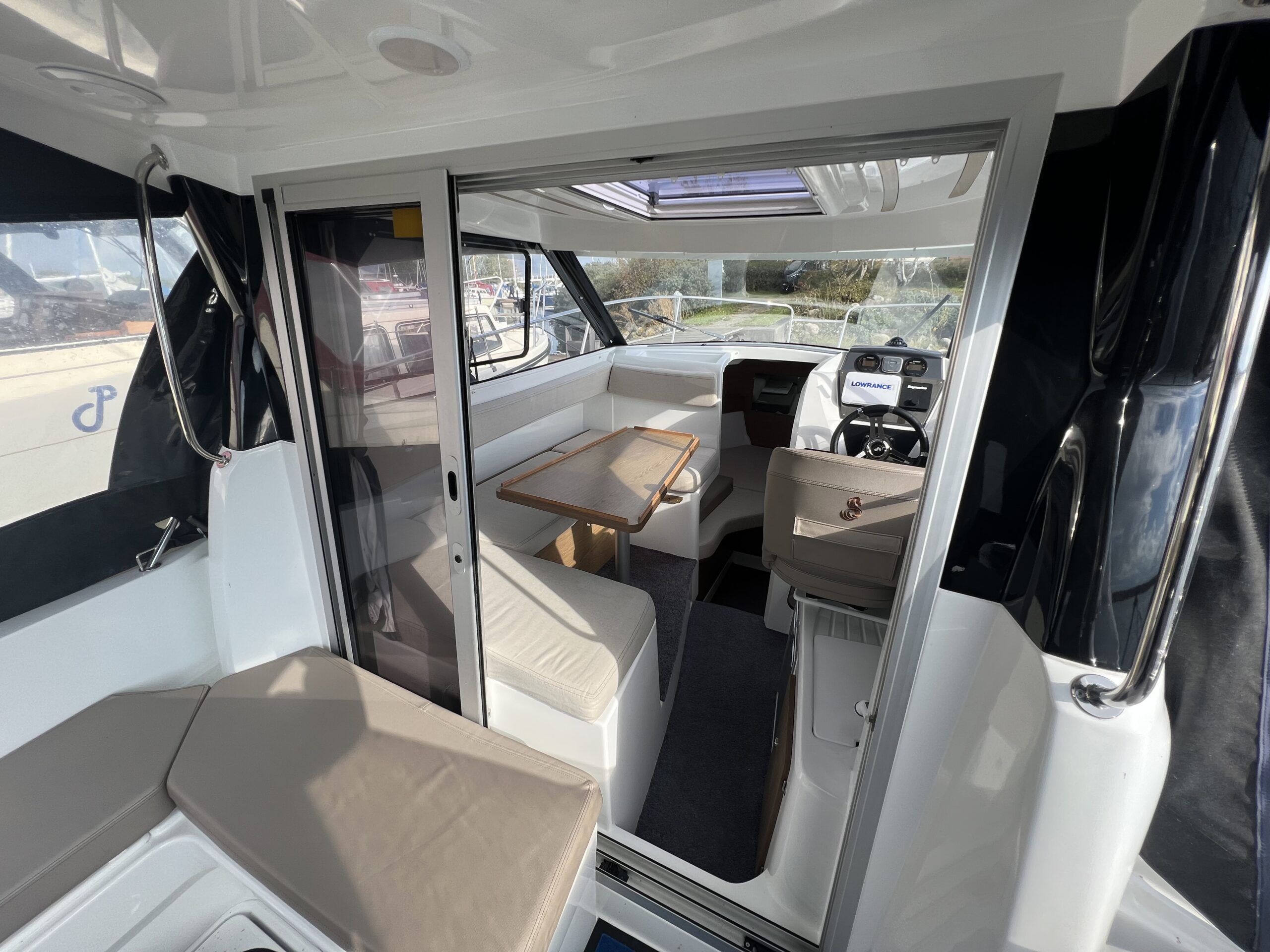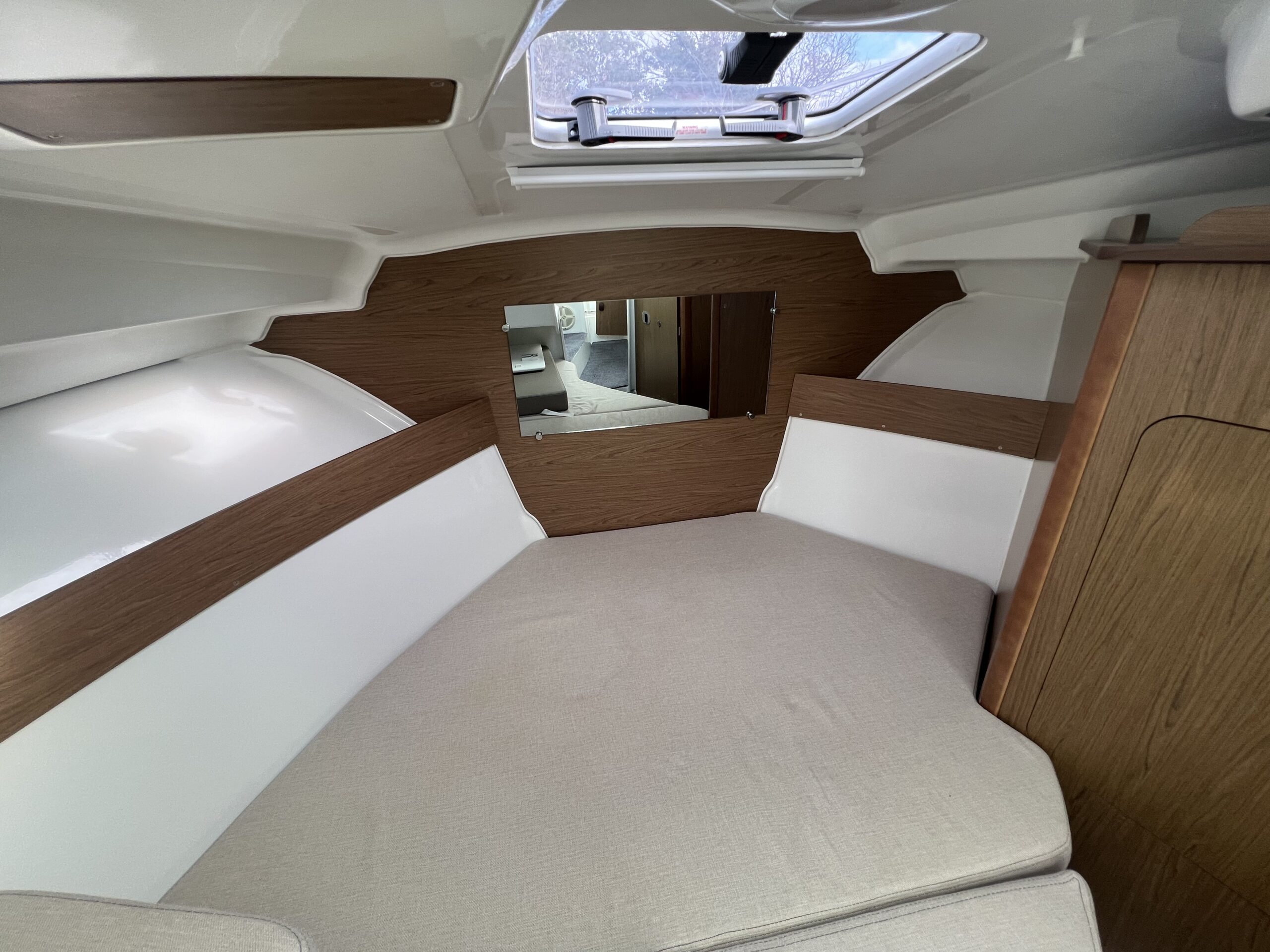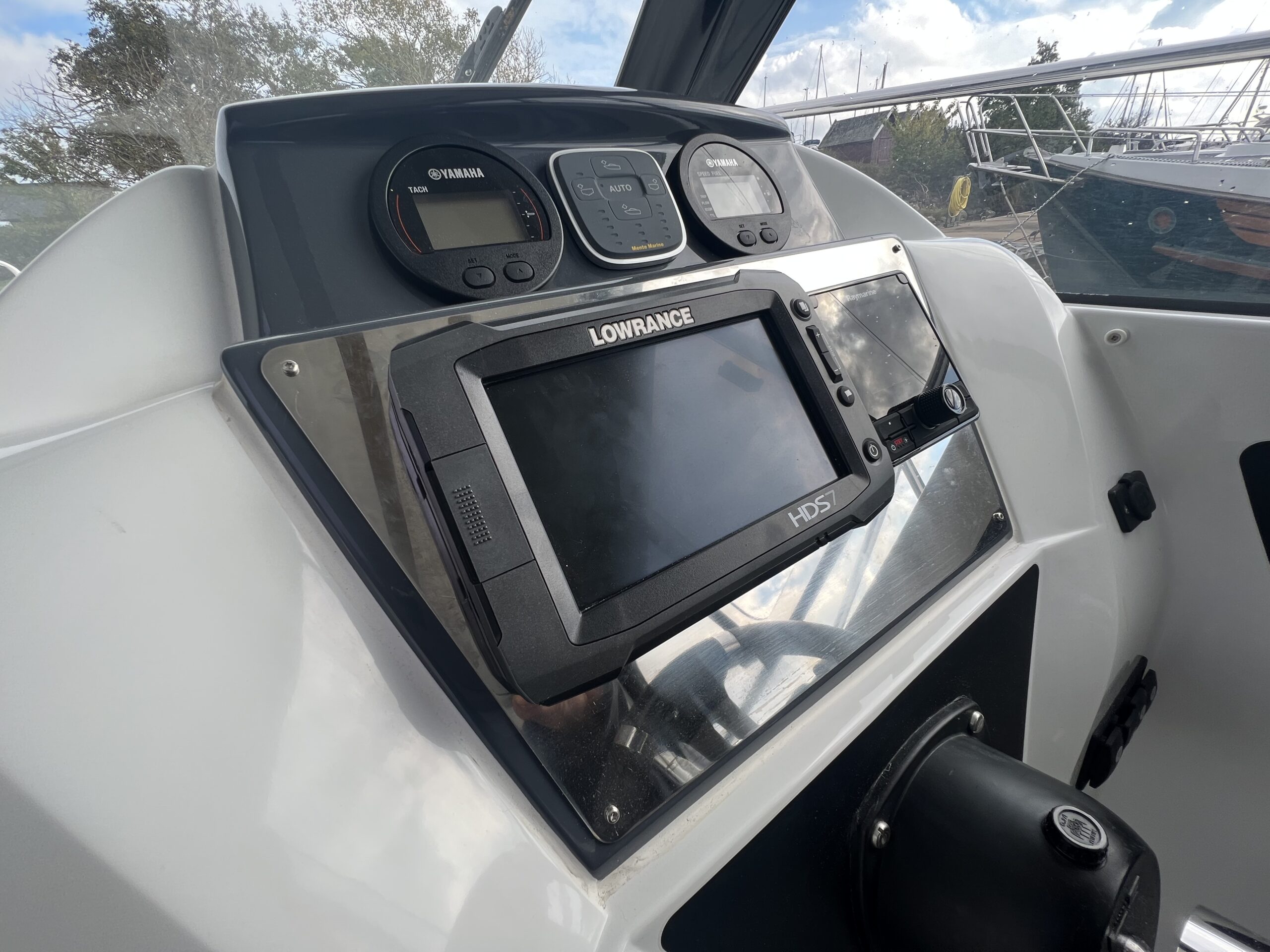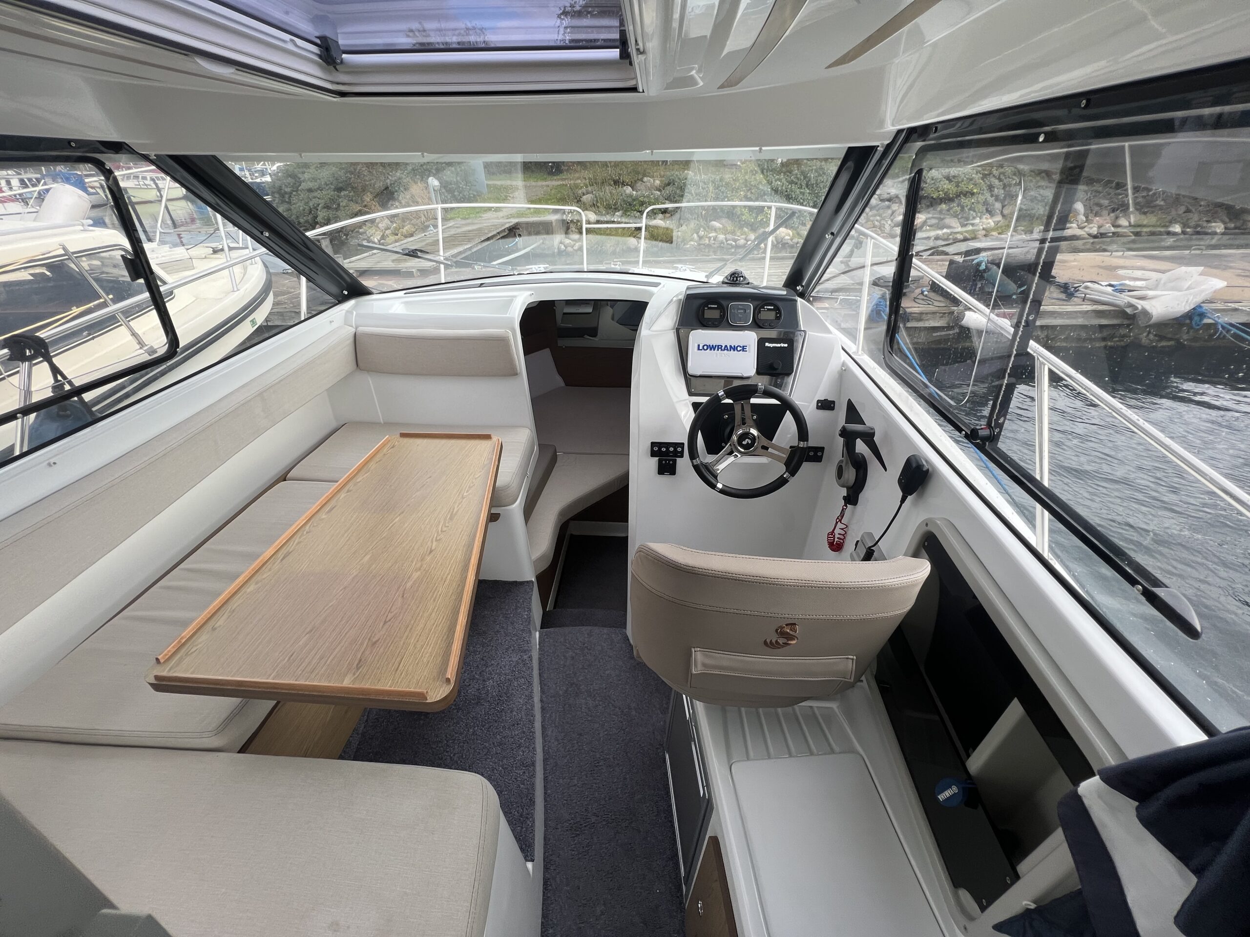 Skønt agterdæk med mulighed for stor siddegruppe med bordløsning som kan omgøres til fin solplads. God sikker adgang til badeplatform med badestige. Via skydedøre adgang til rummelig lys salon med lækker styreplads og god komfortabel siddegruppe med bordløsning som også kan omgøres til dobbeltkøje. Smart velfungerende pantrysektion med alle fornødenheder. Fremme yderligere dobbeltkøje i forbindelse med fint toiletrum. Masser af funktionelle løsninger og et dejligt lysindfald gør båden attraktiv for familie som søger en velfungerende turbåd. Båden er topudstyret og er med en Yamaha 150HK der har gået 275 timer som altid er blevet passet og serviceret. Båden er i forår 2022 opdateret med bl.a. Autopilot, VHF, AIS, og Trimflaps, Havneplads Brøndby havn og Båd trailer kan tilkøbes.