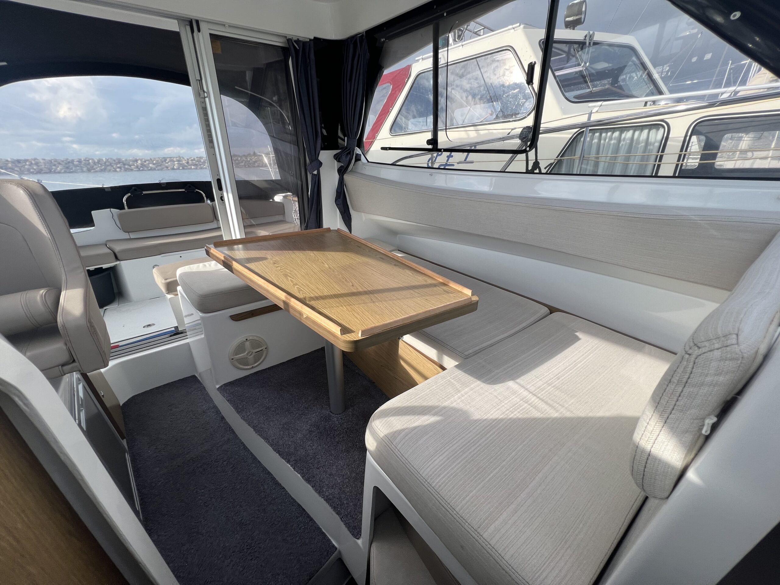 | Udstyr | Badestige, Navigationslys, Badeplatform med Teak, Fuld kaleche, Skydetag, Trykvand/koldt, Køleskab, Radio/højtalere, Toilet, Gulvtæppe i Cockpit, Bord i Cockpit, Bord til Agterdæk, LED lys i div. rum,
