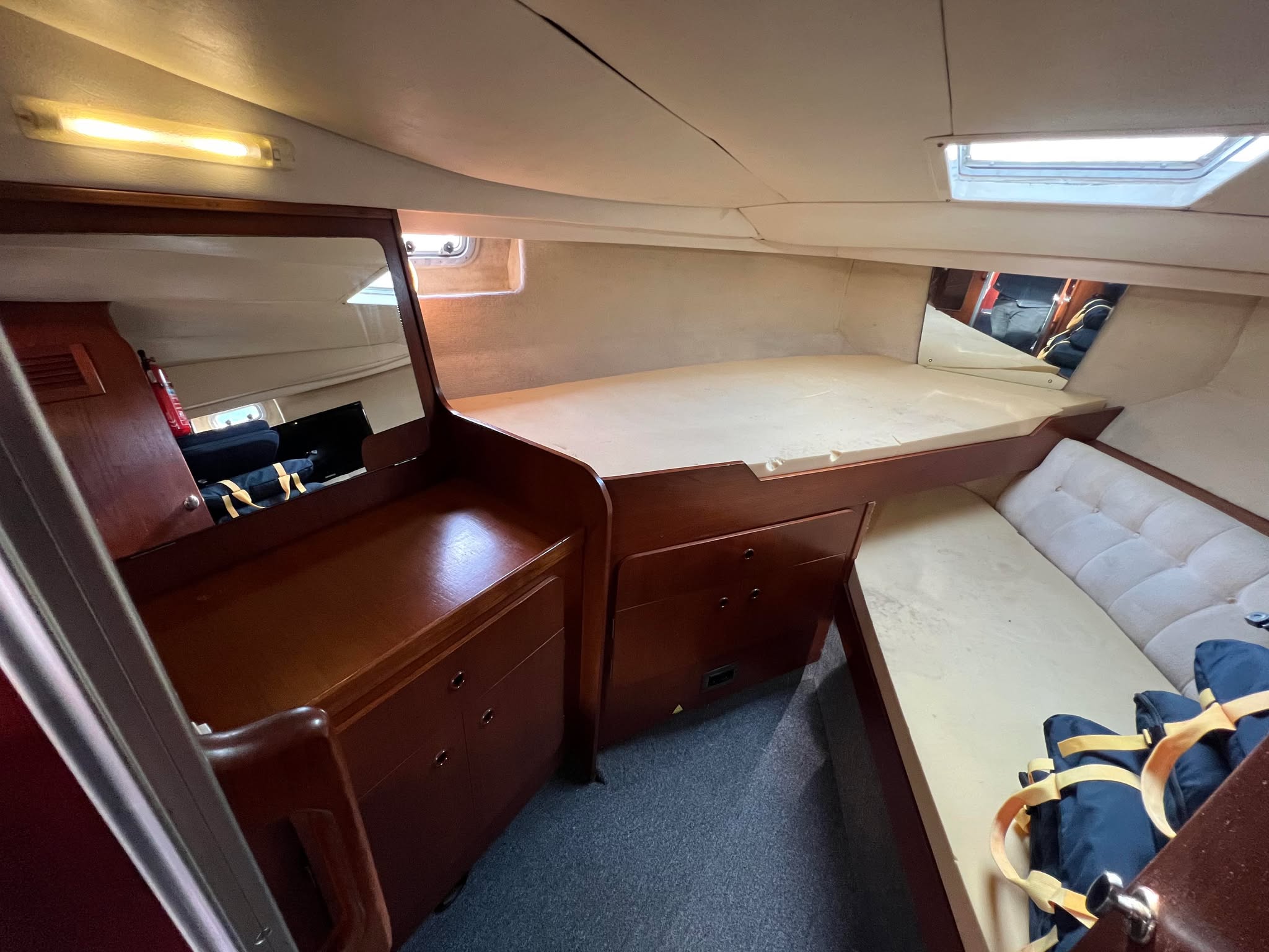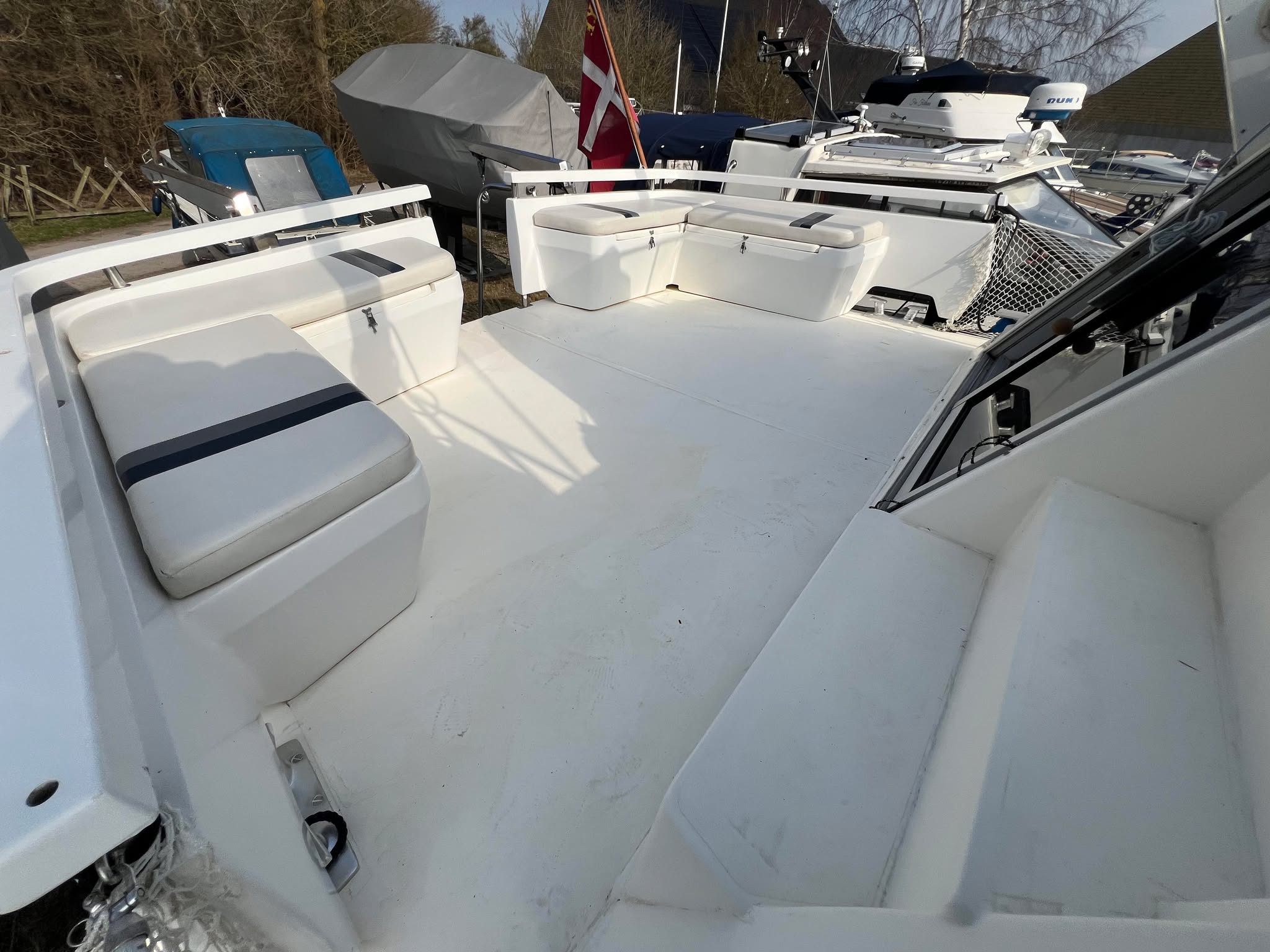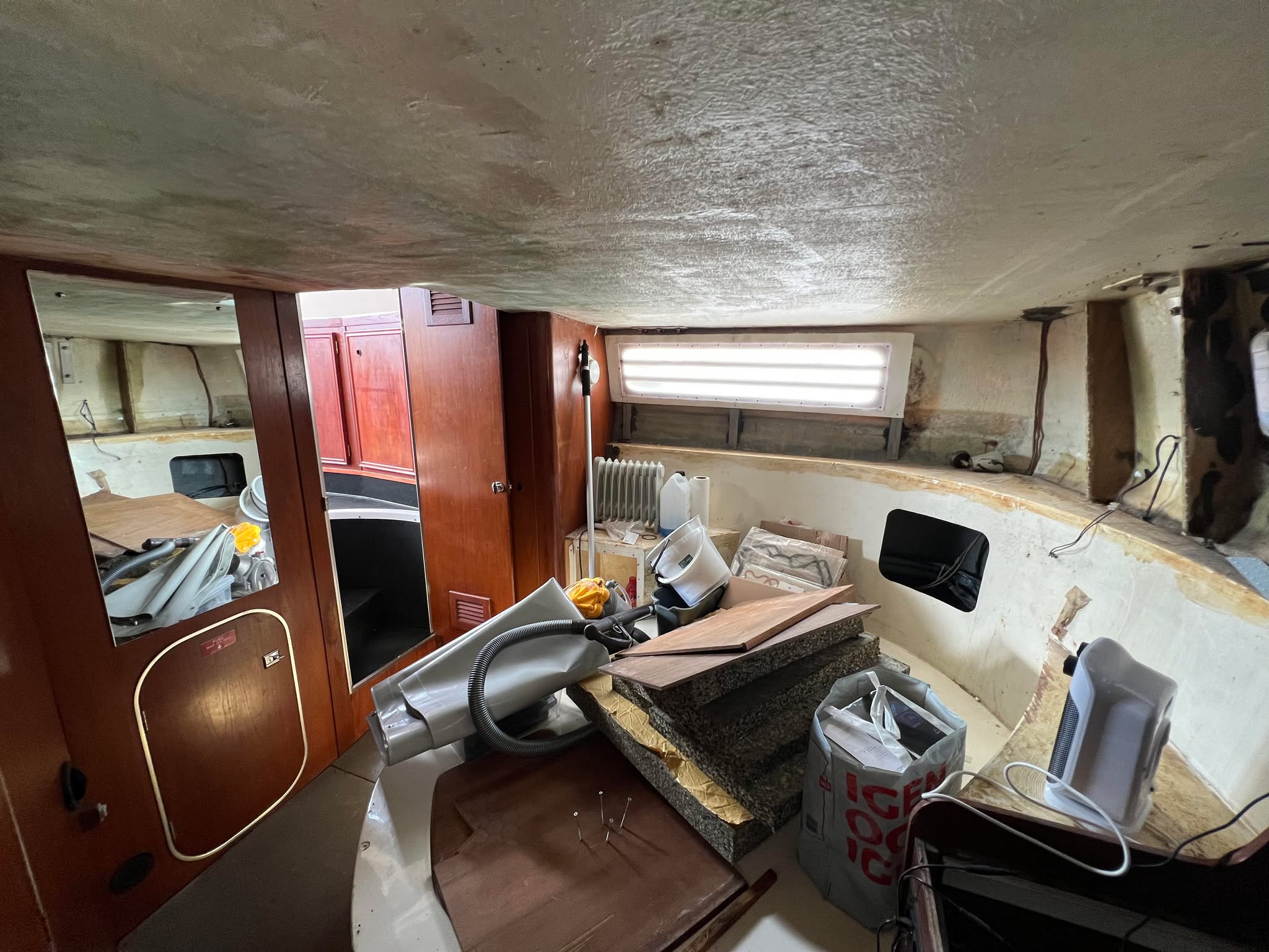 Båden er ikke perfekt, der et projekt i agterkahyt som skal laves færdigt. agterdæk var blevet blødt og dette er blevet udbedret af professionel, så nu mangler der blot beklædning og god mulighed for at isolere hele agterkahytten. Båden har en størrelse der gør man kan bruge den til bebeoelse/sommerhus.