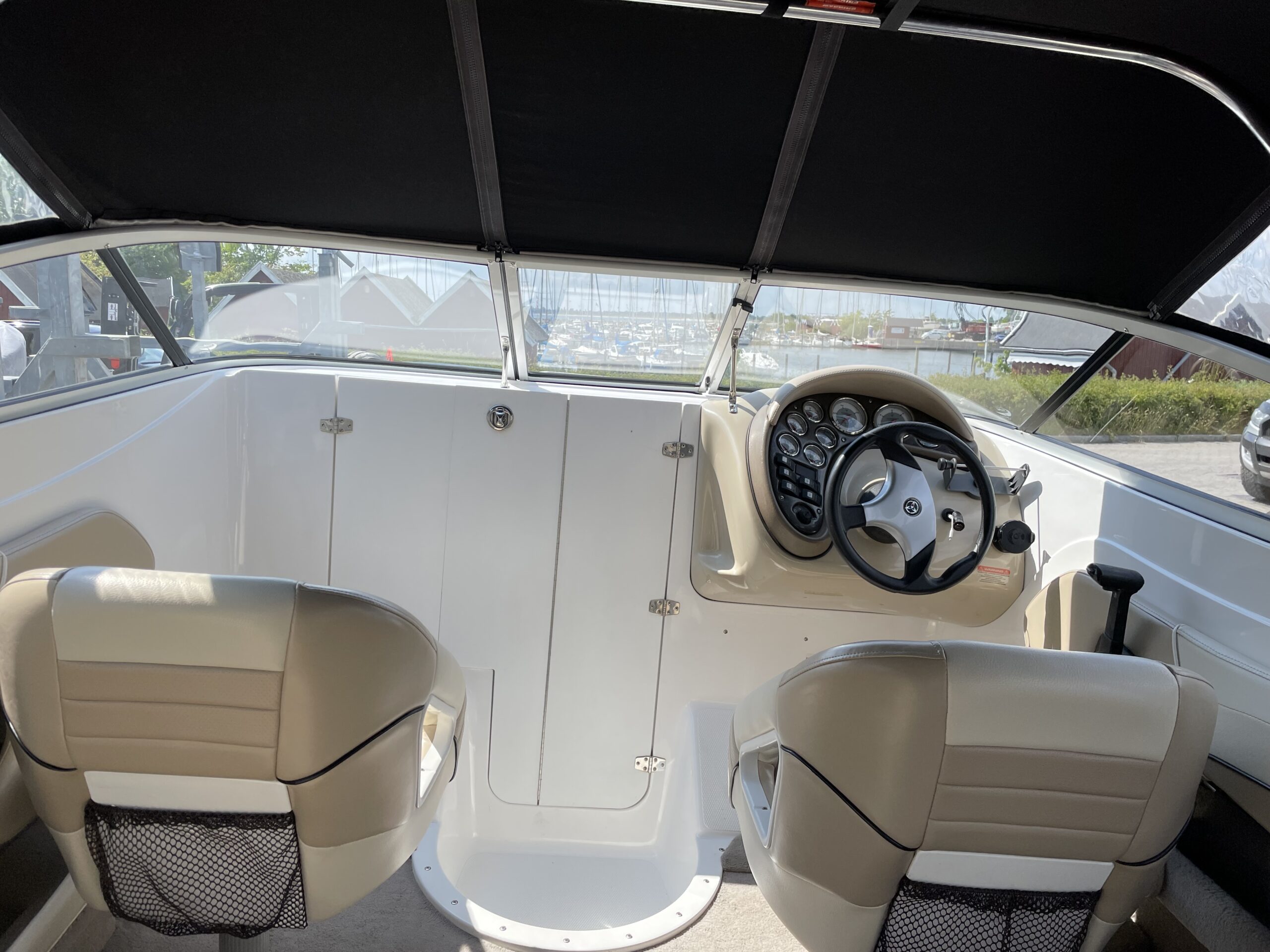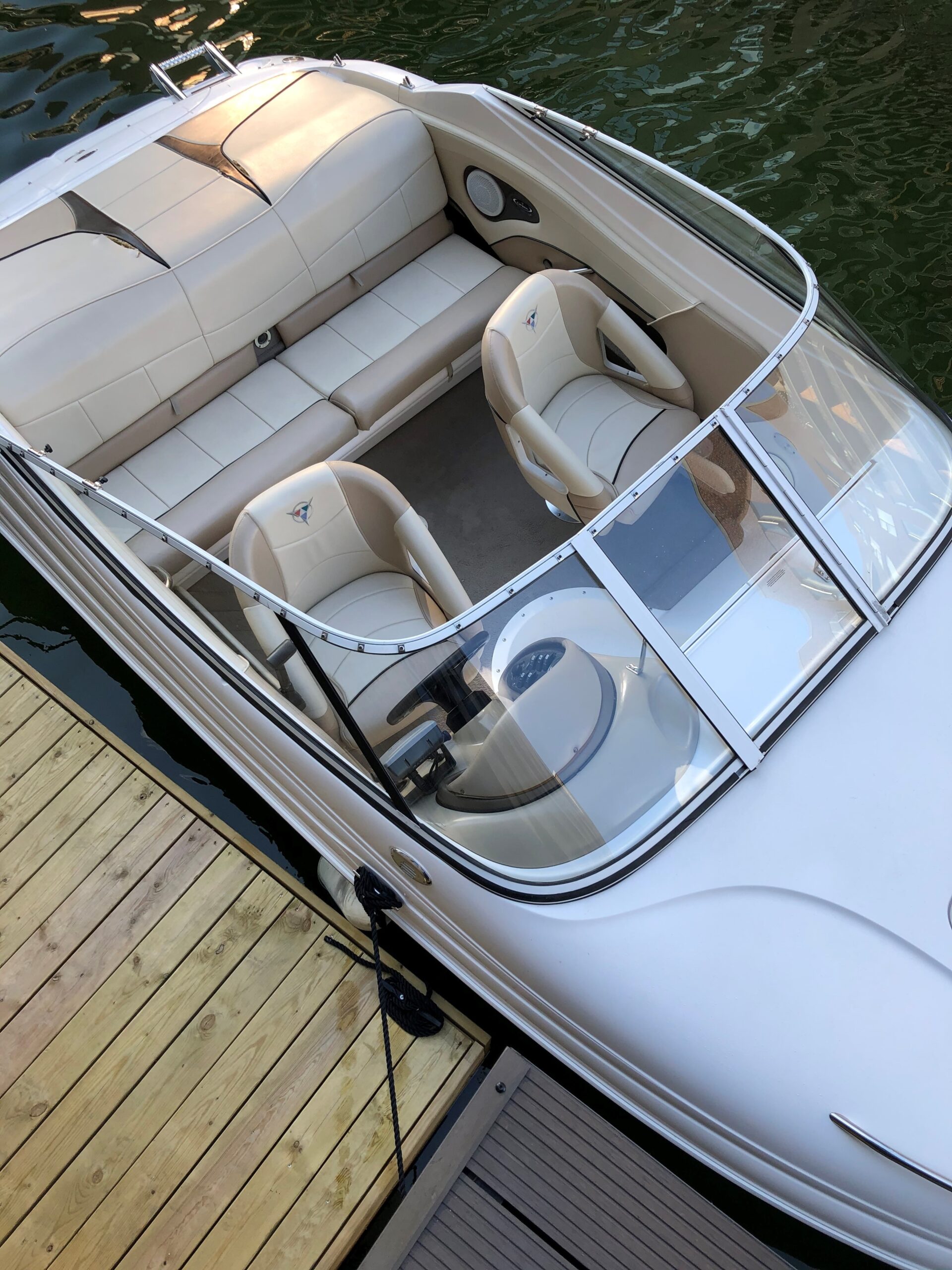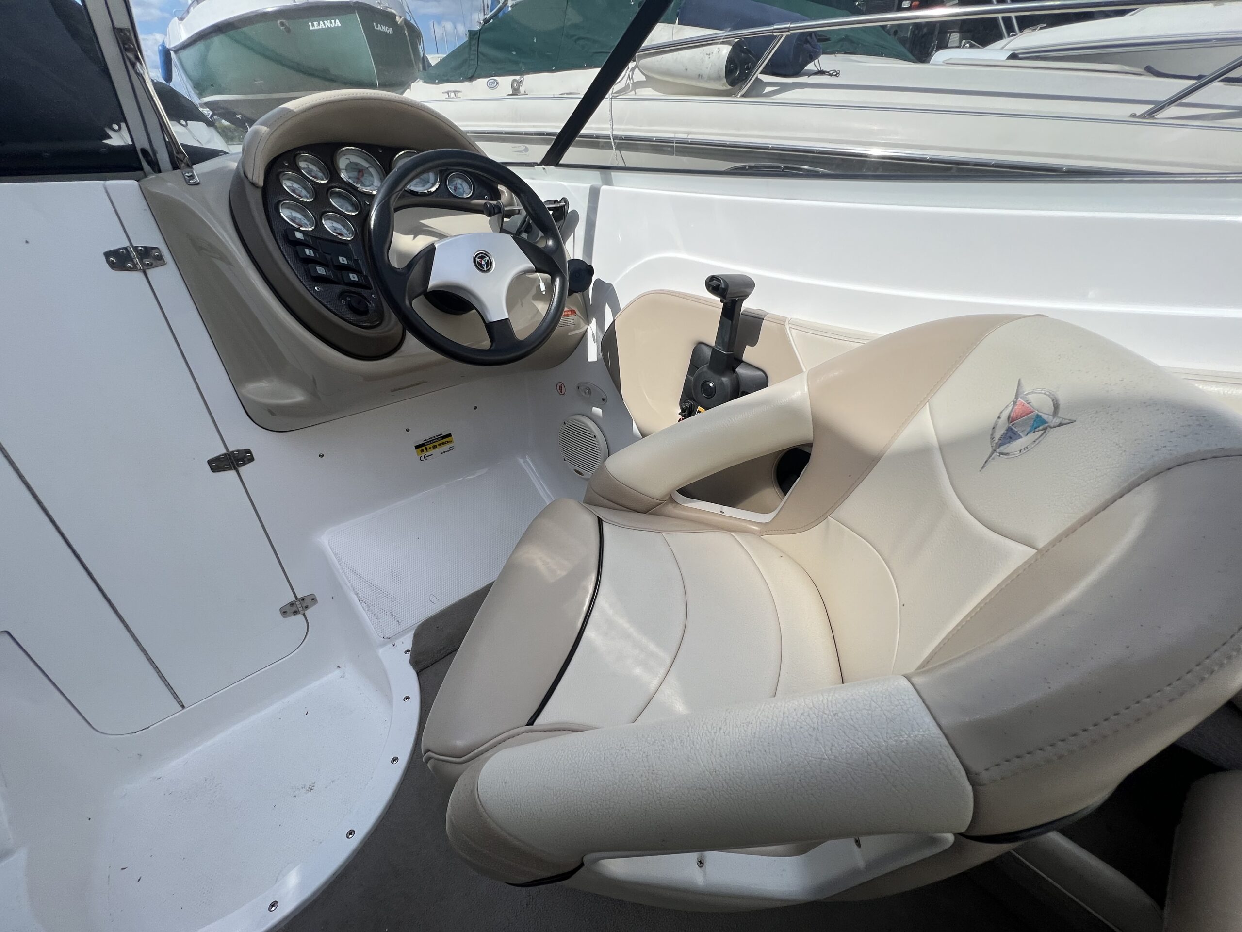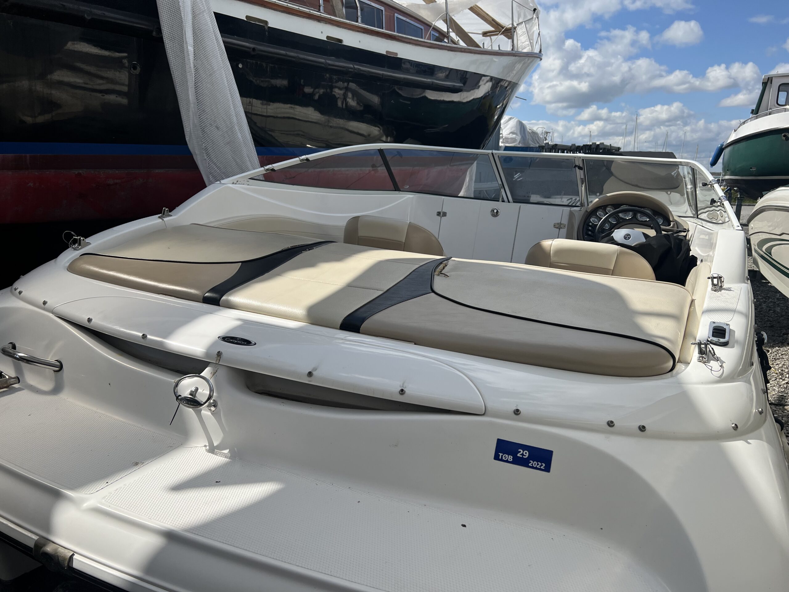 Campion årg. 2006 – lige til at sejle afsted i. Dejligt cockpit med to pilotstole og stor sofa med solplads agter hertil er der Cockpitbord så man også kan nyde en frokost på vandet. Der medfølger høj Kaleche så man kan sidde i tørvejr hvis det danske sommer vejr ikke holder. Perfekt til vandski, tube eller familietur på vandet. båden er blevet vinteropbevaret indendørs.