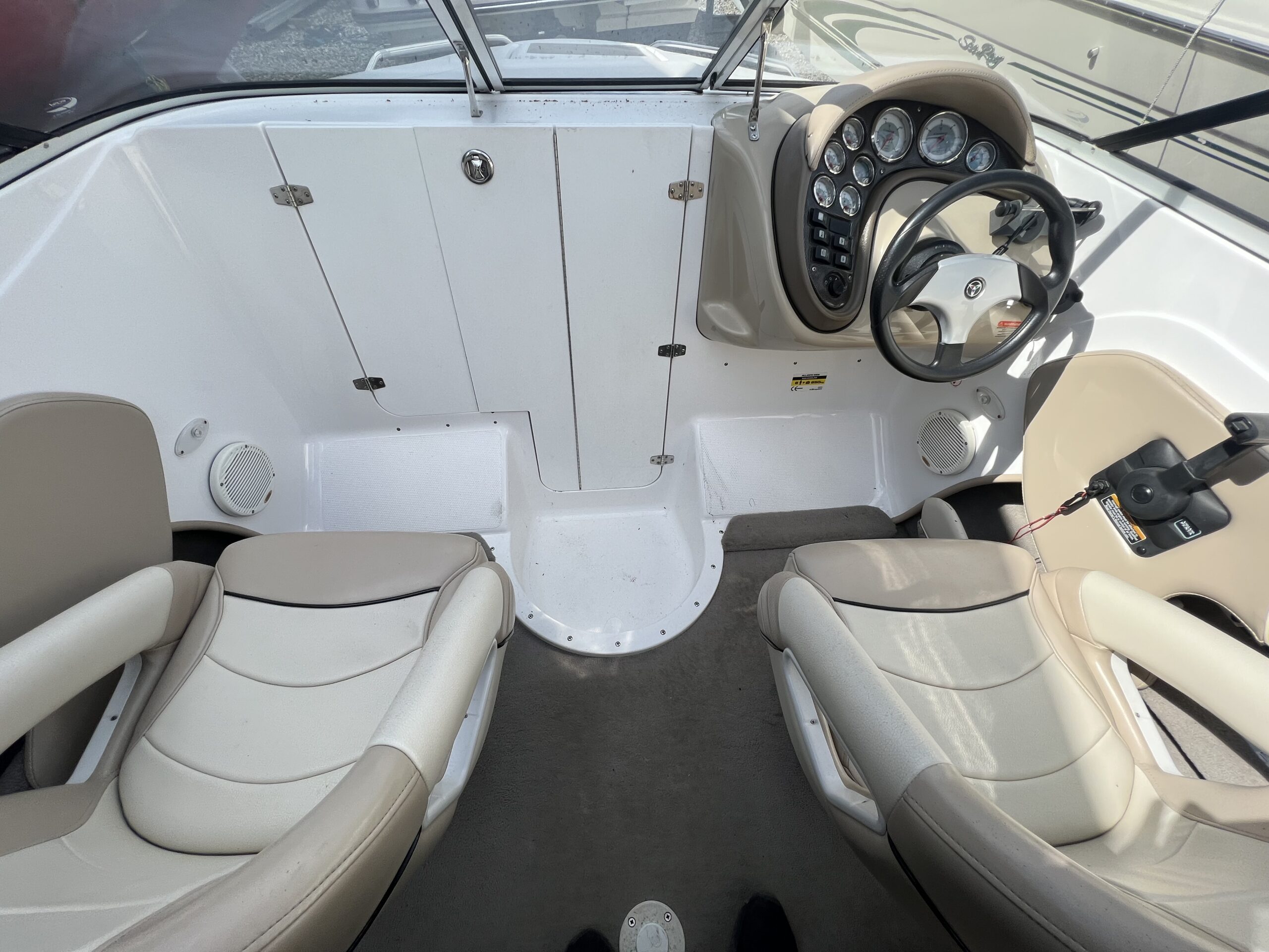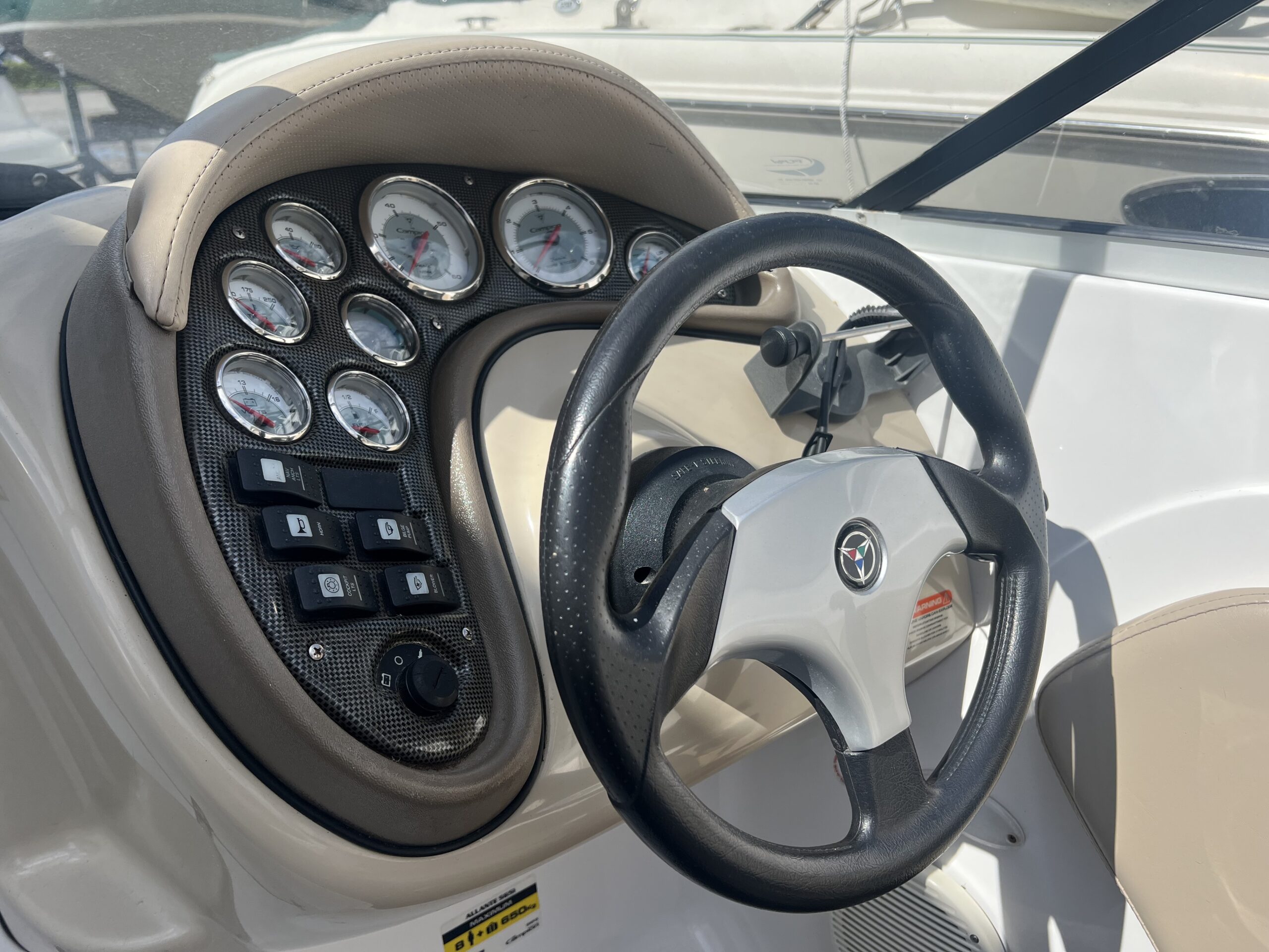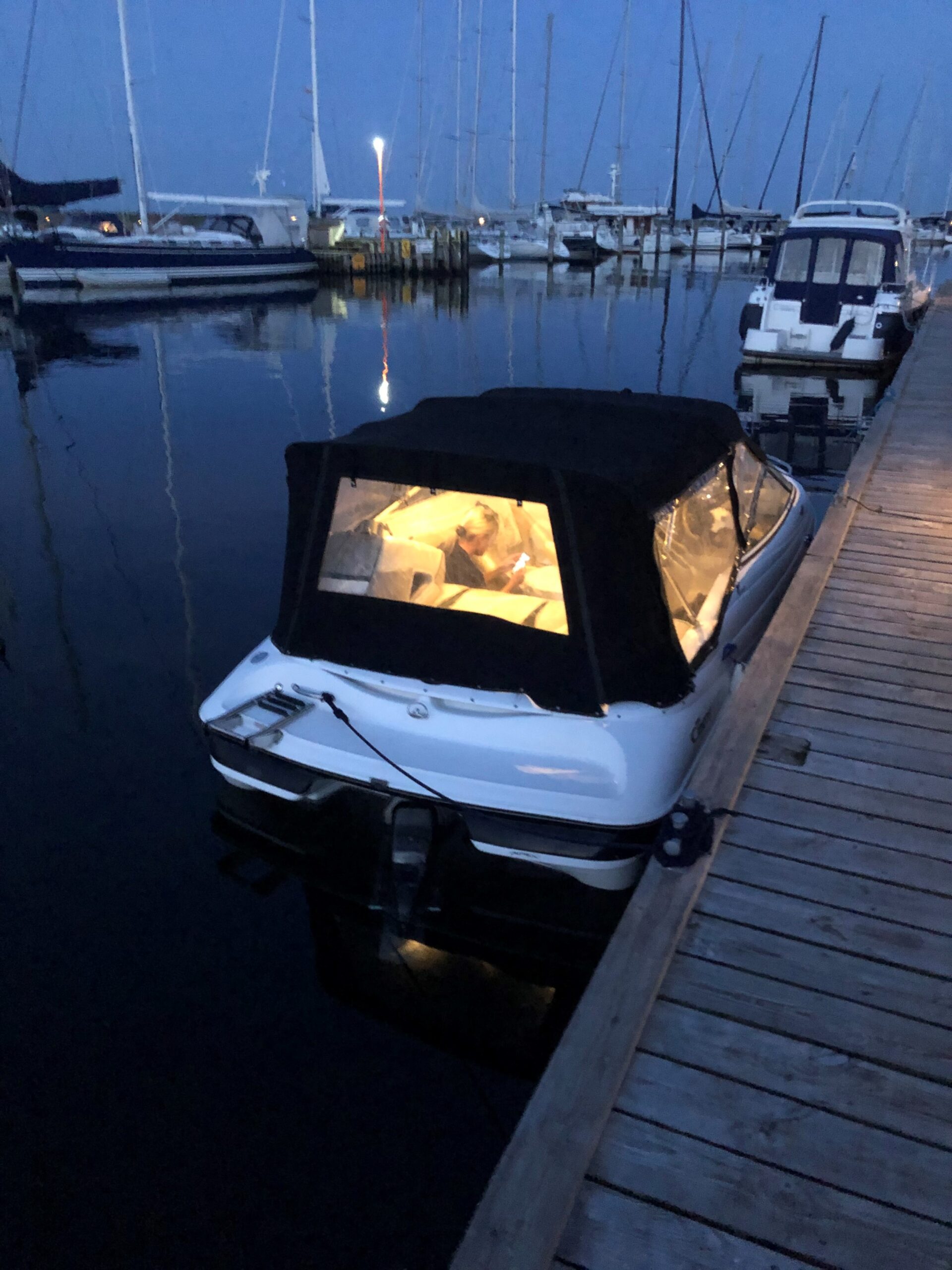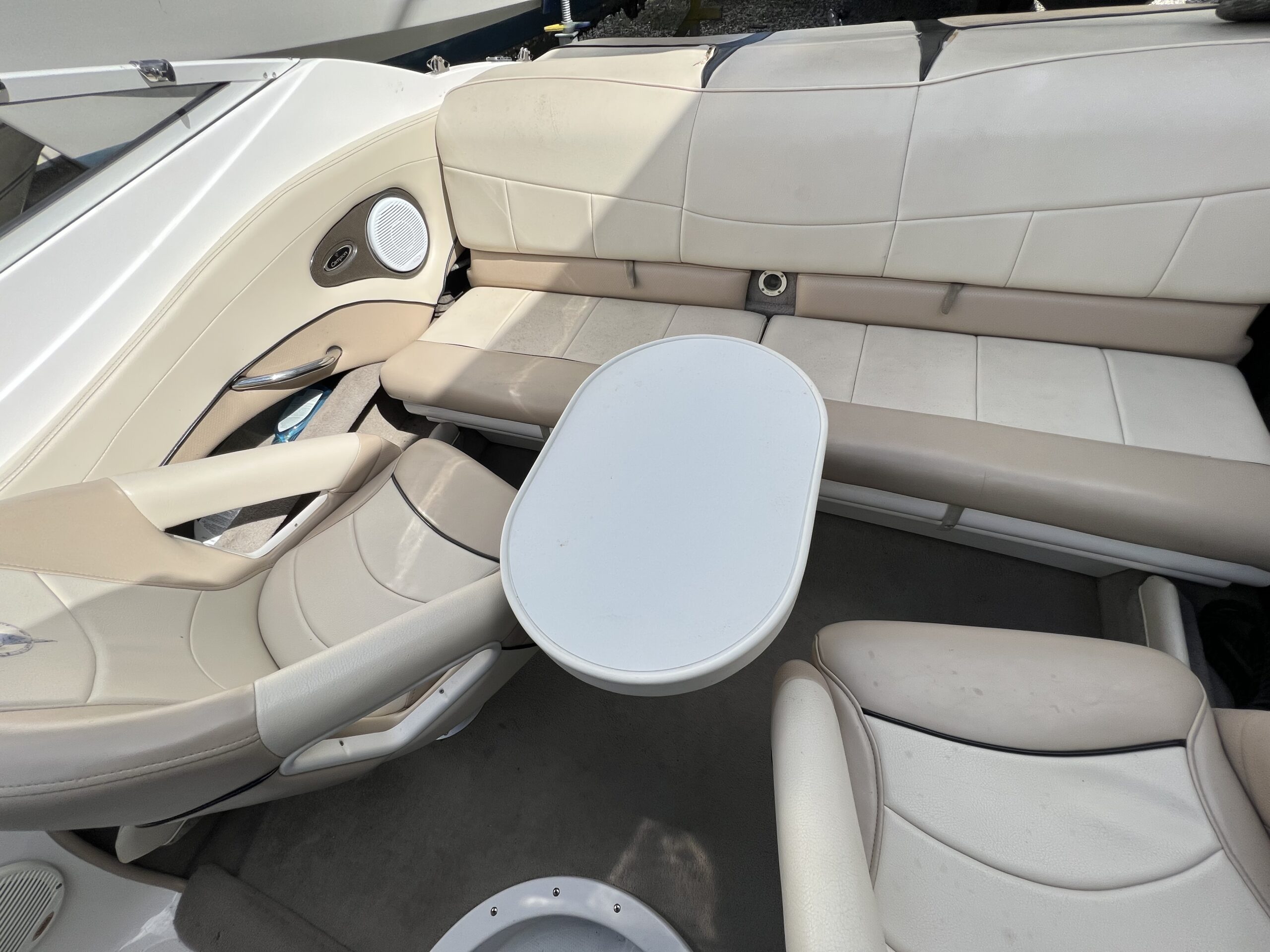 Campion årg. 2006 – lige til at sejle afsted i. Dejligt cockpit med to pilotstole og stor sofa med solplads agter hertil er der Cockpitbord så man også kan nyde en frokost på vandet. Der medfølger høj Kaleche så man kan sidde i tørvejr hvis det danske sommer vejr ikke holder. Perfekt til vandski, tube eller familietur på vandet. båden er blevet vinteropbevaret indendørs.