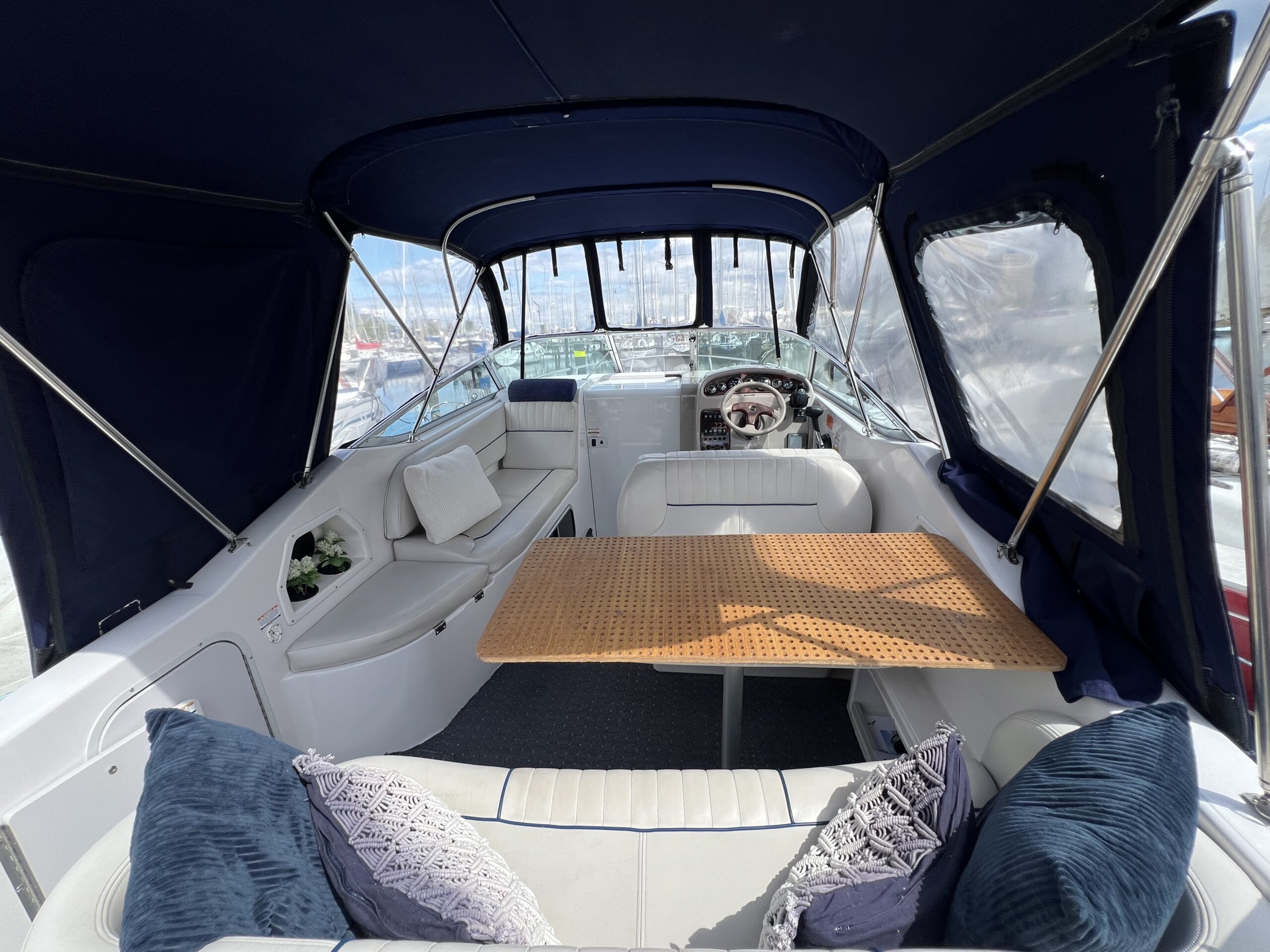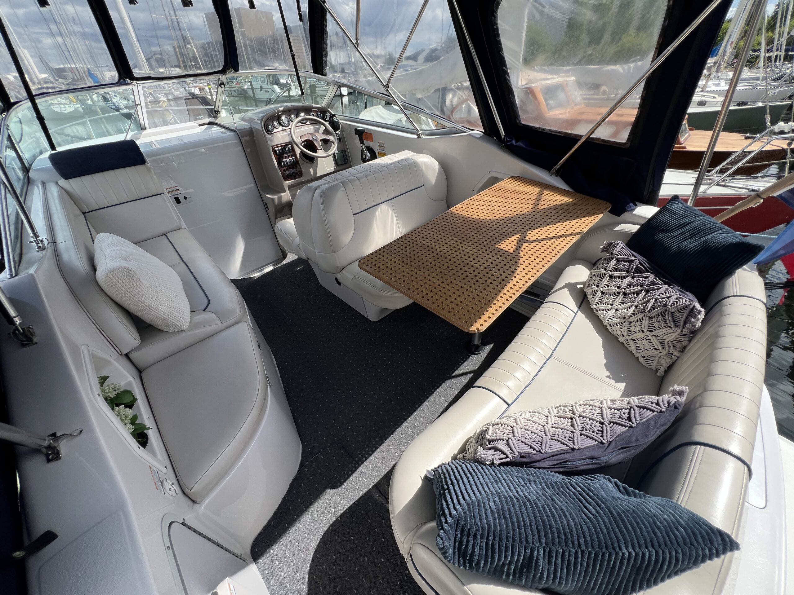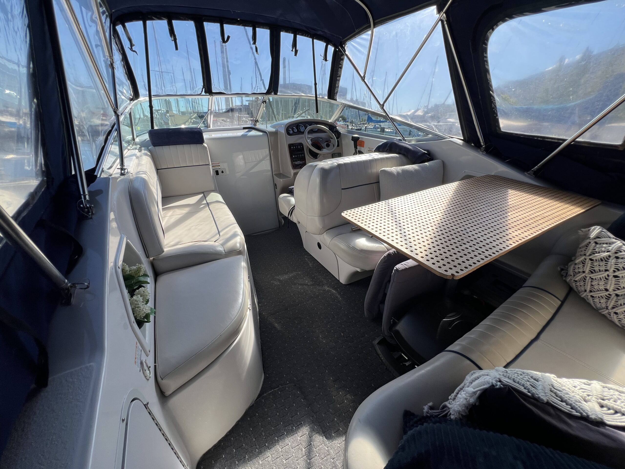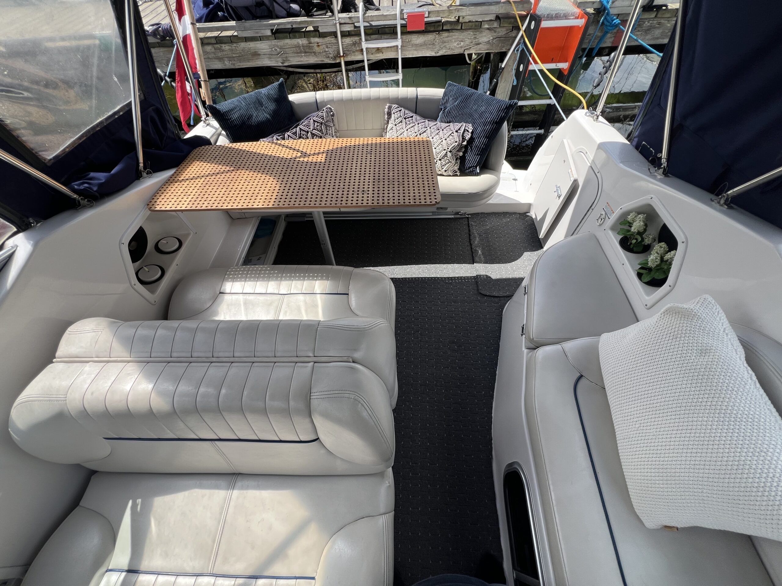 Cockpittet er utroligt rummeligt med et komfortabelt siddeområde og et bord, perfekt til hele familien.