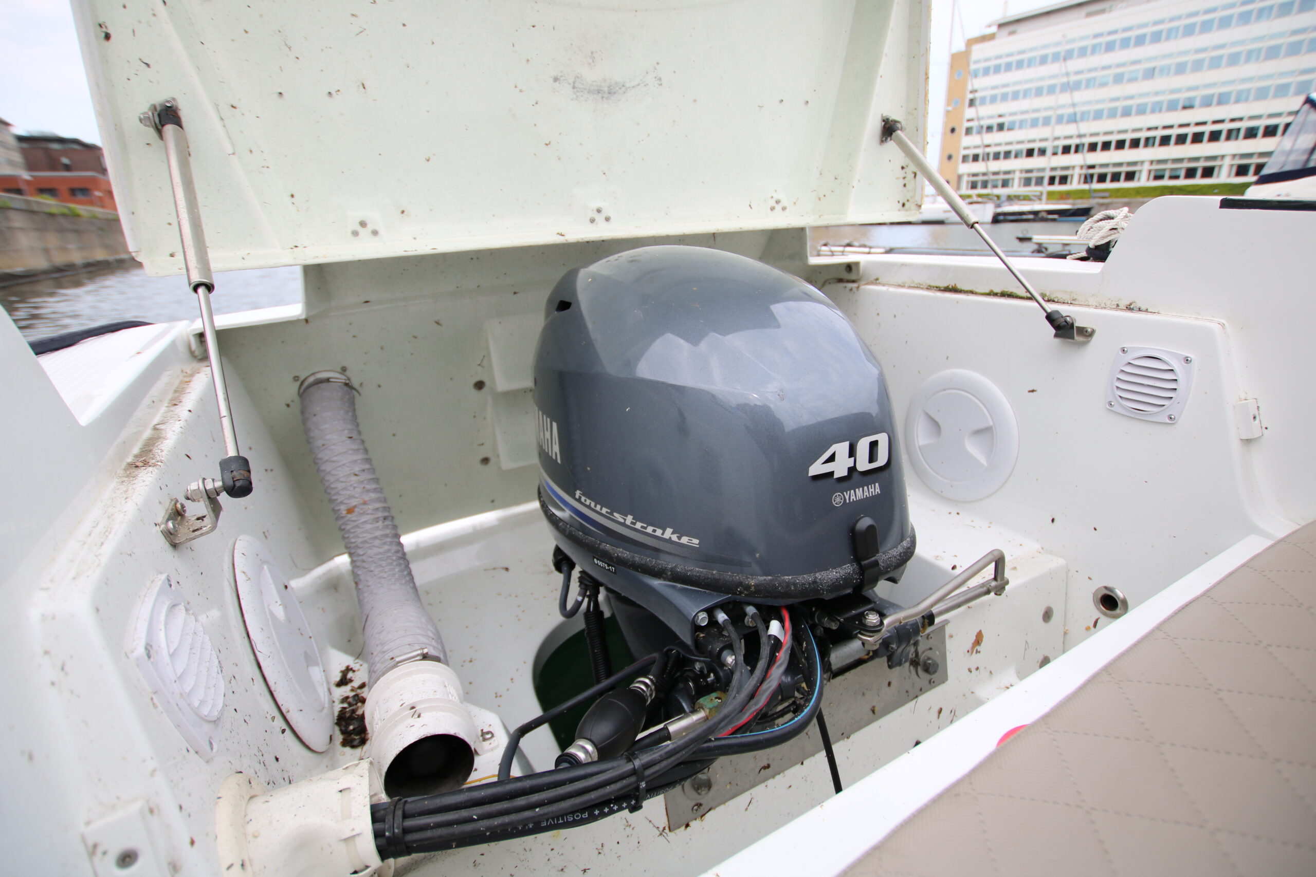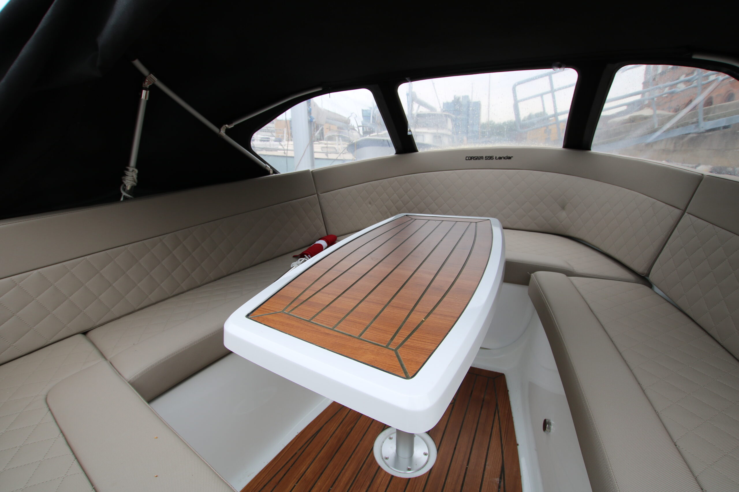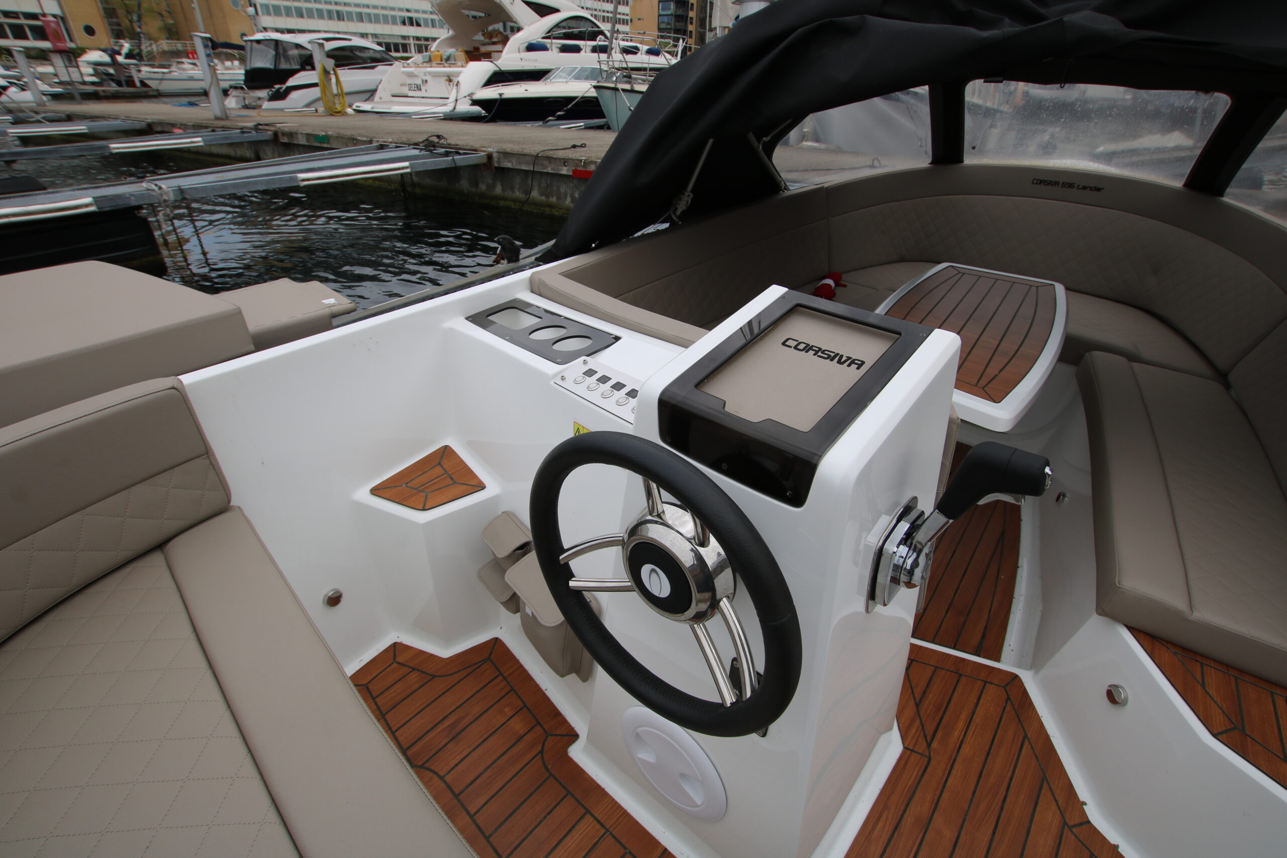 Corsiva 595 Tender er den Nye model fra Corsiva. DK mest solgte Cosiva Tender-model med den store superstærke og økonomiske 40HK og alt i lækkert udstyr. Dejlig familievenlig motorbåd til Københavns kanaler, en tur på søen eller op langs kysten. Velindrettet med dejlig stor sofa i front og bordløsning. Mulighed for at omgøre sofaen til stor solseng eller med mulighed for overnatning. Agter yderligere siddegruppe med plads til 3+ personer hvorfra båden sejles. Adgang agter til badeplatform og badestige. Båden er monteret med stor kalecheløsning, teaklook i cockpit og agter, fine deluxehynder, LED lys, Kewlarlook på skrog, hvidt inderskrog, bundbehandlet og meget meget mere – alt sammen noget der oven i basisprisen på en ny gør dette til et rigtigt fint køb.