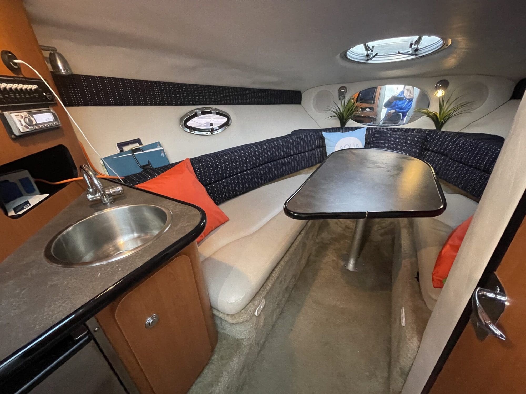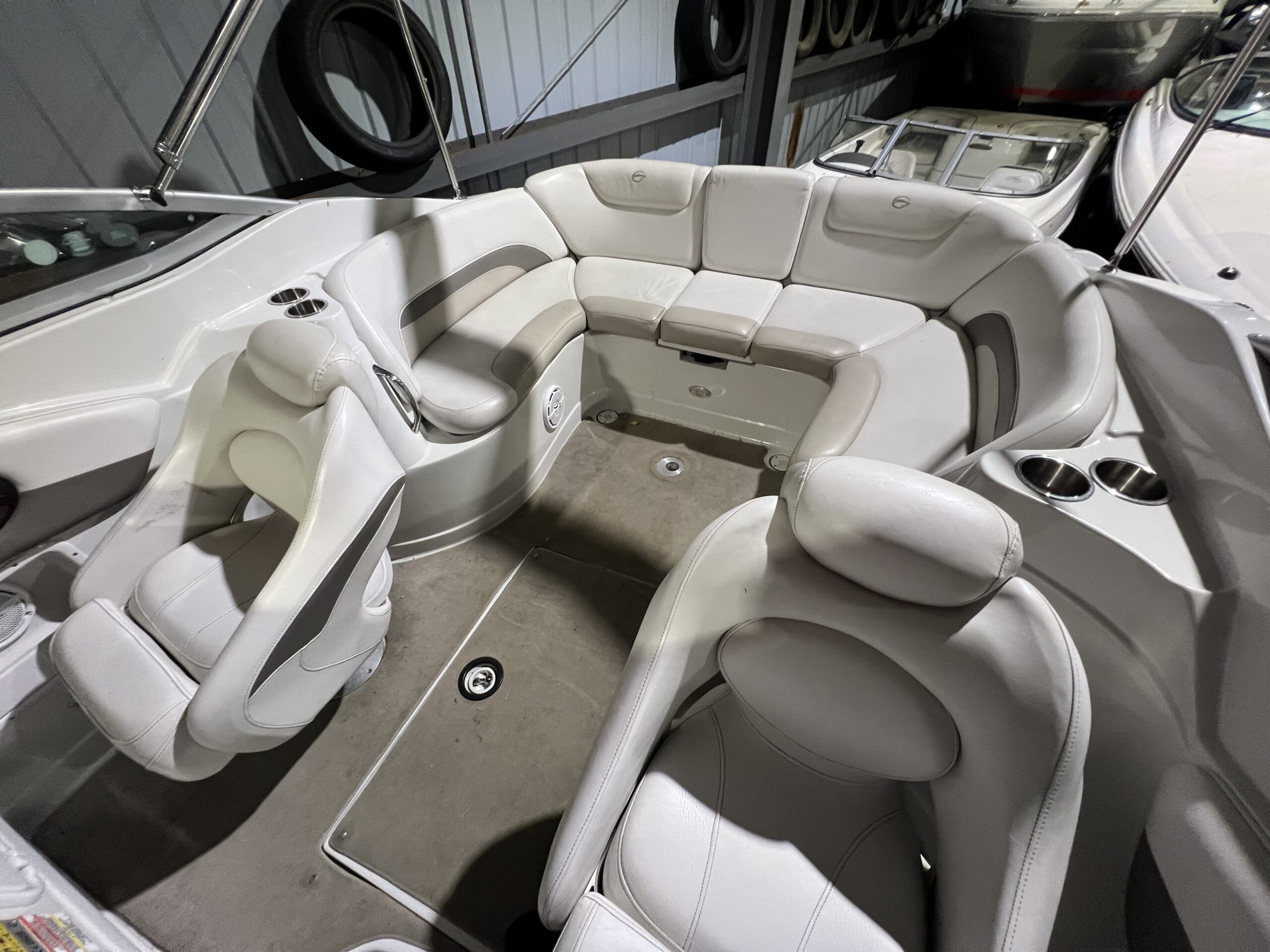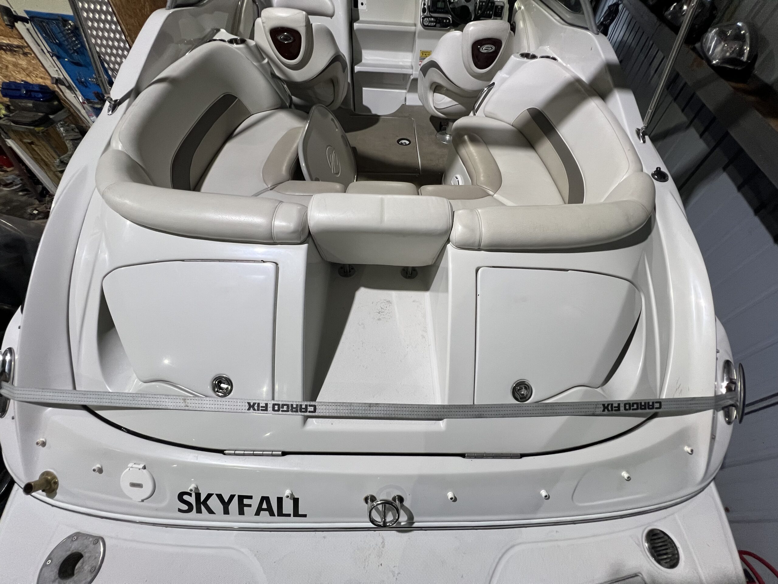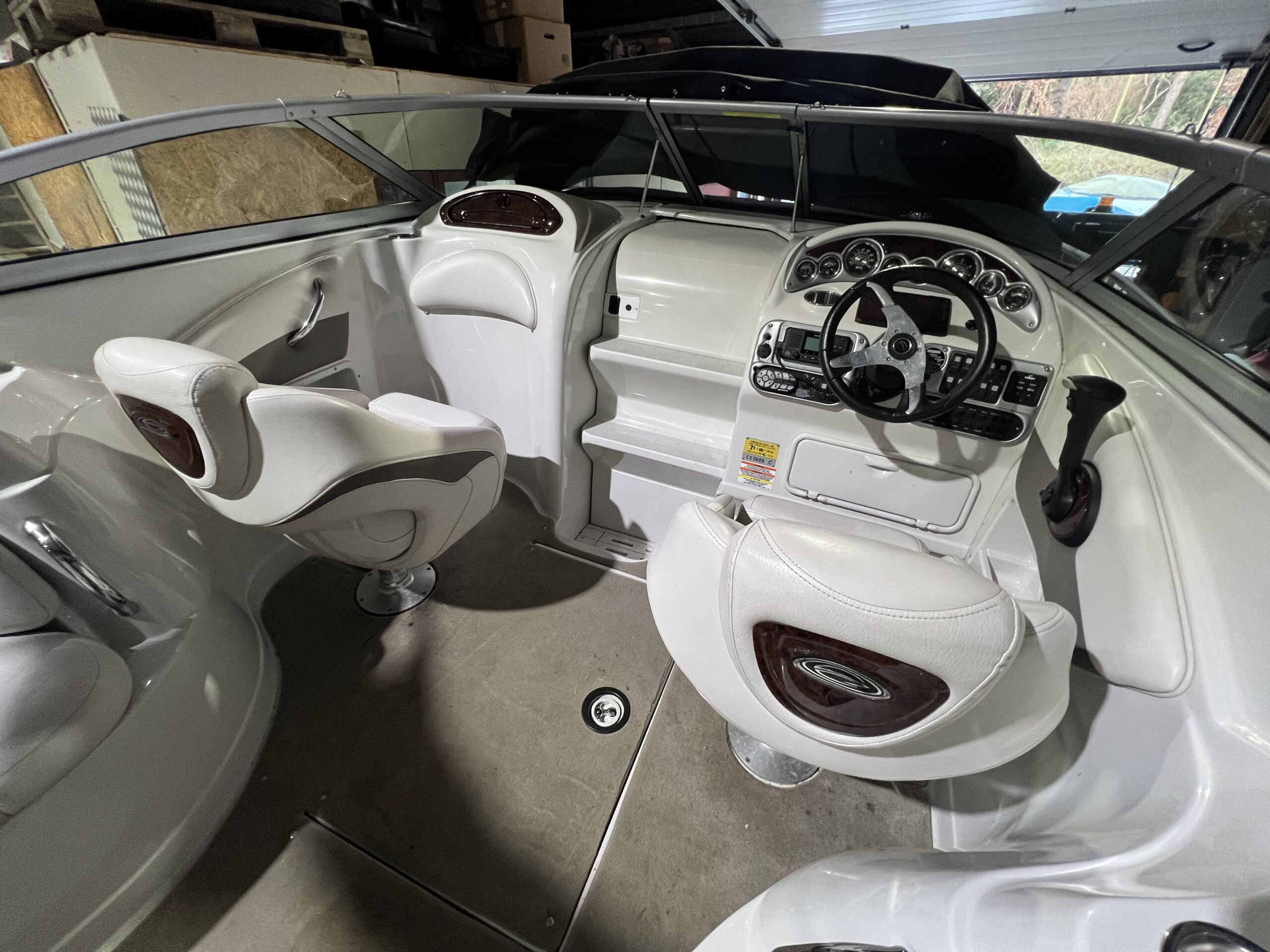Crownline 255 CCR Sport Cruiseren velegnet til dagsture men den kan også bruges til vandsport eller en weekendtur men overnatning. Velpasset hele vejen rundt. Dejligt indbydende cockpit med stor sofa med bordløsning og to pilotstole og frækt sporty instrumentbord. Stor badeplatform med badestige og opbevaringsrum til fendere og fortøjninger, Dejlig kahyt med lille skabsmodul med vask og koldvand og køleskab, fin sofagruppe som kan omgøres til dejlig bekvem dobbeltkøje. Aflukket toiletrum med vaskemodul og toilet. Havnecover og sol madras til fronten er et år gammel og lavet af kaleche smeden. Der følger også en stor Camper kaleche med.