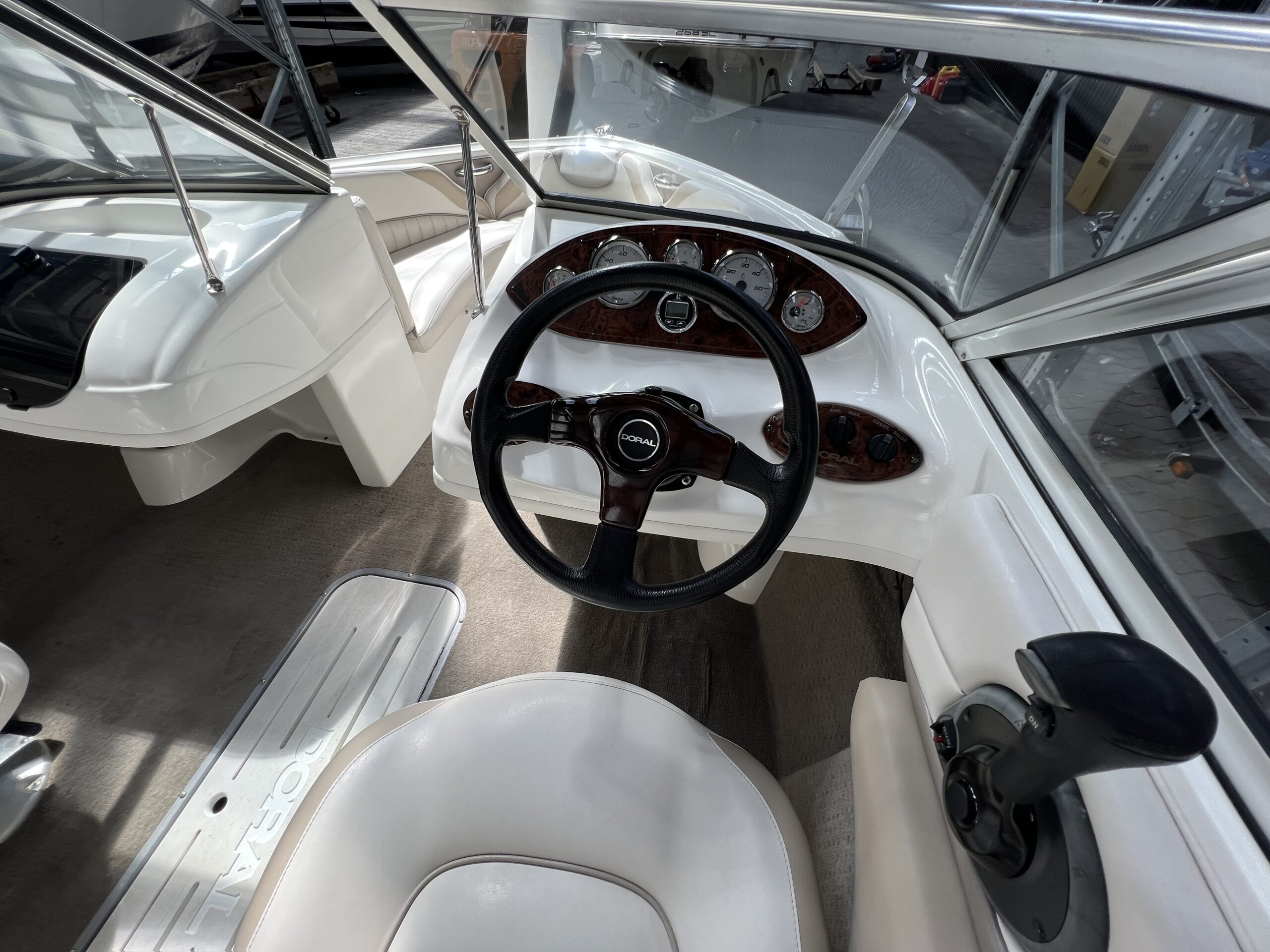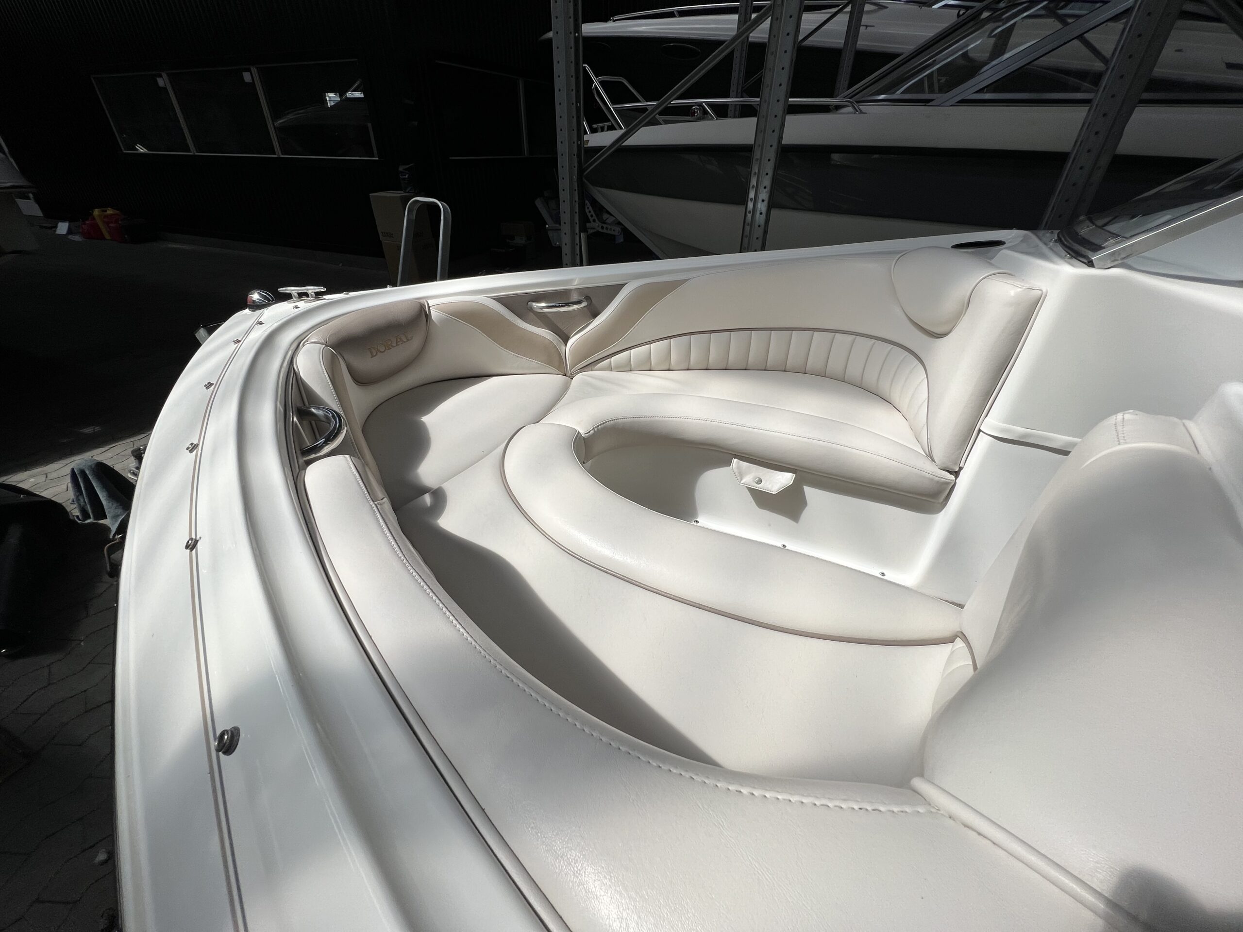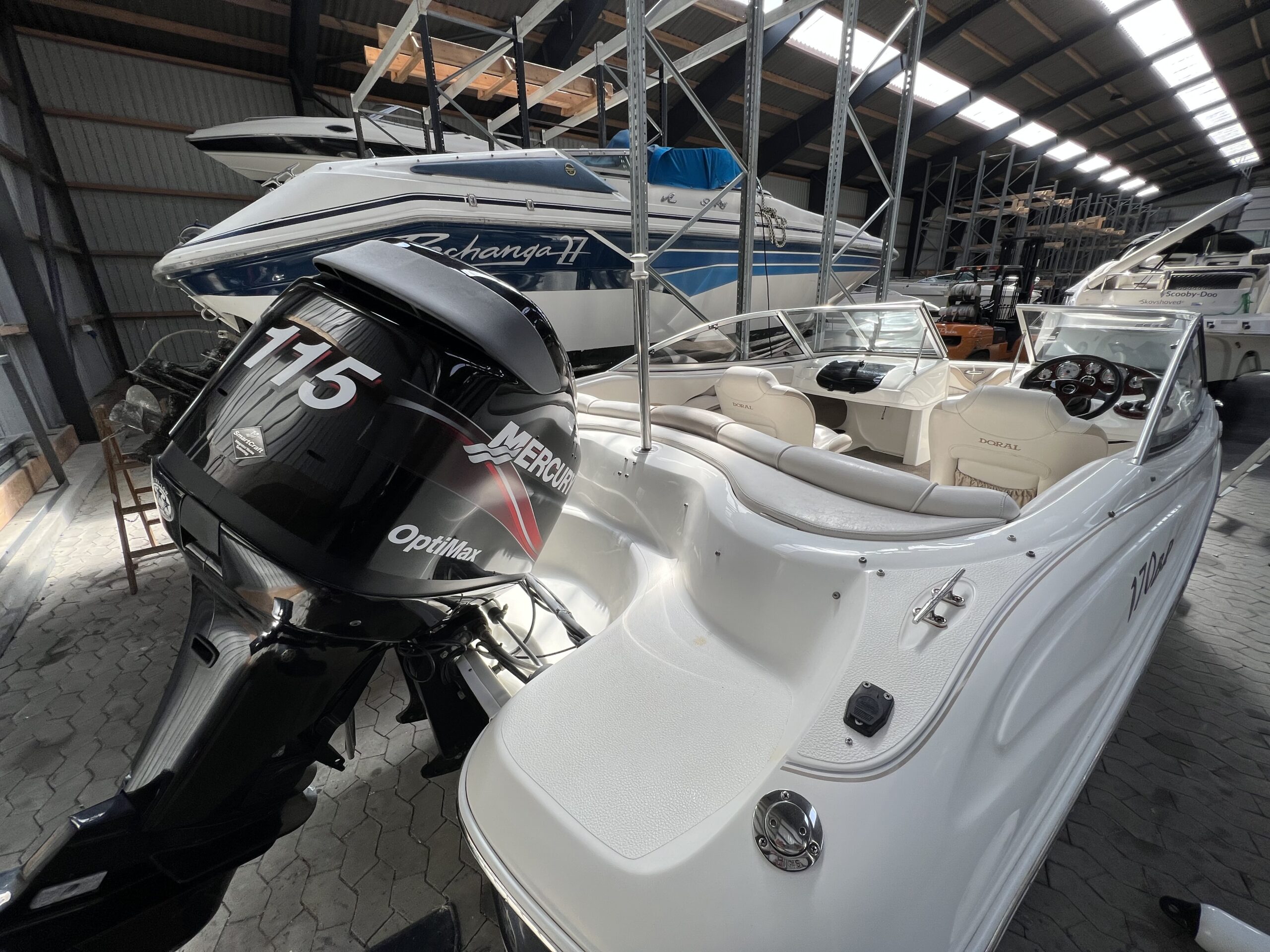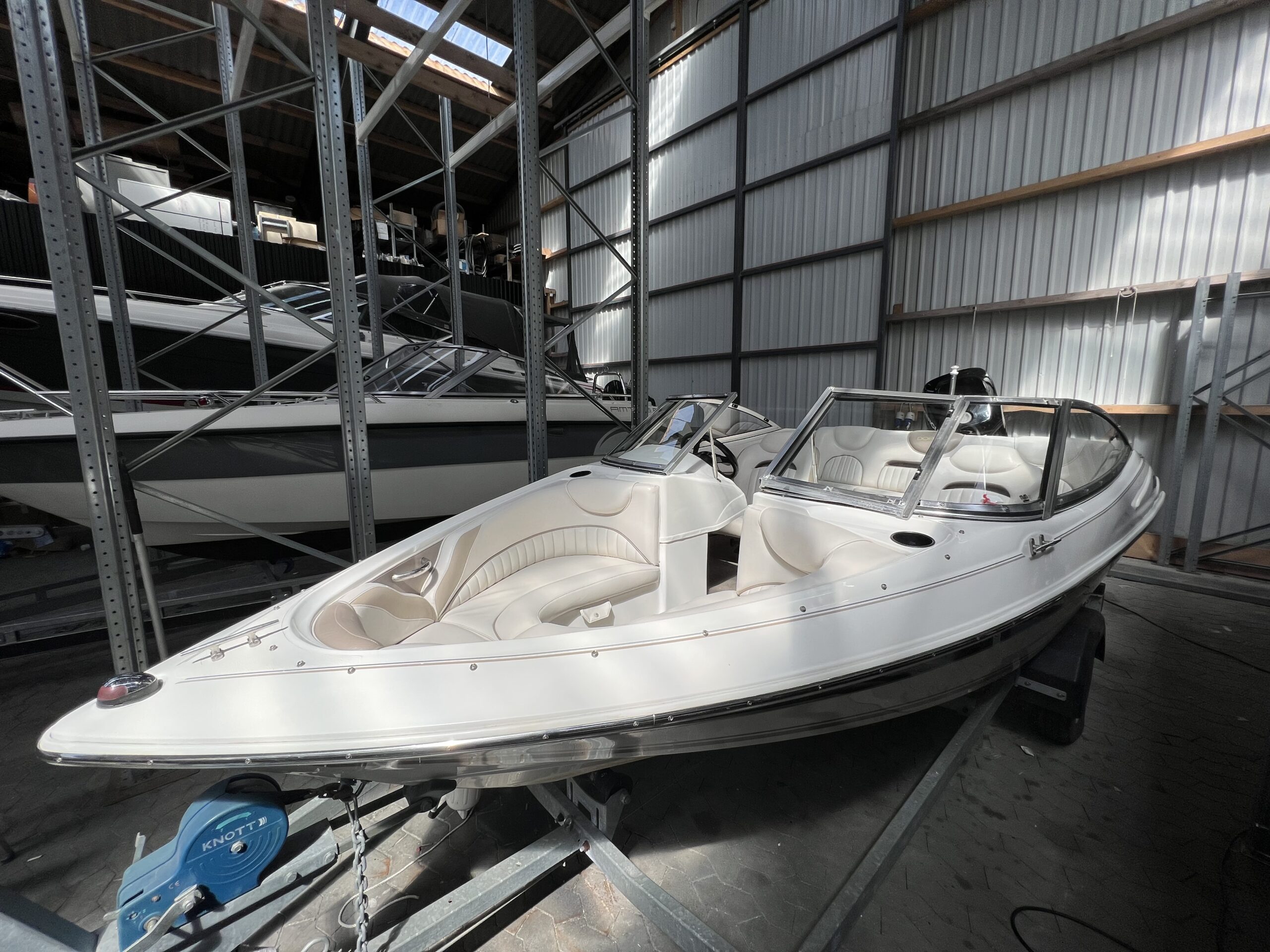 Bowrider fra Doral årg. 2004 – Fint sæt båd og trailer. Dejligt cockpit med to pilotstole og stor sofa, Gennemgang via vindspejl til yderlige fine siddepladser i front. Perfekt til vandski, tube eller familietur på vandet. Monteret med en 115 hk Mercury så du kan trække flere personer på baderingen uden problemer. Trailer medfølger