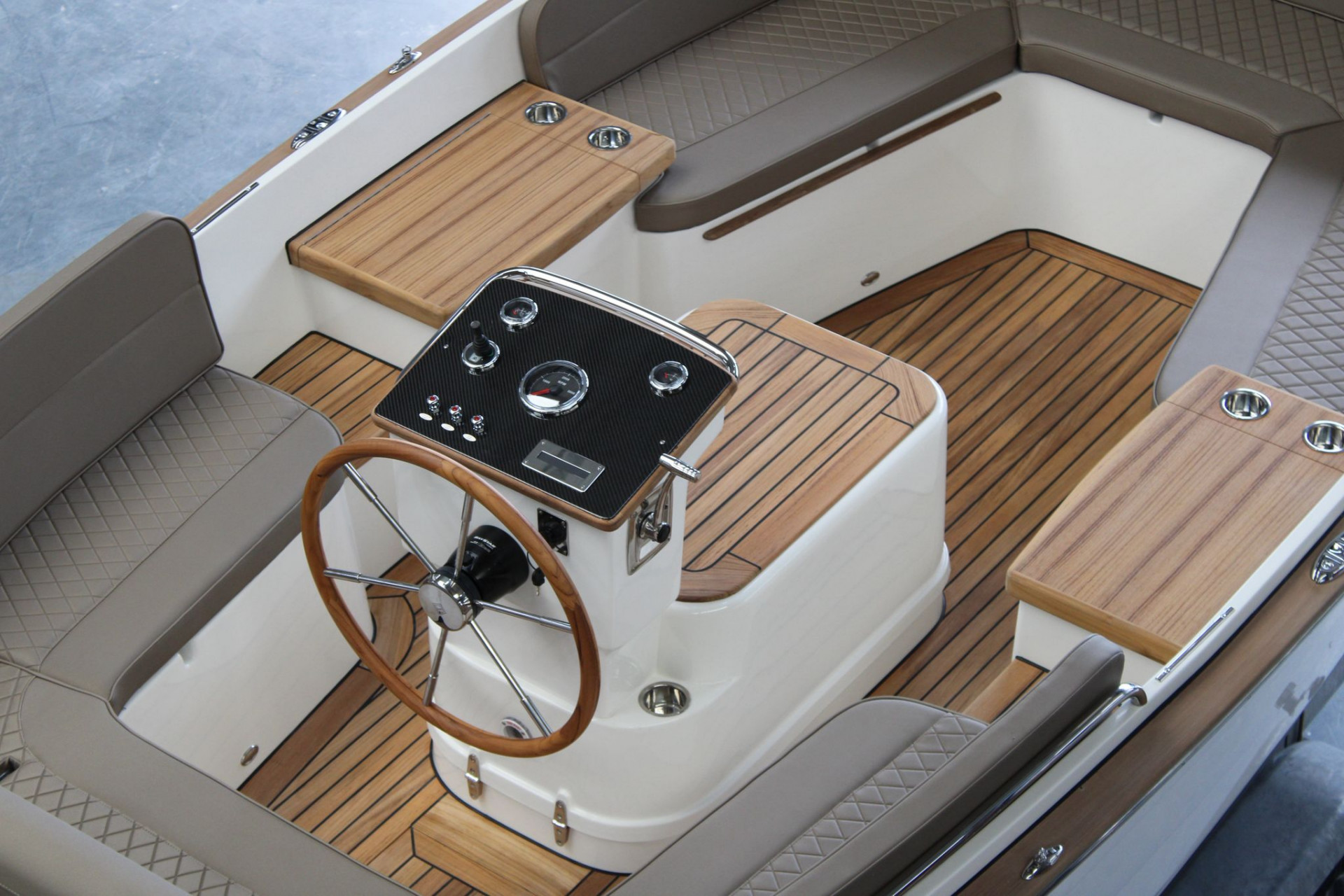 | Udstyr | Bovpropel, Sprayhood med fuldcover, Solhynder til udvidelse af sofa fronten, Cockpit lys ved dørk, Navigationslys, elektrisk lænse pumpe, Startbatteri inkl. Hovedeafbryder, Massivt teakdørk, Flexiteak på for og agterdæk, Køleskab / Topbetjent, Luksus Rat 60 cm, Rustfrit stål liste på rælingen, Dobbelt rustfri stål udstødning i badeplatform, vanlinje streg, Usb 12 v udtag, rustfri kopholder i motorkasse. |