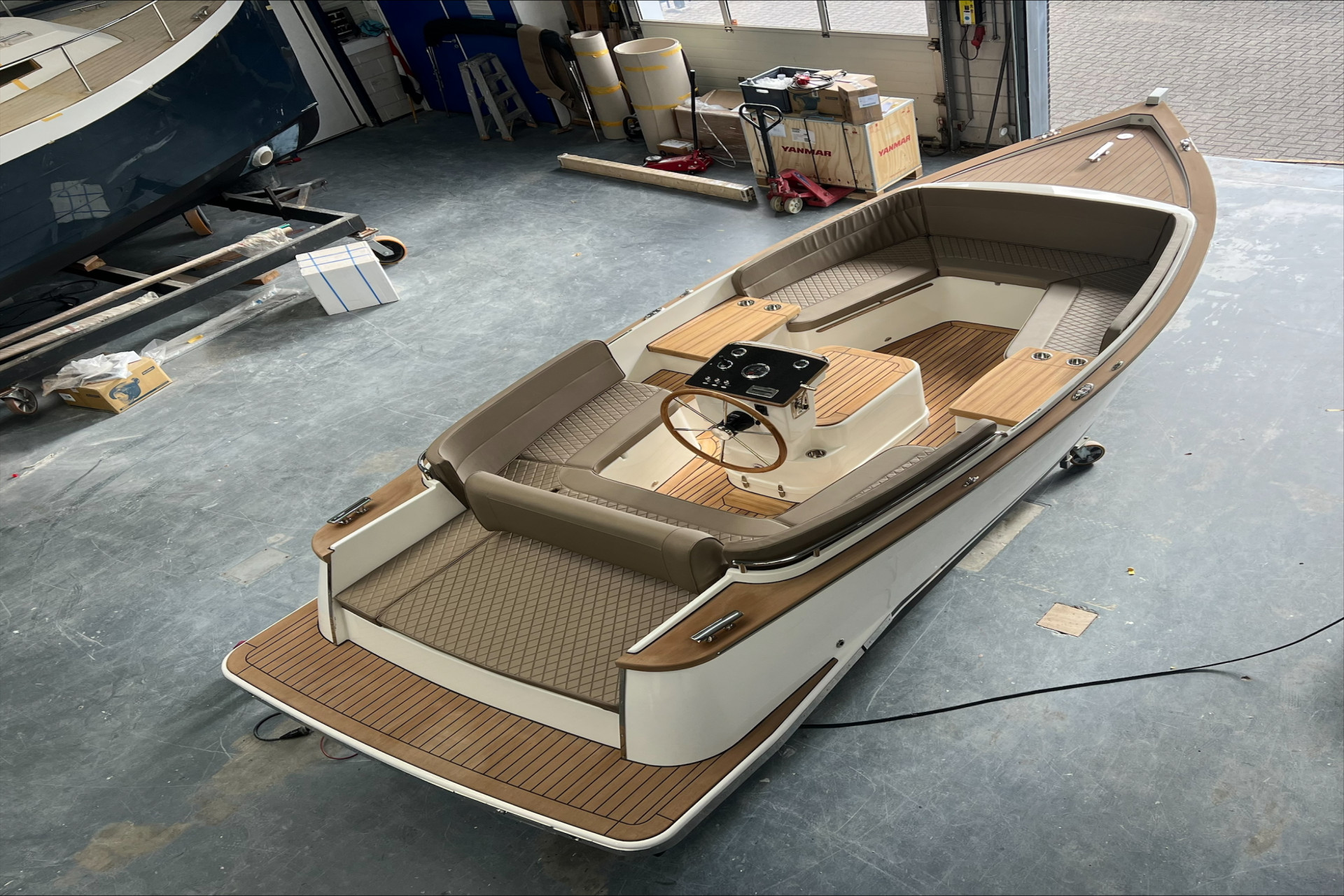 Denne båd fra 2026 er en båd værftet i Holland har stående i deres udstilling, Båden fremstår i super stand. Motor er en Vetus 42 hk diesel motor, som giver båden en god fart. Hynder er i diamant syet, beige farve. Der er ekstra hynder til fronten, så man kan udvide til solplads.