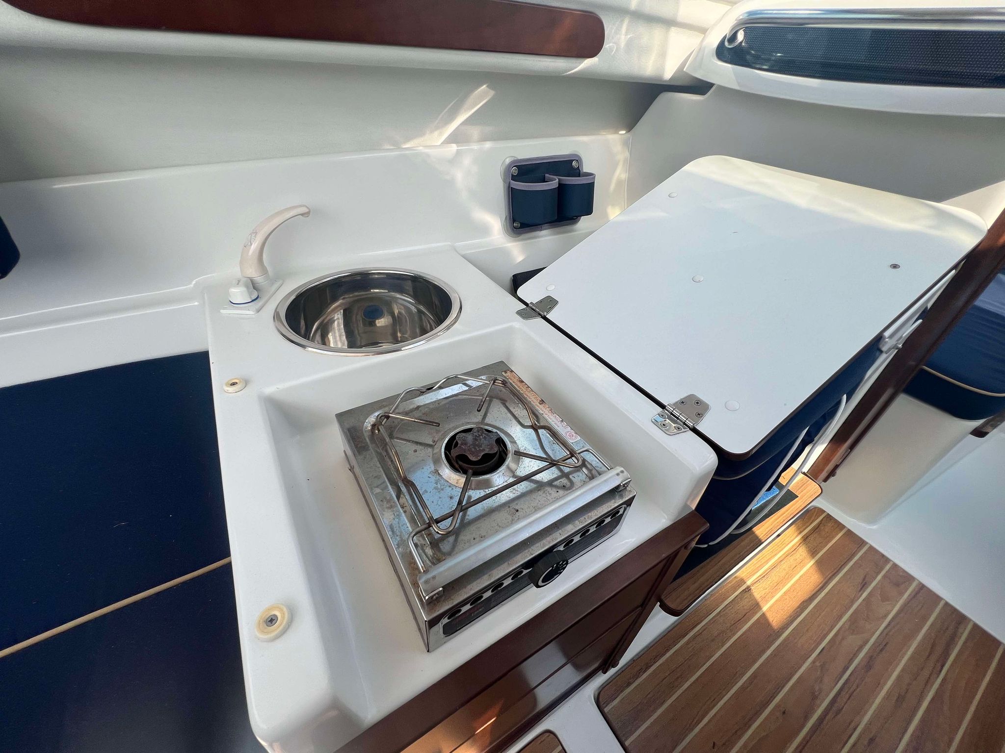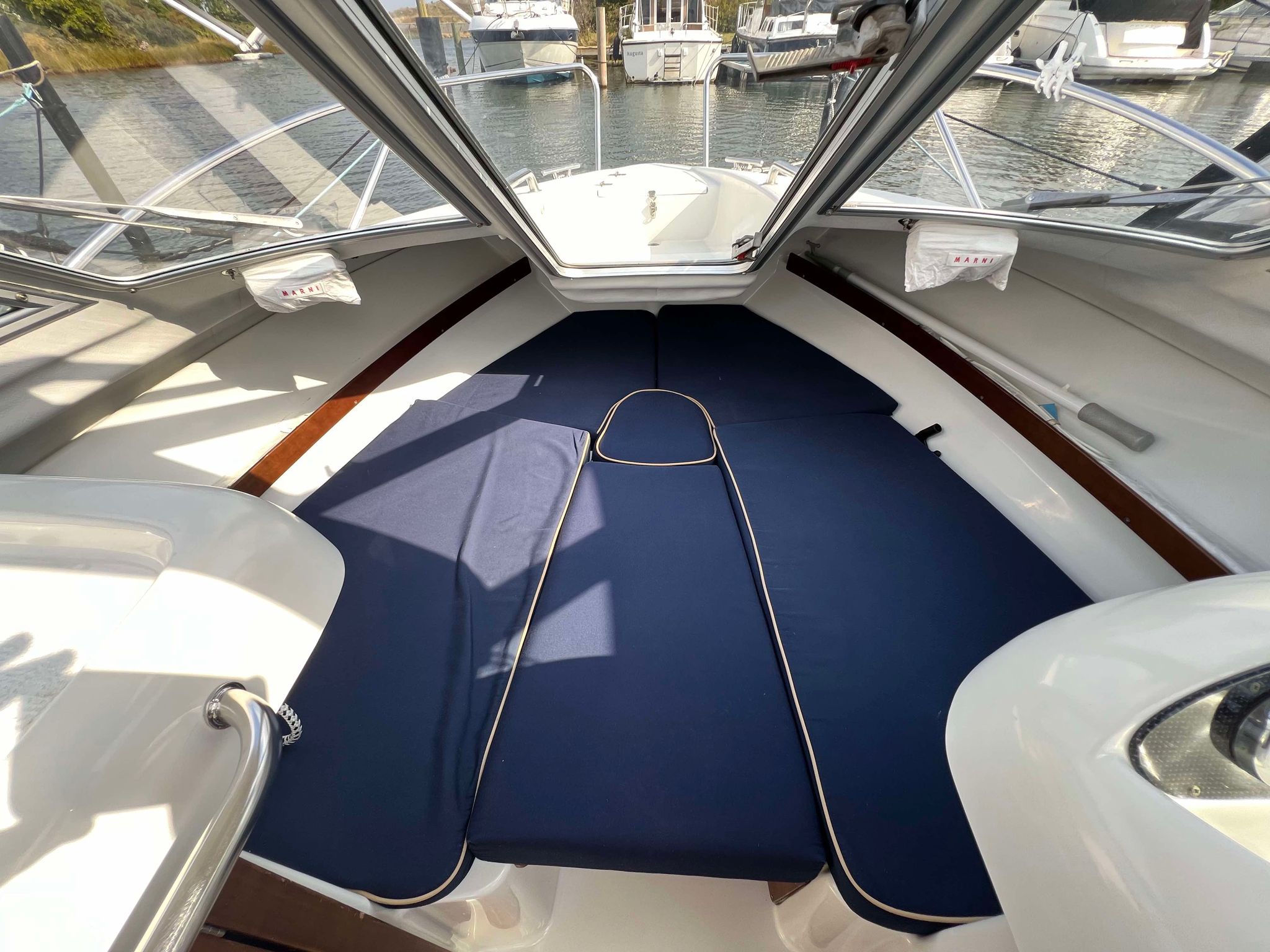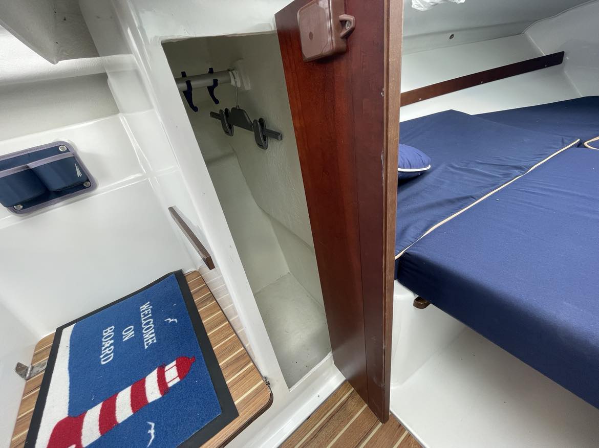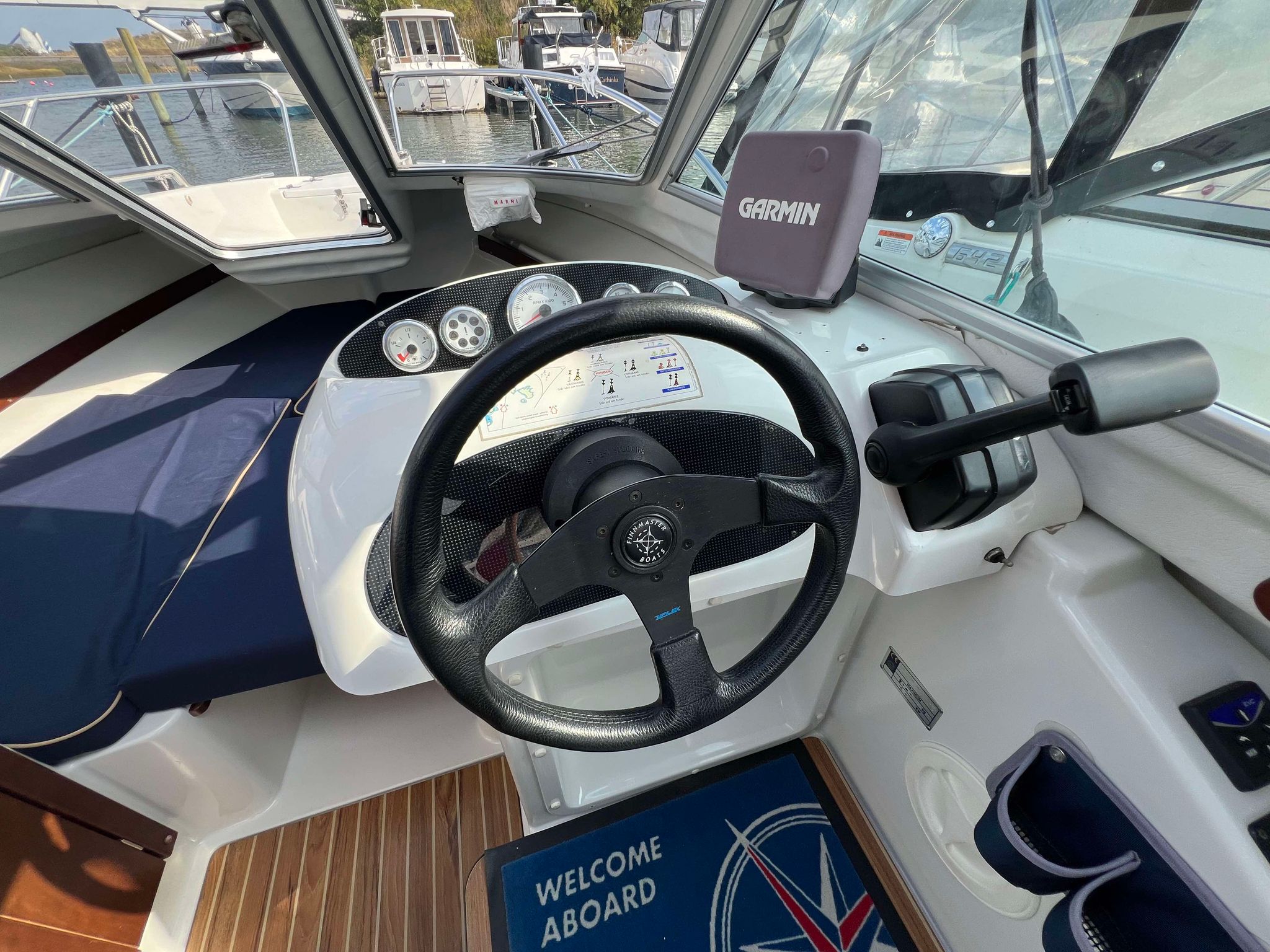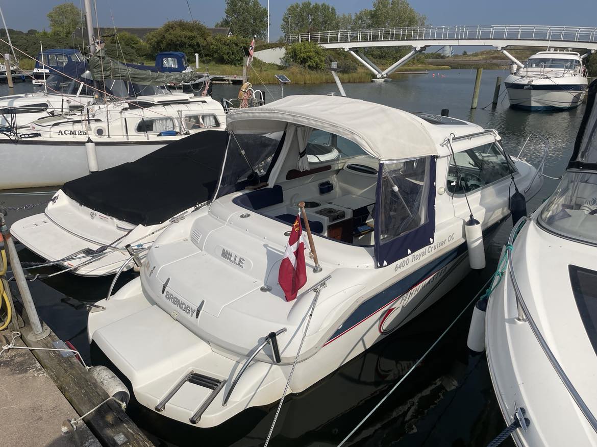 Velbygget familiebåd i bedste materialer fra Finske Finnmaster – søstærk og velsejlende med stærk dieselmaskine. Lækker kabinebåd til familietur og med mulighed for overnatning. Stort cockpit med U-sofa og med mulighed for stor solplads/overnatningsmulighed. Lille praktisk pantrysektion med kogeblus og vask med ferskvand. To pilotstole til hr og fru Finnmaster under det store tag – dejlig i læ så det ikke kommer vind og regn i håret. Mulighed for at åbne op via skydetaget så solen kan skinne ned i cockpittet. Fremme V-køje med plads for to voksne og praktisk lille “træk-ud” toiletløsning. Adgang via dørløsning til front hvor turen kan nydes, eller for at lette adgang til cockpit i havn – virkelig praktisk – og ikke noget med at balancerer usikkert på siden. Dejlig stor badeplatform med badestige. Stærk Volvo Penta D3 med 130 stærke dieselheste giver god fart og ligeledes fin økonomi.
