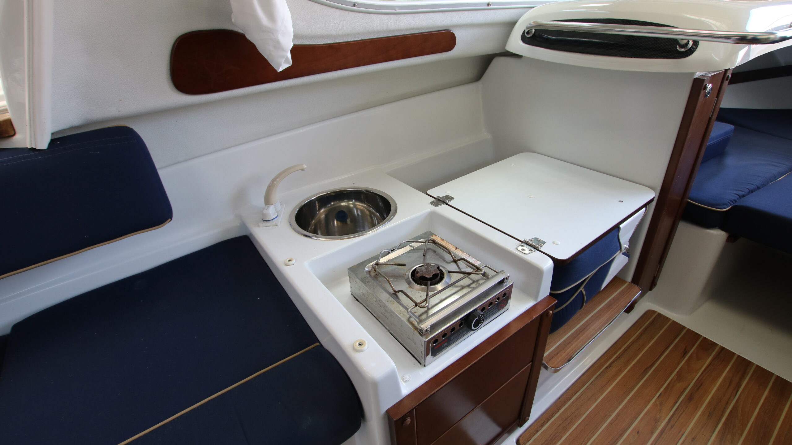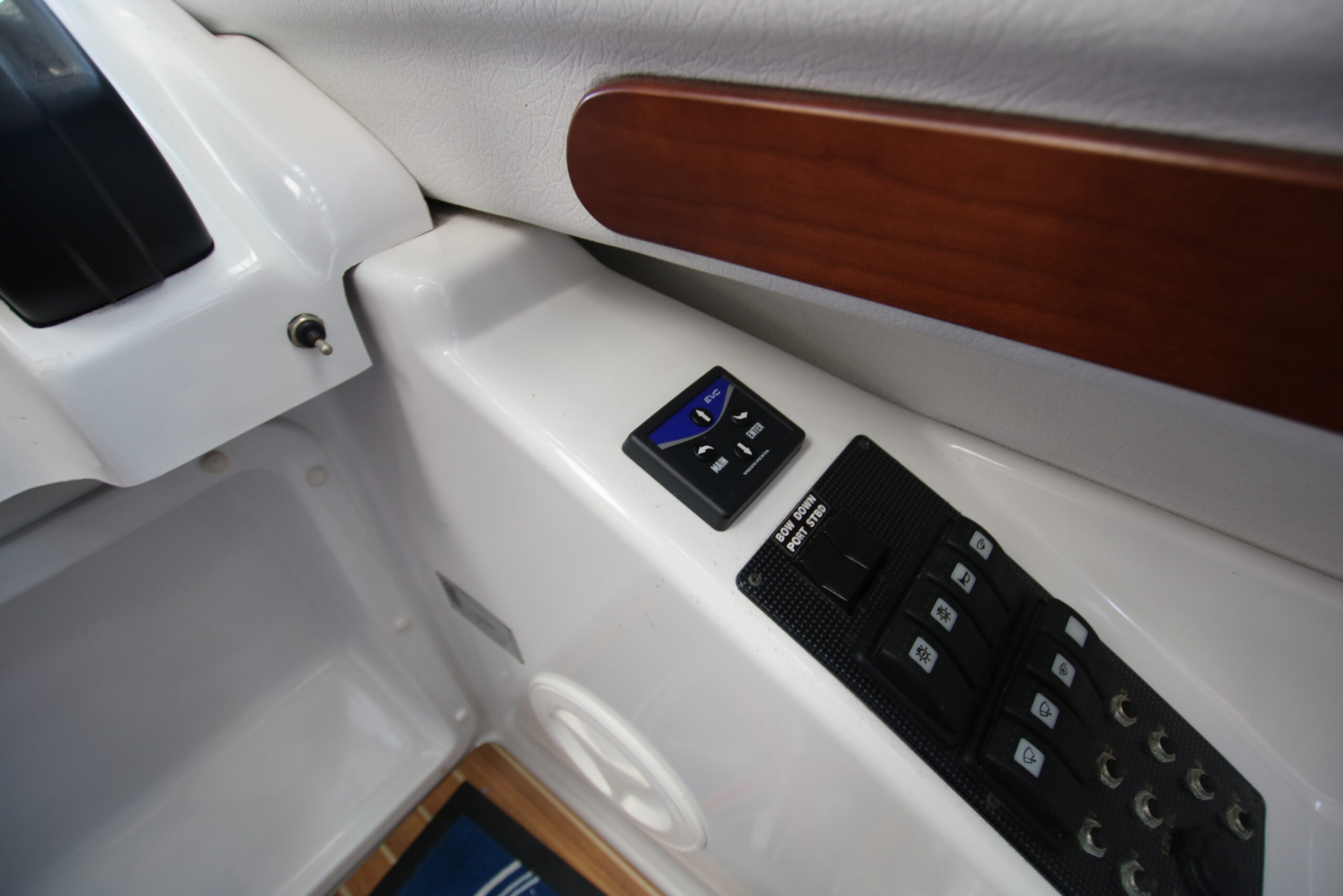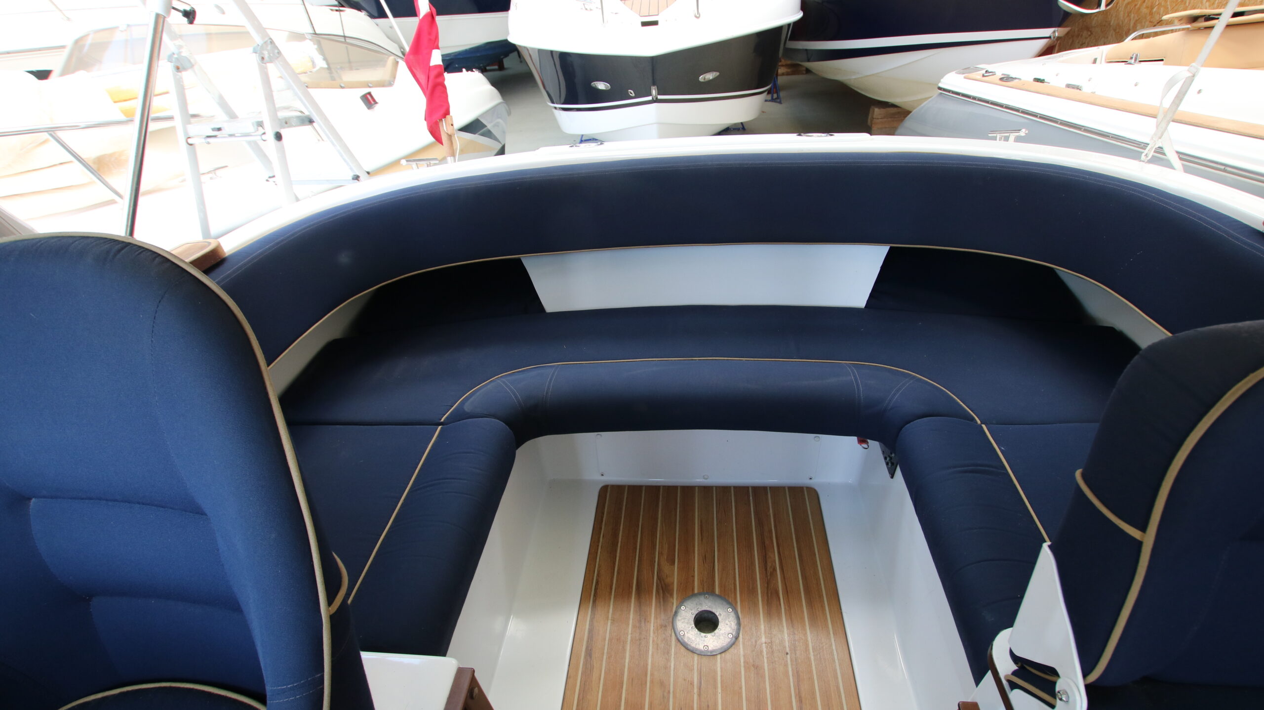 Velbygget familiebåd i bedste materialer fra Finske Finnmaster – søstærk og velsejlende med stærk dieselmaskine. Lækker kabinebåd til familietur og med mulighed for overnatning. Stort cockpit med U-sofa og med mulighed for stor solplads/overnatningsmulighed. Lille praktisk pantrysektion med kogeblus og vask med ferskvand. To pilotstole til hr og fru Finnmaster under det store tag – dejlig i læ så det ikke kommer vind og regn i håret. Mulighed for at åbne op via skydetaget så solen kan skinne ned i cockpittet. Fremme V-køje med plads for to voksne og praktisk lille “træk-ud” toiletløsning. Adgang via dørløsning til front hvor turen kan nydes eller for at lette adgang til cockpit i havn – virkelig praktisk – og ikke nogen med at balancerer usikkert på siden. Dejlig stor badeplatform med badestige. Stærk Volvo Penta D3 med 130 stærke dieselheste giver god fart og ligeledes fin økonomi.