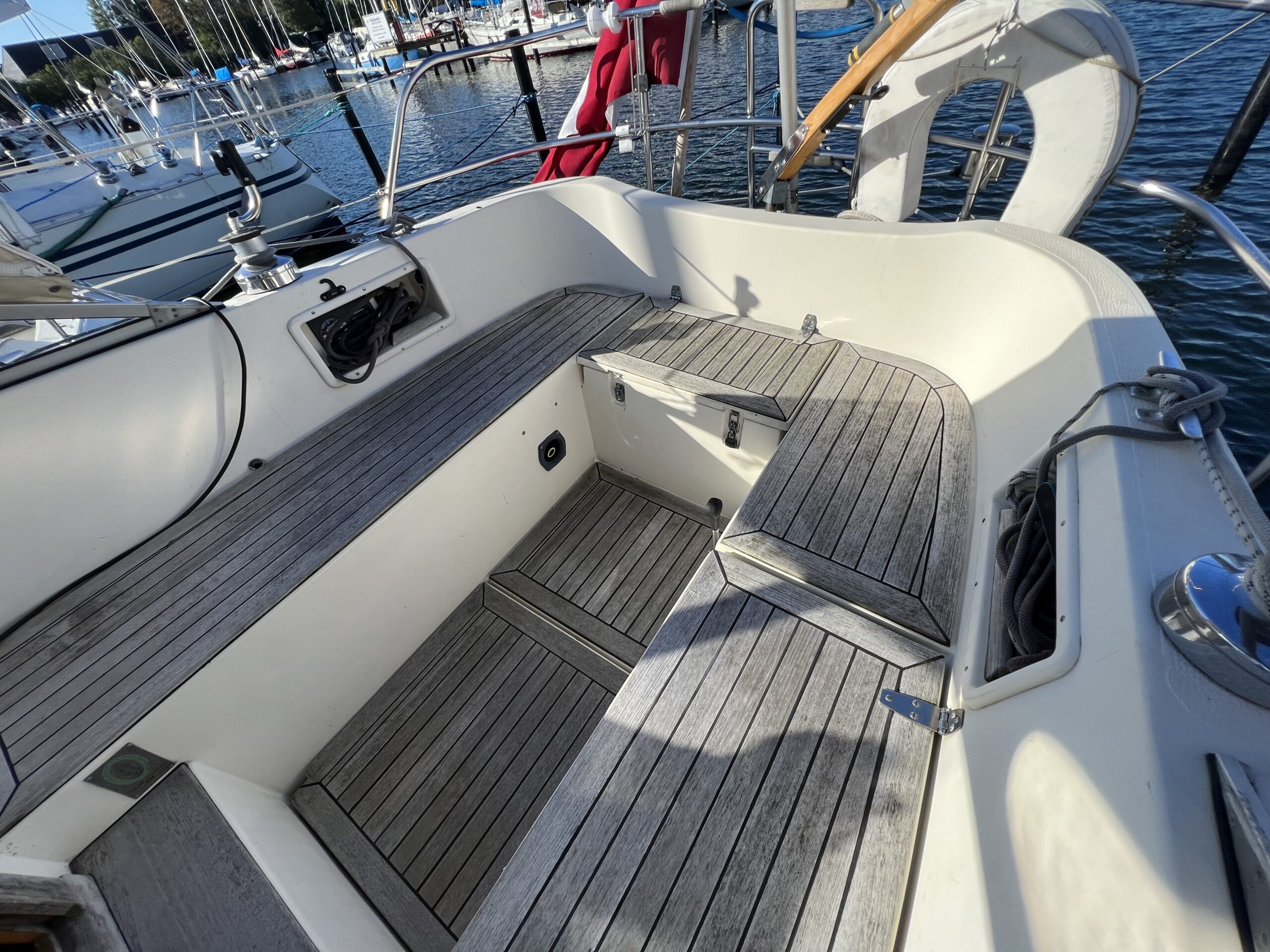 Skøn velsejlende svensk klassiker i den populære mk2 version. En virkelig velbygget kvalitetsbåd hvor der igennem tider er opdateret og passet godt på tingene. Stort cockpit med rorpind og gode langsgående komfortable siddebænke.