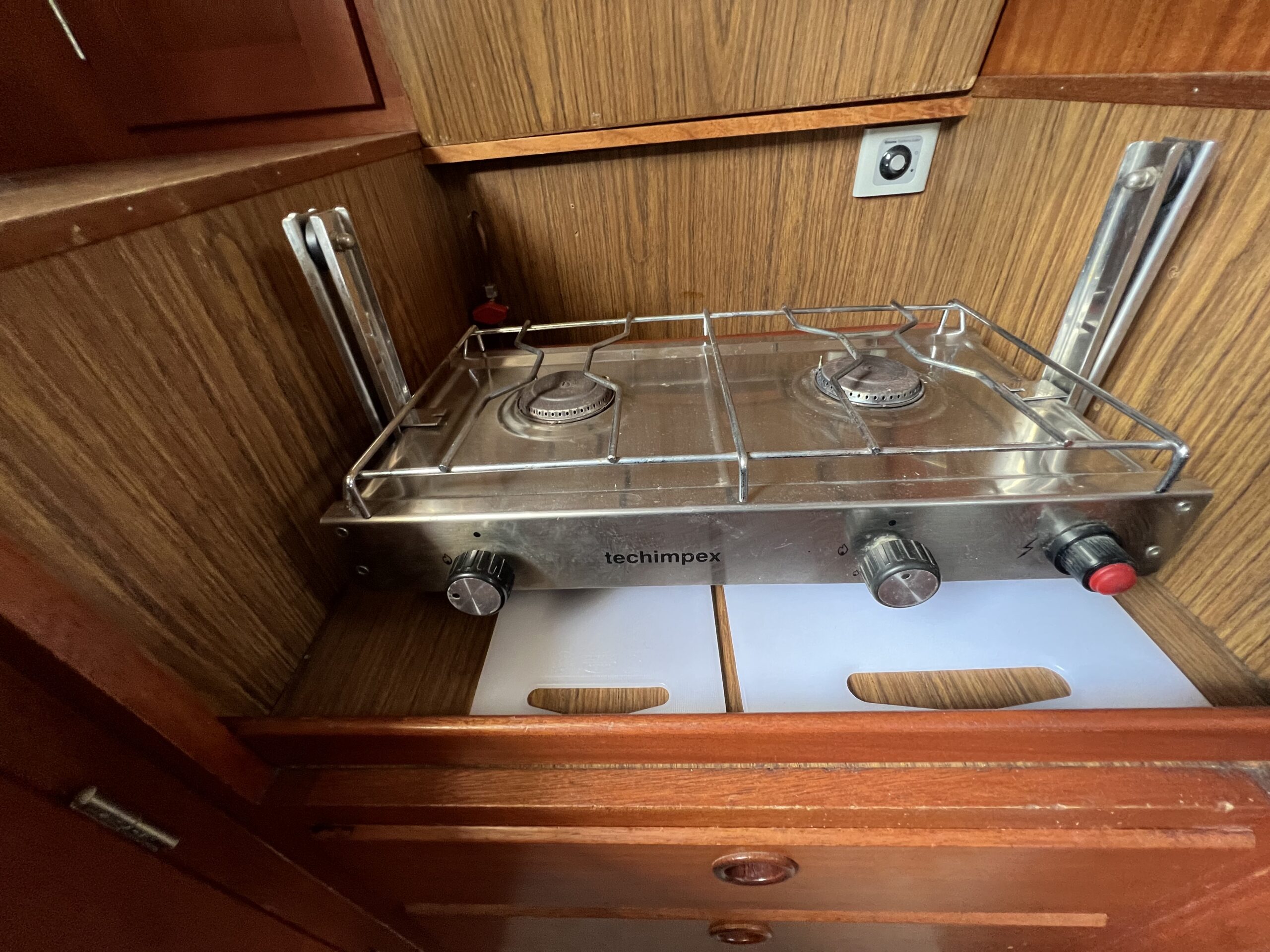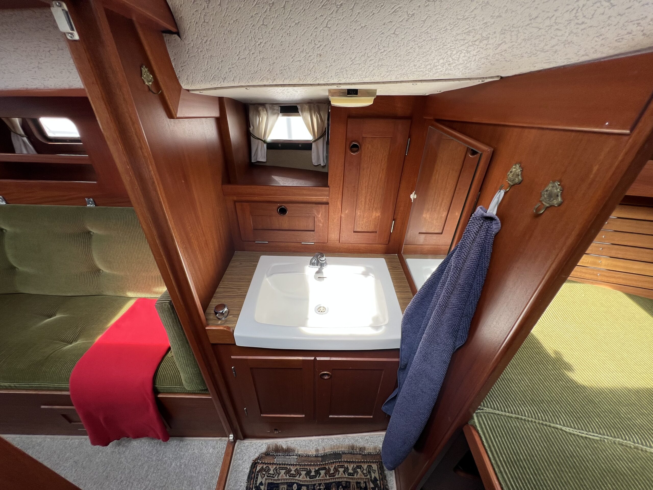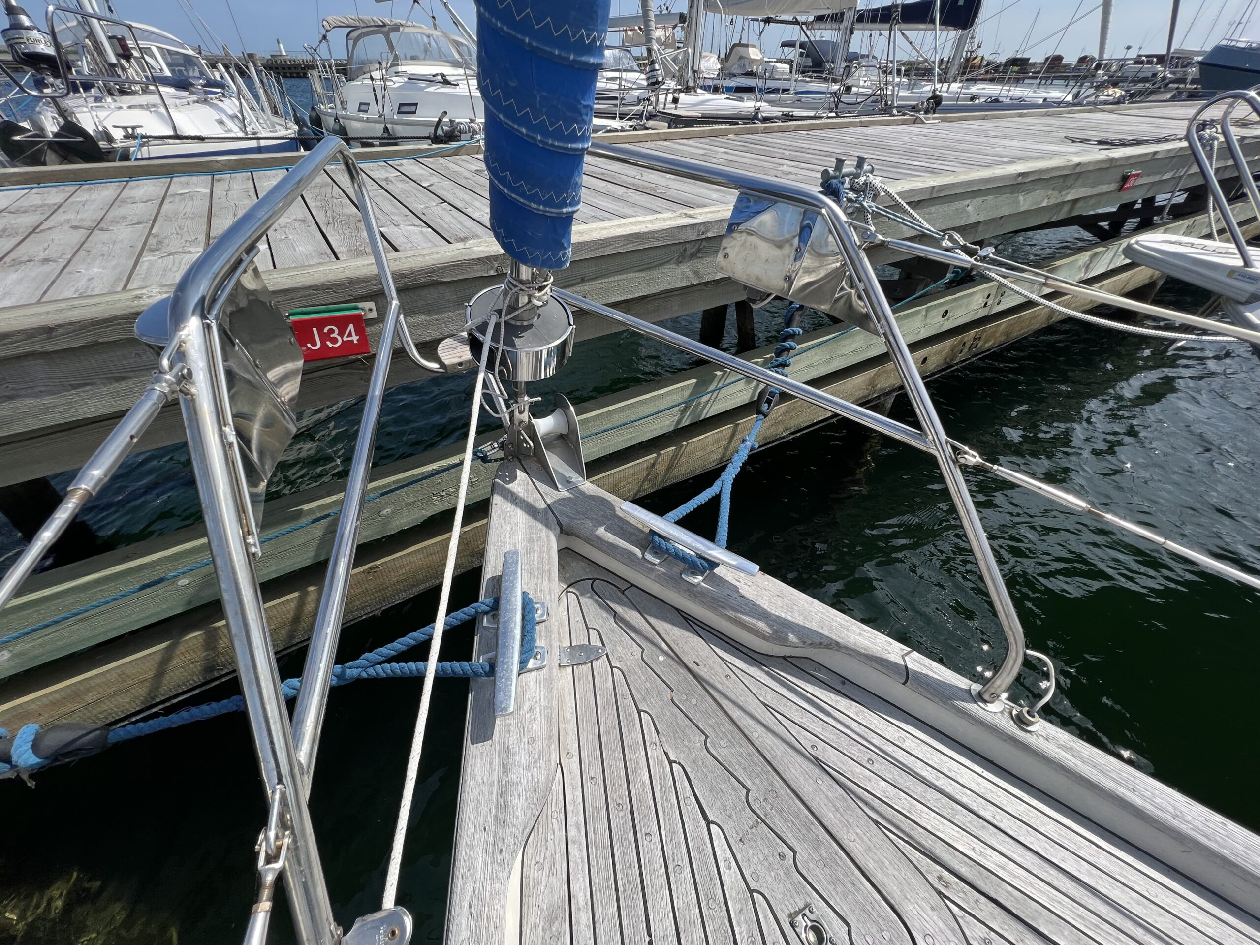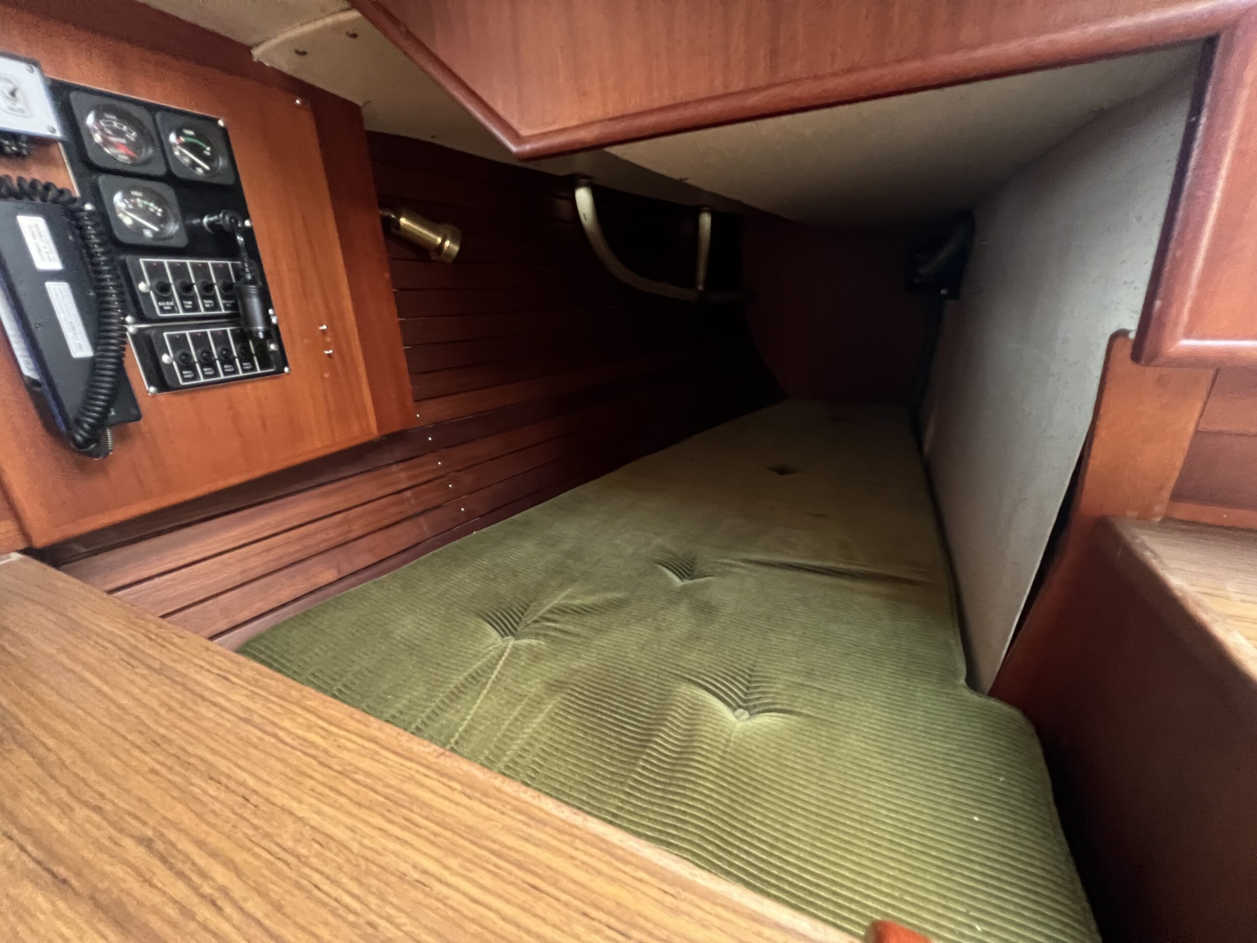 Enkelt agter køje i SB side sammen med kort bord. Sofaarrangement med to langsgående sofaer som kan omgøres til to voksenkøjer. Fremme toiletrum med vaskmodul, Forkøje med dobbelt soveplads. En virkelig velfungerende sejlbåd med flot aptering og nyere Volvo penta D2-40F Motor og sejldrev. Bemærk Ratstyring, Wallas varmeanlæg og fuld teak dæk – hvad kan man ønske sig mere ?’ Båden kan ses i Skovshoved. besigtigelse aftales med Dansk Sejl og Motor 77 340 828