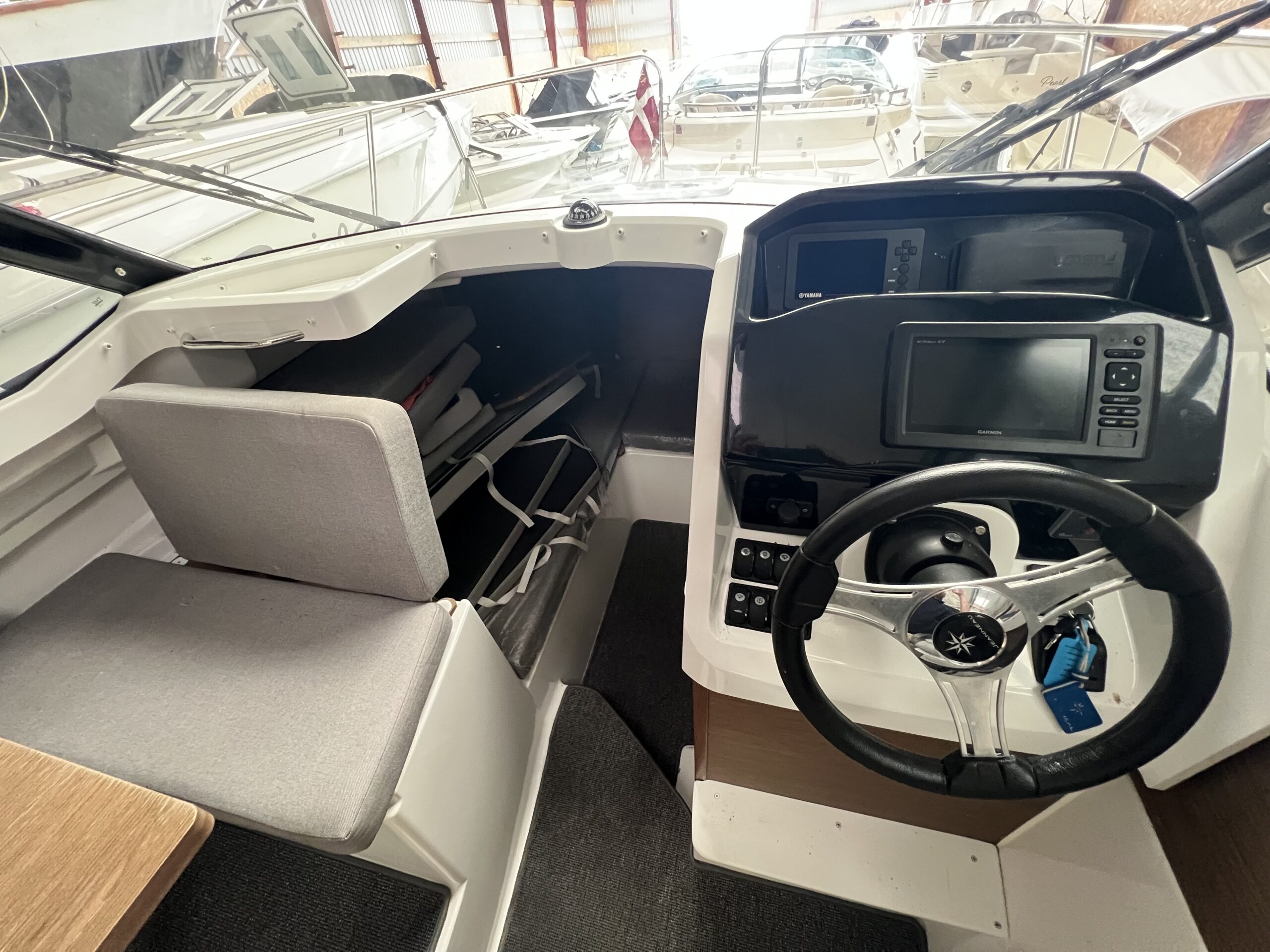 jeanneau’s Merry Fisher serie er en alsidig familiebåd som tilbyder komfort kombineret med vægt på familie og sikre og gode sejlegenskaber. Her er rummelighed, velfungerende løsninger hånd i hånd med kvalitet og godt håndværk. Med en Merry Fisher matcher du hele familiens behov – samvær, fiskeri, vandsjov tursejlads weekendture etc. Her har du alle kort på hånden og med en Yamaha 150 HK trumfer du de øvrige kabinebåde i markedet. Du finder fine løsninger og indretning med god albuerum – bl.a. aflukket toiletrum. 695 byder på rigtig komfortabelt sove plads til 4 personer Et fantastisk køb lige til at overtage. . BEMÆRK KUN 56 MOTORTIMER. Mange af hynder til kahytten er stadig pakket ind i original indpakning.