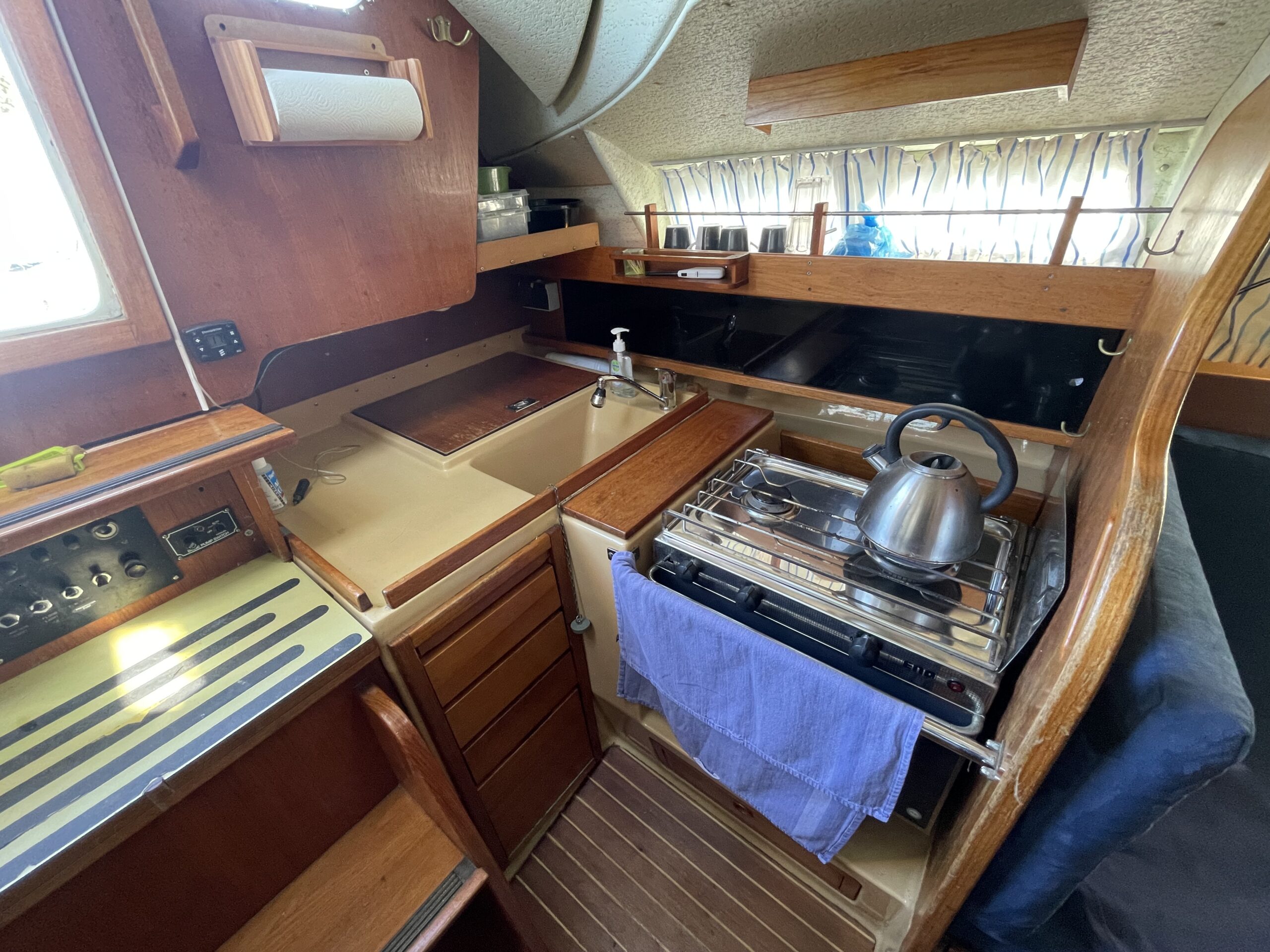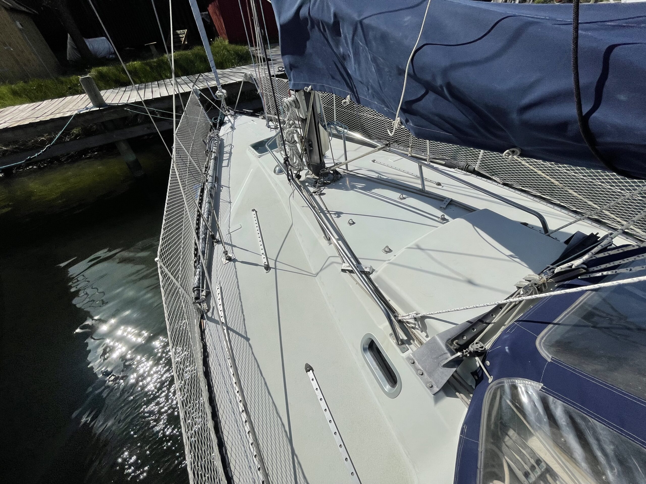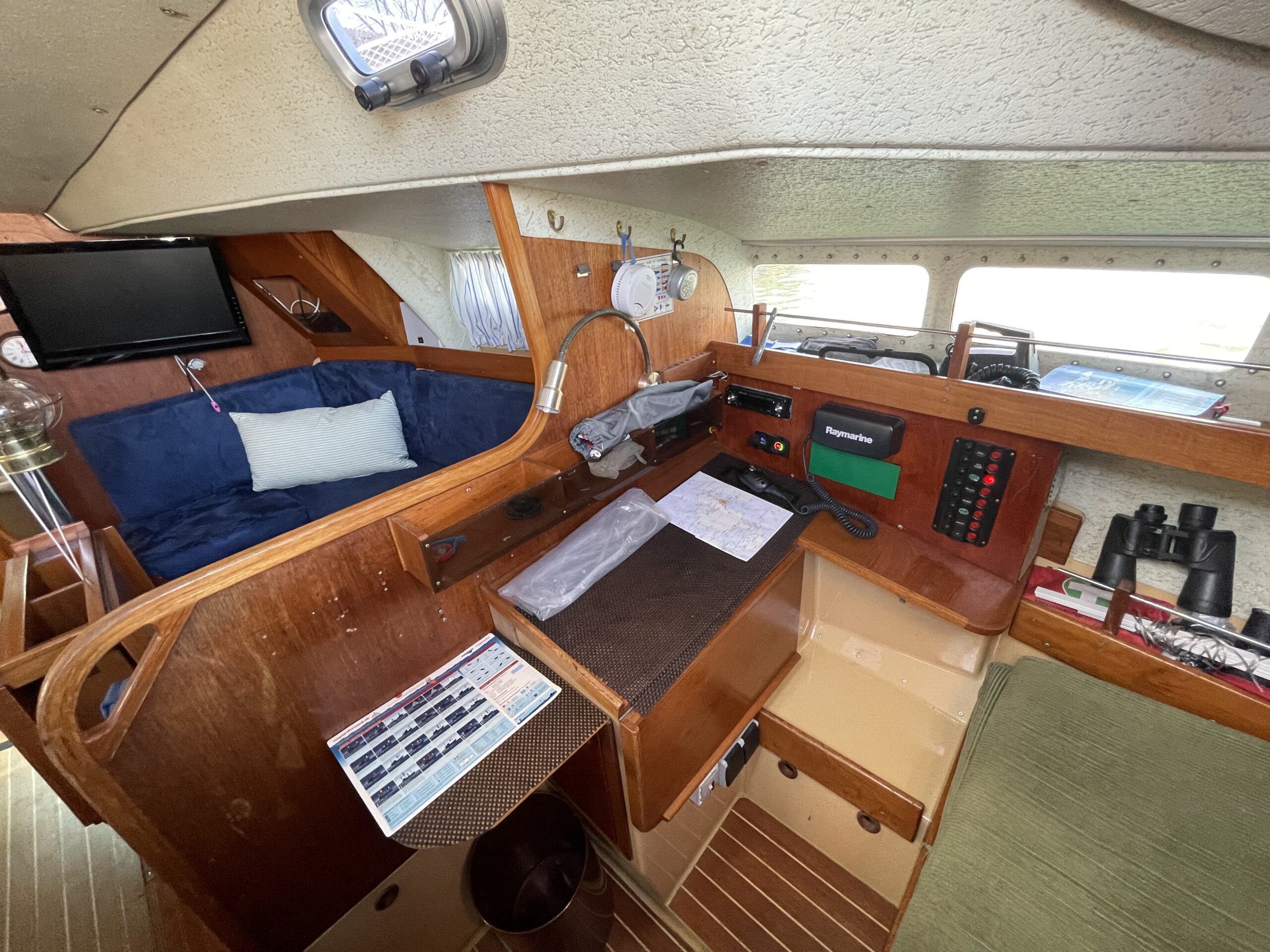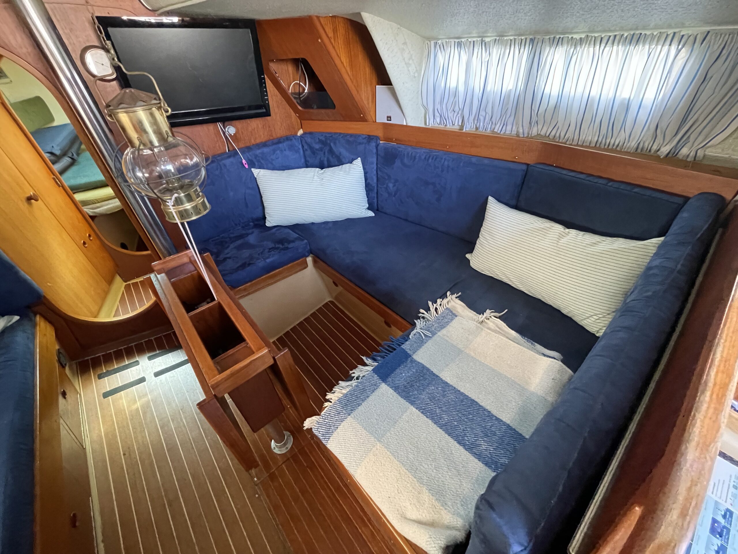 Familievenlig og velsejlende sejlskib med masser af plads og comfort. Denne Kings Cruiser er fra 1975 , en helt igennem en regulær og velfungerende båd for familien som ikke er klar til at bruge halve eller hele millioner på 33 fod. Stort cockpit med Sprayhood og kaleche sikre god udnyttelse også på de regnfulde dage. Nedgang til hyggelig og rummelig kahyt med fin pantryløsning og modsat kortbord. lille Agter køje. Stor sofagruppe med bordløsning som kan benyttes som to ekstra køjepladser og fremme yderligere kahyt med dobbeltkøje og skabsløsning. Toiletrum med vaskemodul. Båden er løbende opdateret med div udstyr og er velfungerende – En god pris for rigtig meget båd.