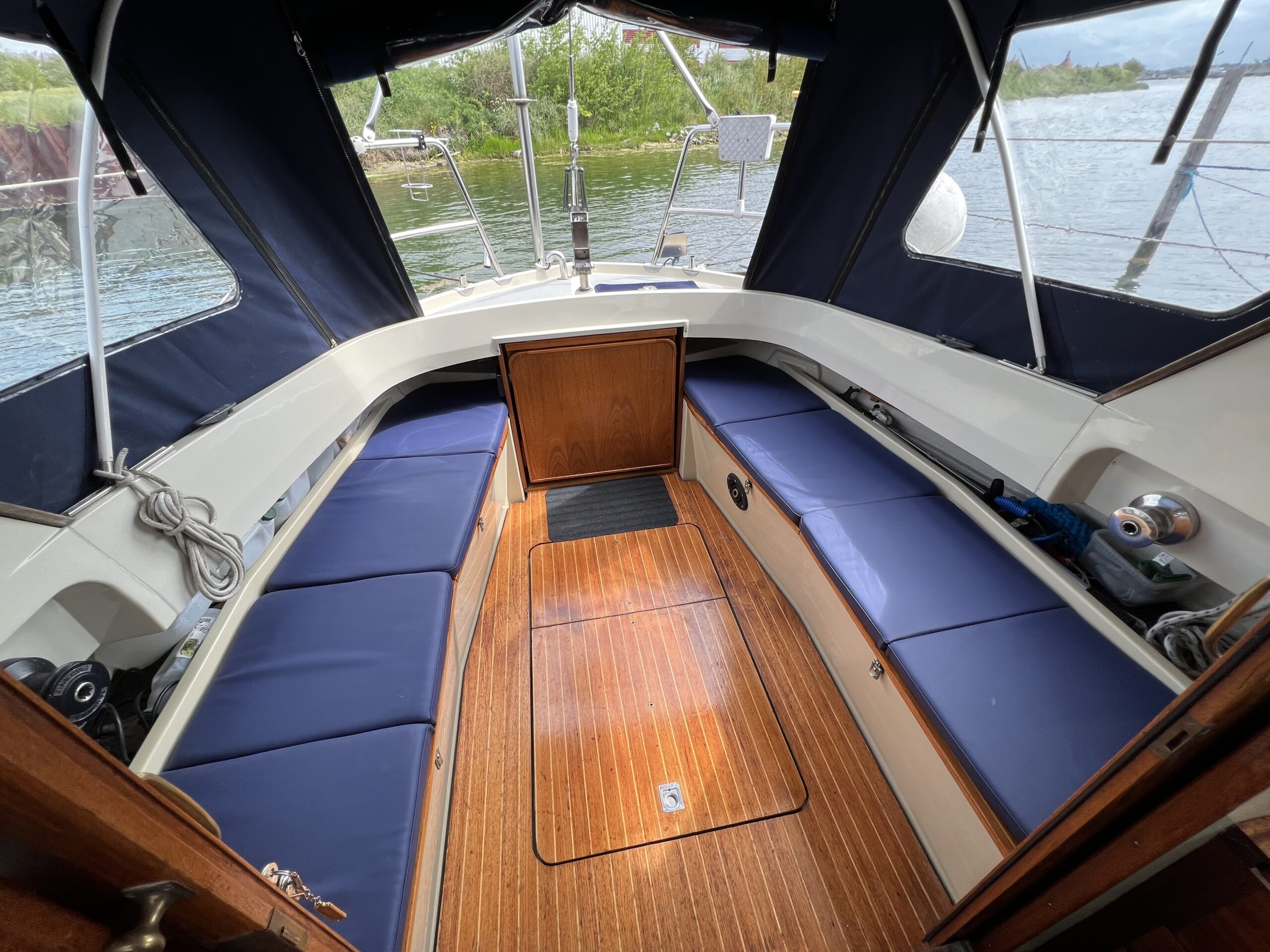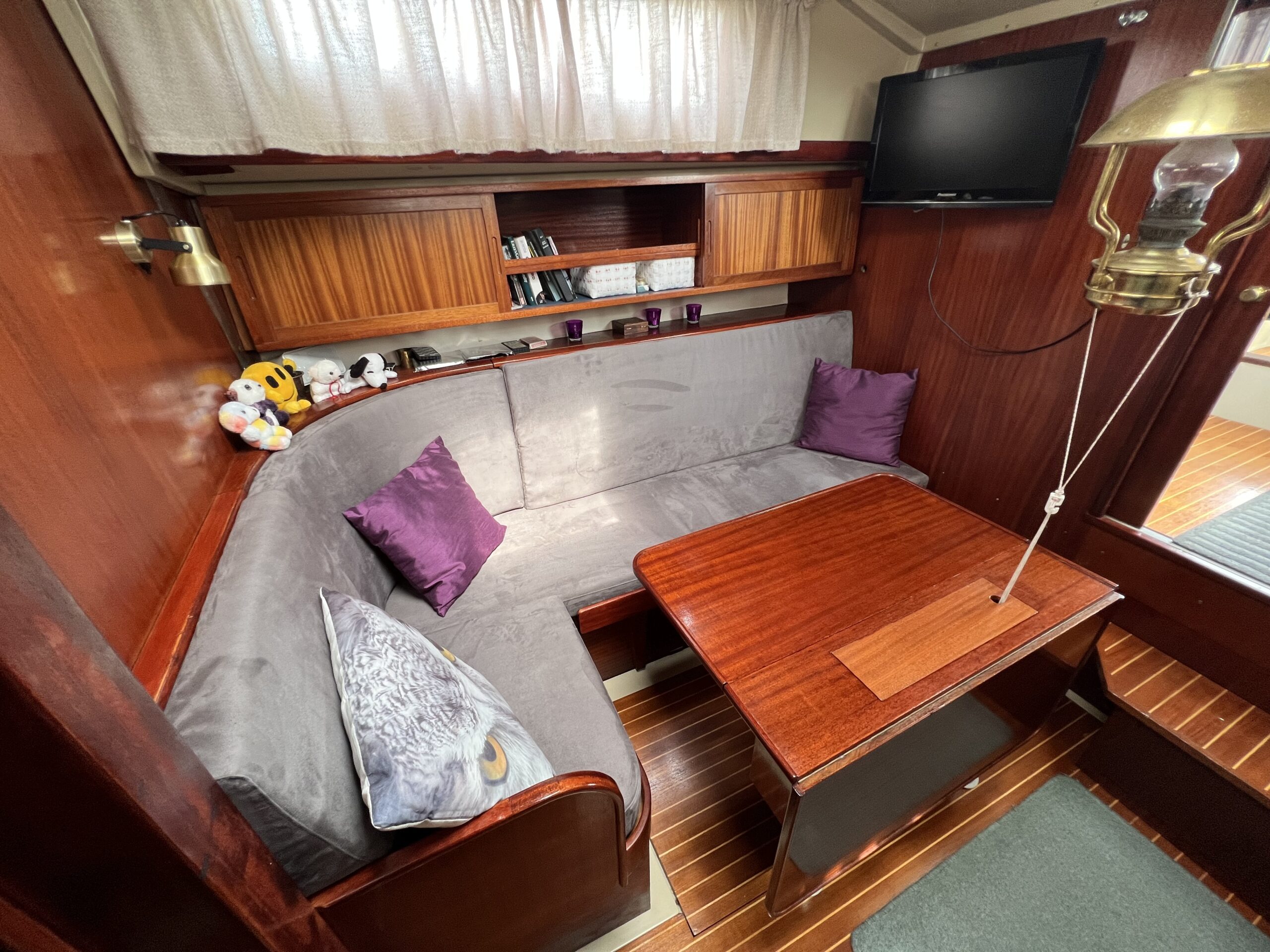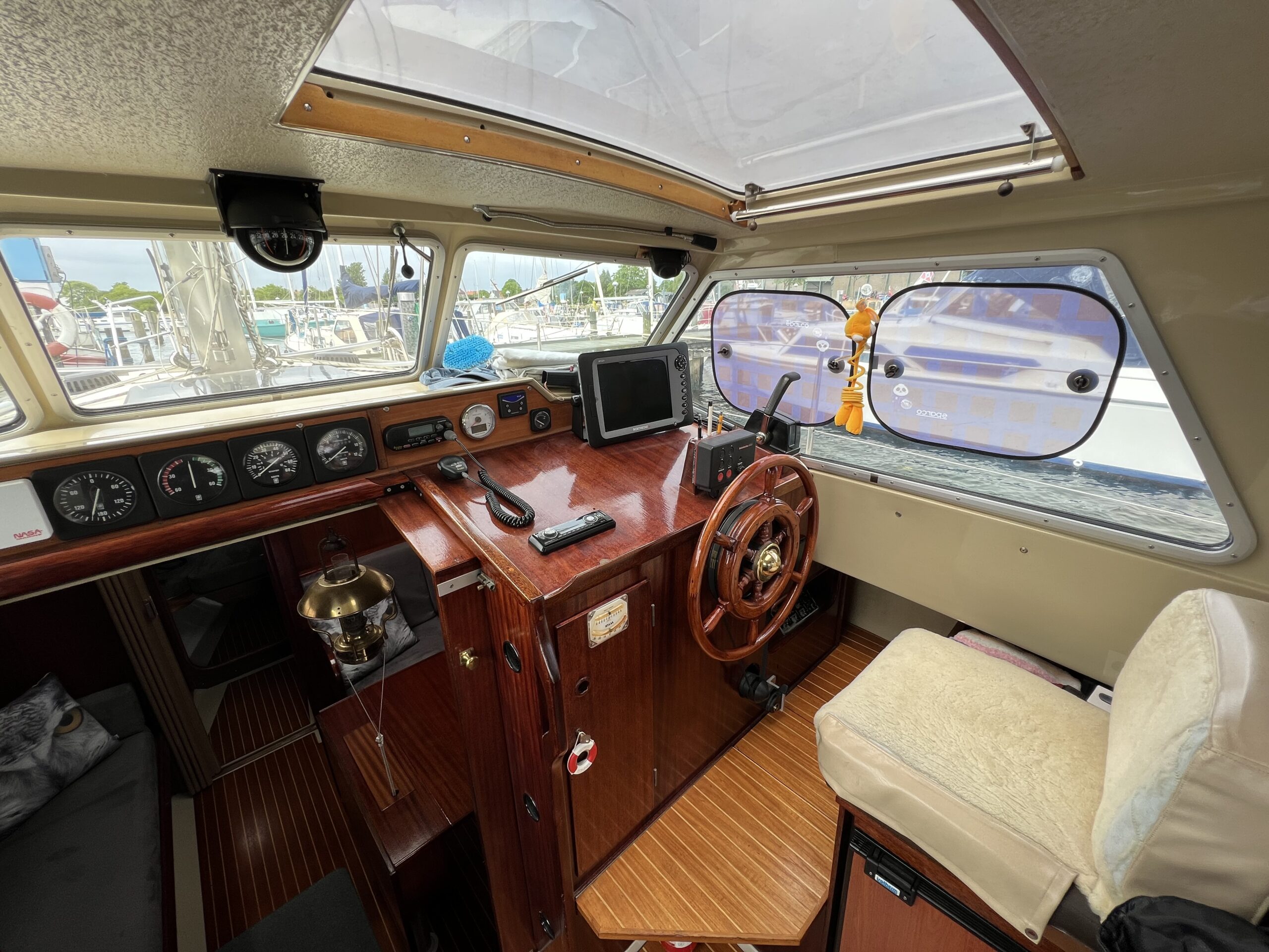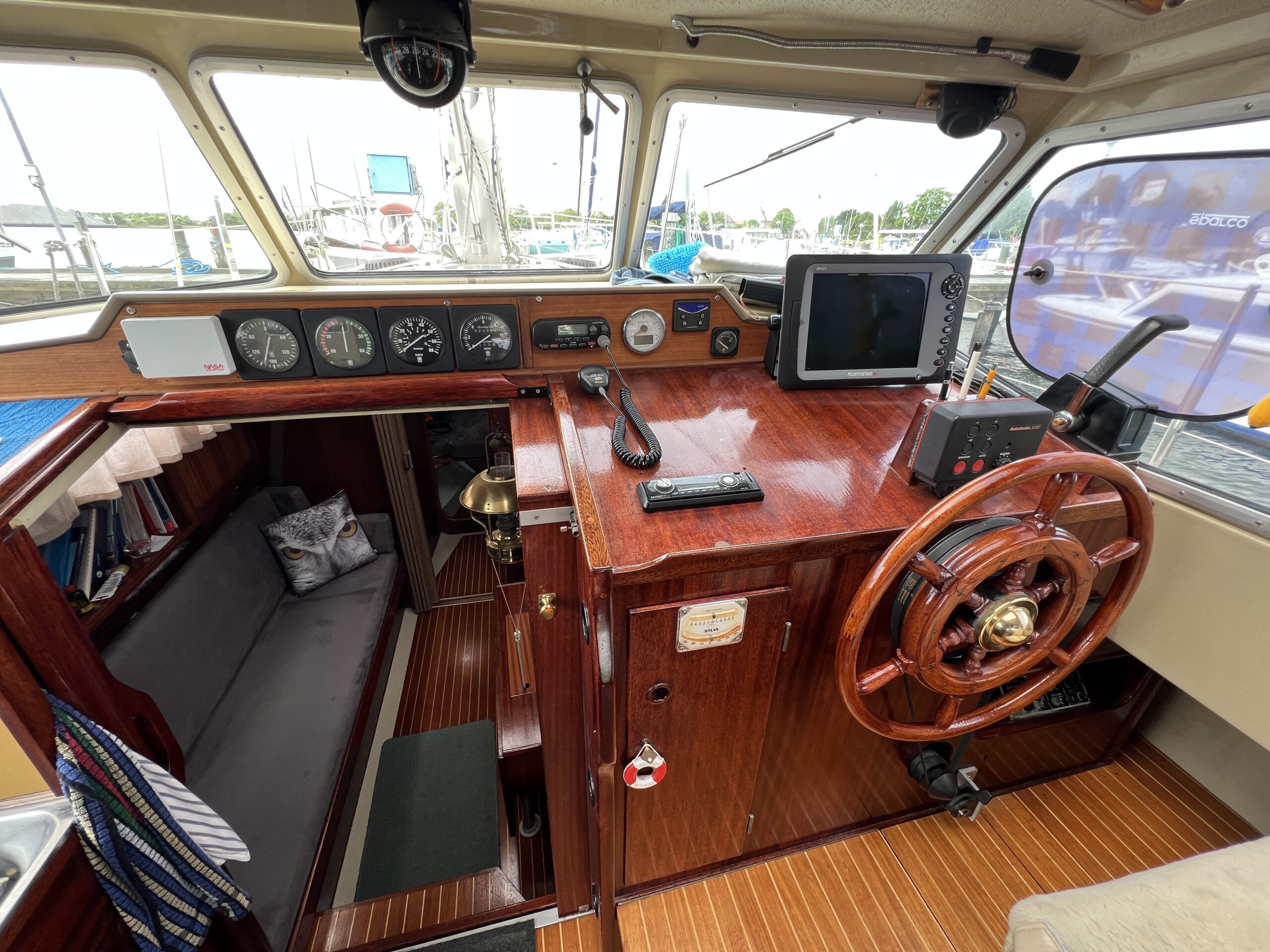Skøn danskbygget klassiker – populær og familievenlig motorsejler som også kan sejle fra LM. Dejligt stort cockpit med bænke og bordløsning. Klassisk LM pantrysektion med køleskab, vask og gaskomfur. Skøn førerplads under hardtop med stor skydeluge hvis der skal vind og sol I håret. Via skydedørsløsning nedgang til dejlig hyggelig og meget velholdt salon med langsgående sofaer og bordløsning. Begge sofaer kan med et snuptag omgøres til to virkelig fine sovepladser den ene som dobbeltkøje. Fremme er forkahyt Her findes yderligere to voksenkøjer. Toiletrum med vaskemodul. Båden er udstyret med en Volvo D2 /40 Hk fra 2009 med rigeligt kraftoverskud til denne størrelse båd. Masten Kan ligges ned så der mulighed for kanalsejlads, Hele båden er løbende “Passet godt på” og der er rigtig mange fine fornyelser der gør denne LM32 til noget helt særligt og interessant hvis du er i markedet efter en klassisk motorsejler.
