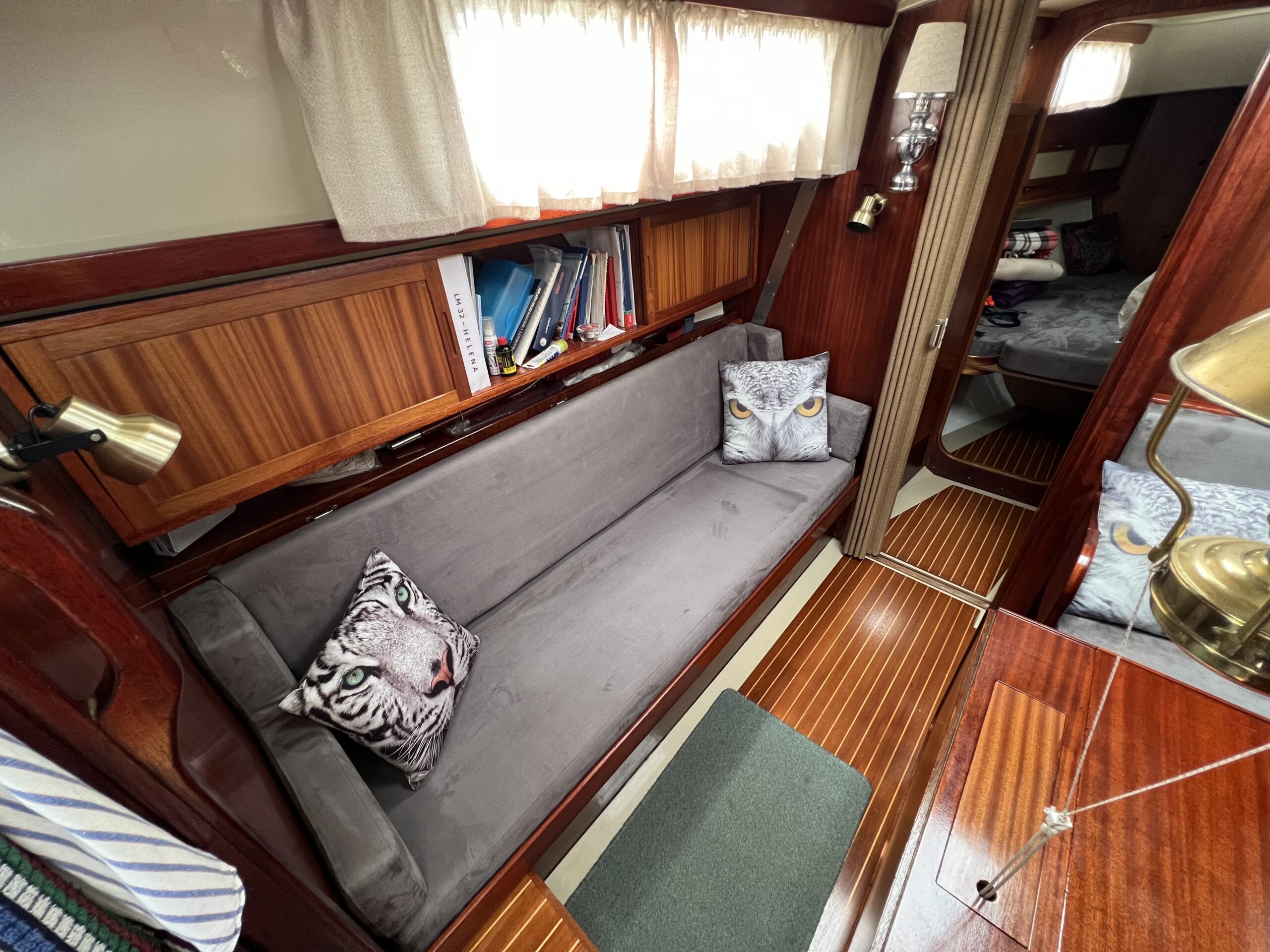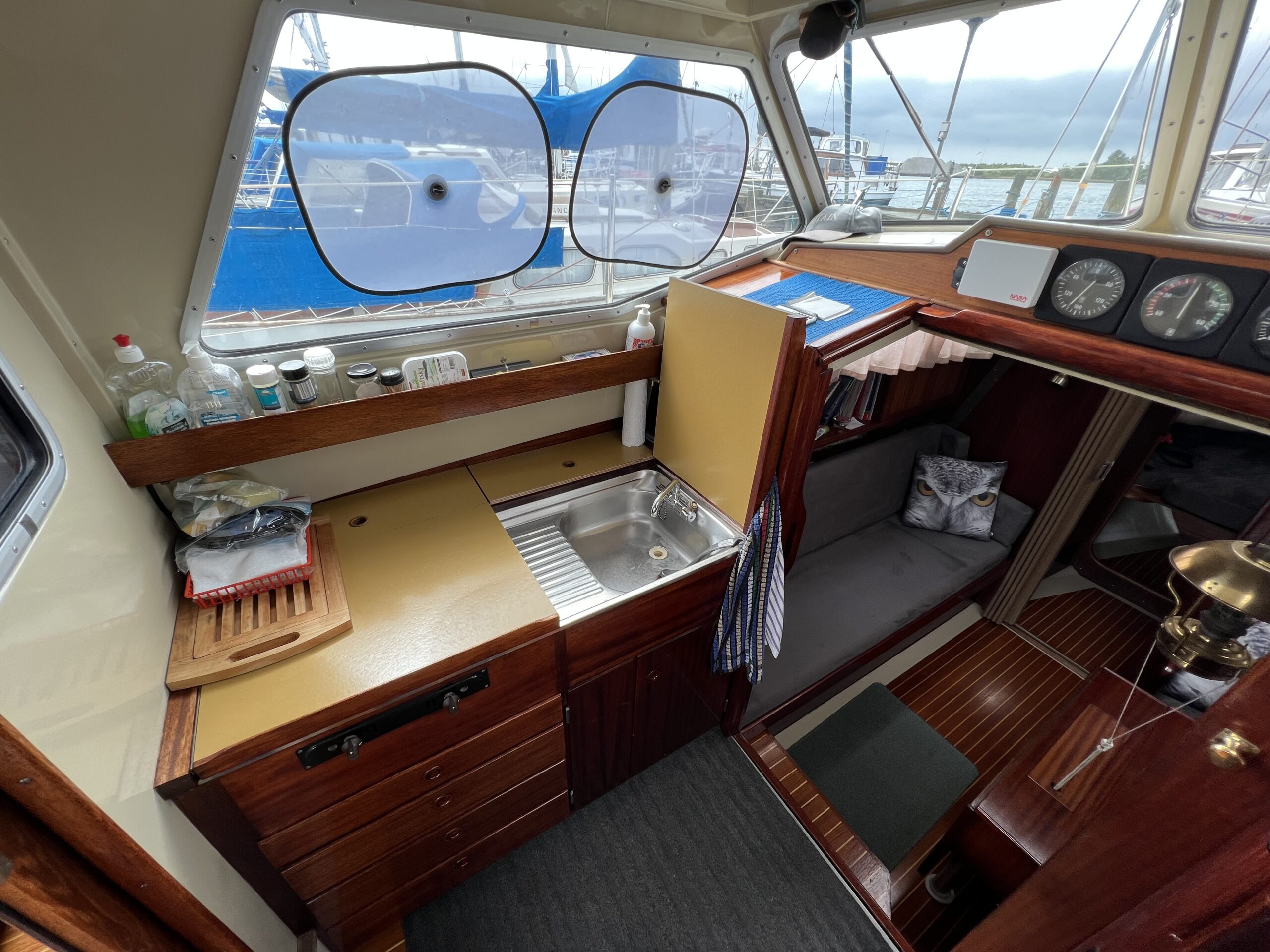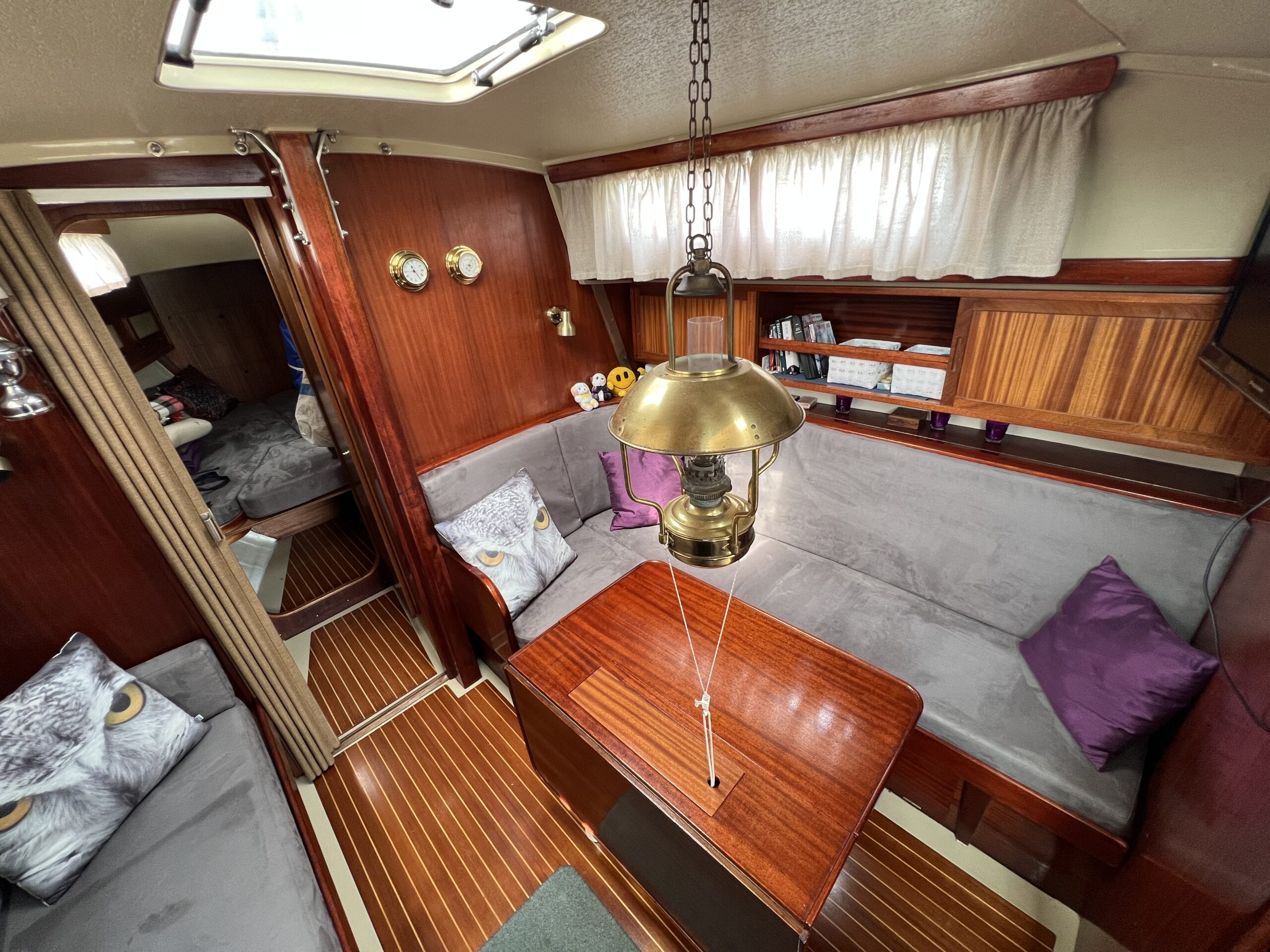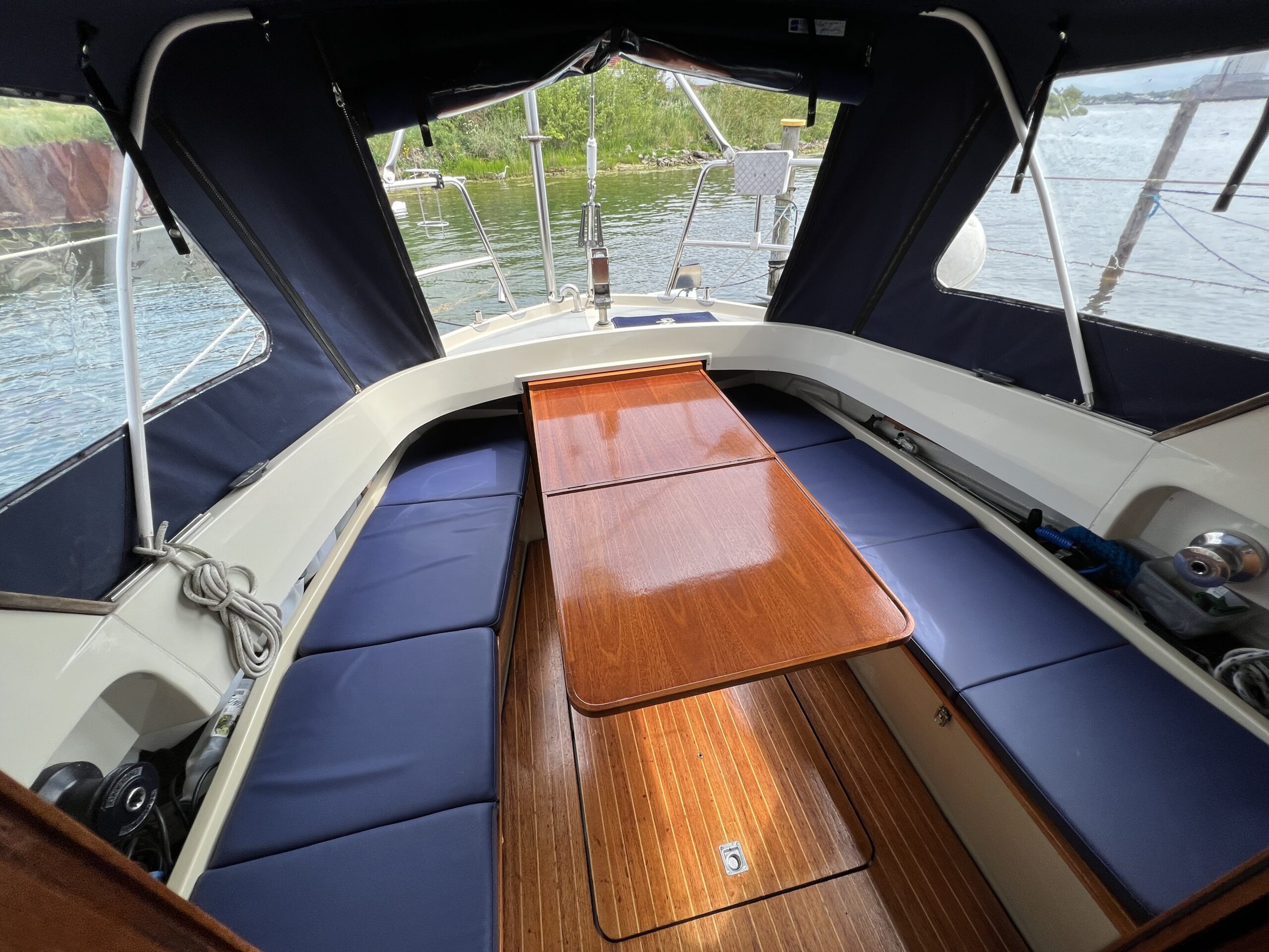 Skøn danskbygget klassiker – populær og familievenlig motorsejler som også kan sejle fra LM. Dejligt stort cockpit med bænke og bordløsning. Klassisk LM pantrysektion med køleskab, vask og gaskomfur. Skøn førerplads under hardtop med stor skydeluge hvis der skal vind og sol I håret. Via skydedørsløsning nedgang til dejlig hyggelig og meget velholdt salon med langsgående sofaer og bordløsning. Begge sofaer kan med et snuptag omgøres til to virkelig fine sovepladser den ene som dobbeltkøje. Fremme er forkahyt Her findes yderligere to voksenkøjer. Toiletrum med vaskemodul. Båden er udstyret med en Volvo D2 /40 Hk fra 2009 med rigeligt kraftoverskud til denne størrelse båd. Masten Kan ligges ned så der mulighed for kanalsejlads, Hele båden er løbende “Passet godt på” og der er rigtig mange fine fornyelser der gør denne LM32 til noget helt særligt og interessant hvis du er i markedet efter en klassisk motorsejler.