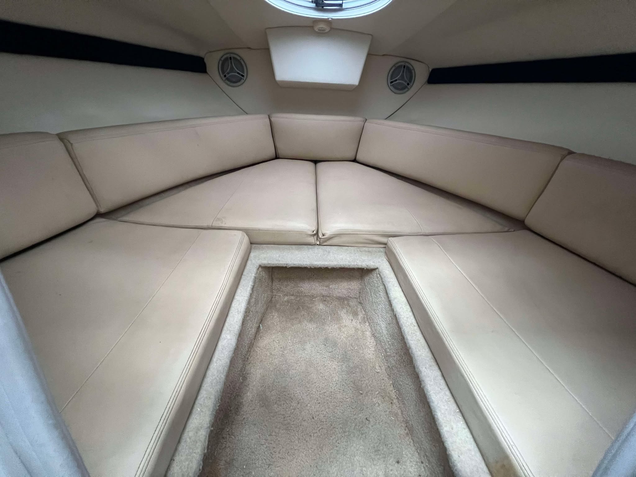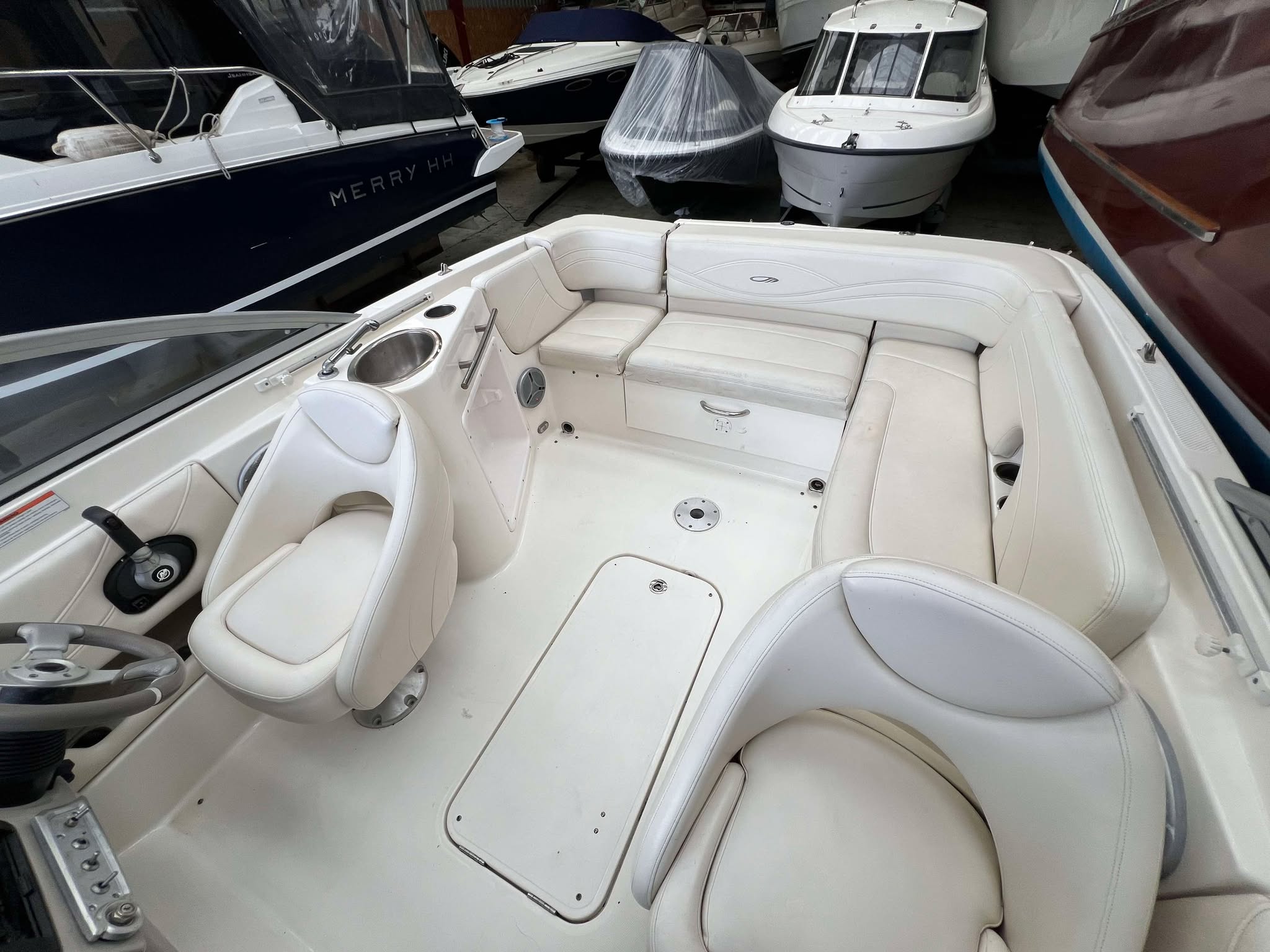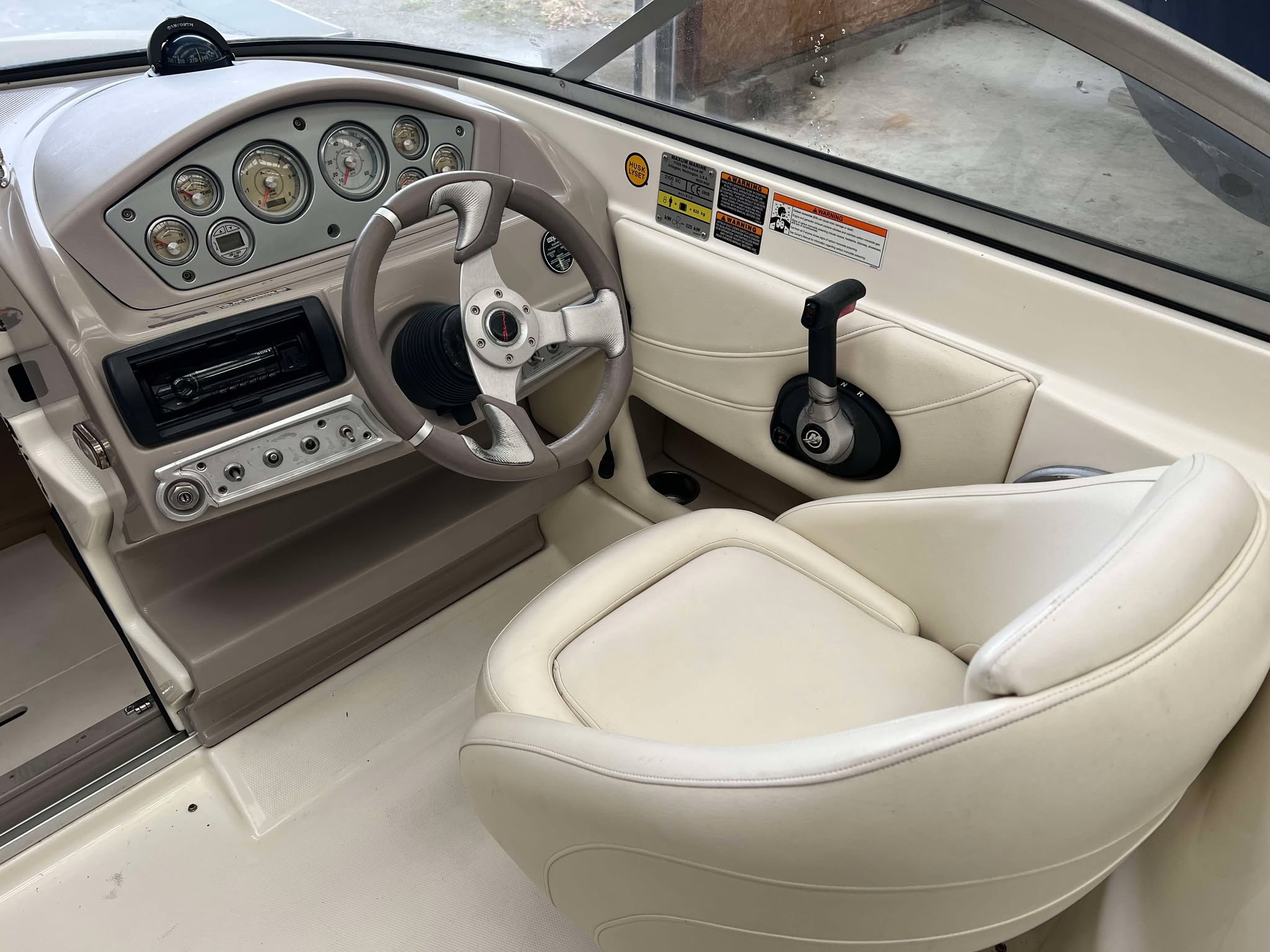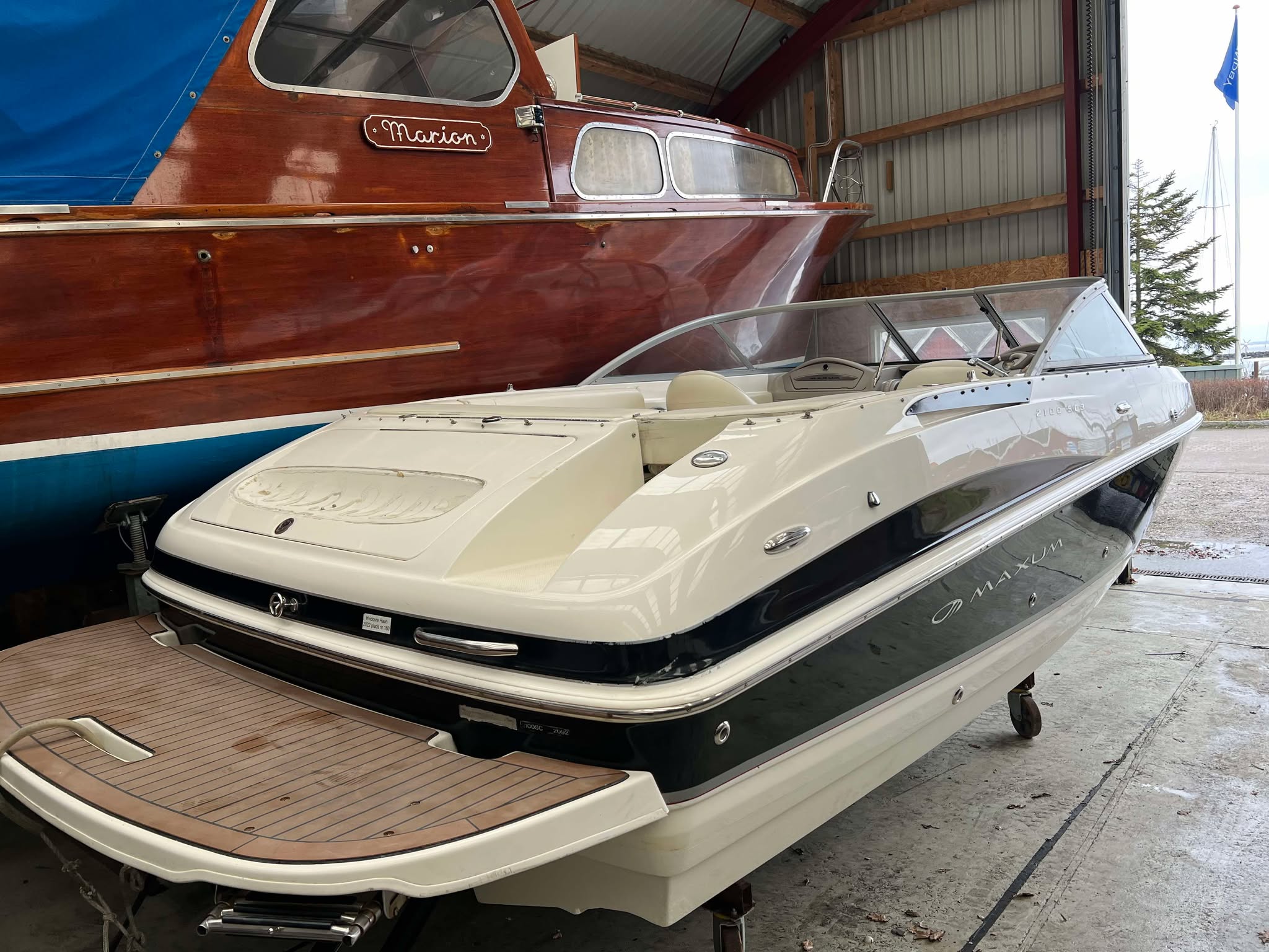 Skøn eftertragtet Maxum 2100SC3 med V8ér så der kan komme rigtig fart i håret. Maxum bådene er bygget i USA og betragtes som en af de bedre brands. I denne flotte modet får du et stort lækkert cockpit med L-siddegruppe og to pilotstole som kan vendes rundt så de kan indgå i familiehyggen omkring bordet. Du har ligeledes mulighed for at lave sofaen om til solplads. Godt vindspejl som skaber god læ under sejlads og med mulighed for at åbne midtervindue for nem adgang til fordæk via de indbyggede trin. Førerpladsen er velindrettet og med smarte instrumenter. I cockpittet finder du også lille håndvask i smart arrangement med ferskvand og mulighed for en køleboks. Der er stuvrum i dørken til fortøjninger etc. Agter er stor badeplatform med badestige og vandskikrog. Her har du også mulighed for at sidde på “kanten” og nyde udsigten. Kahytten er hyggelig og rummelig med sofa og bordløsning som kan omgøres til stor køje. Her er også lille toiletløsning. En virkelig fin attraktiv model som er er efterspørgsel på i markedet – hvem kommer først.. Bemærk det er den nye model med stor sofa og rigtige førerstole.