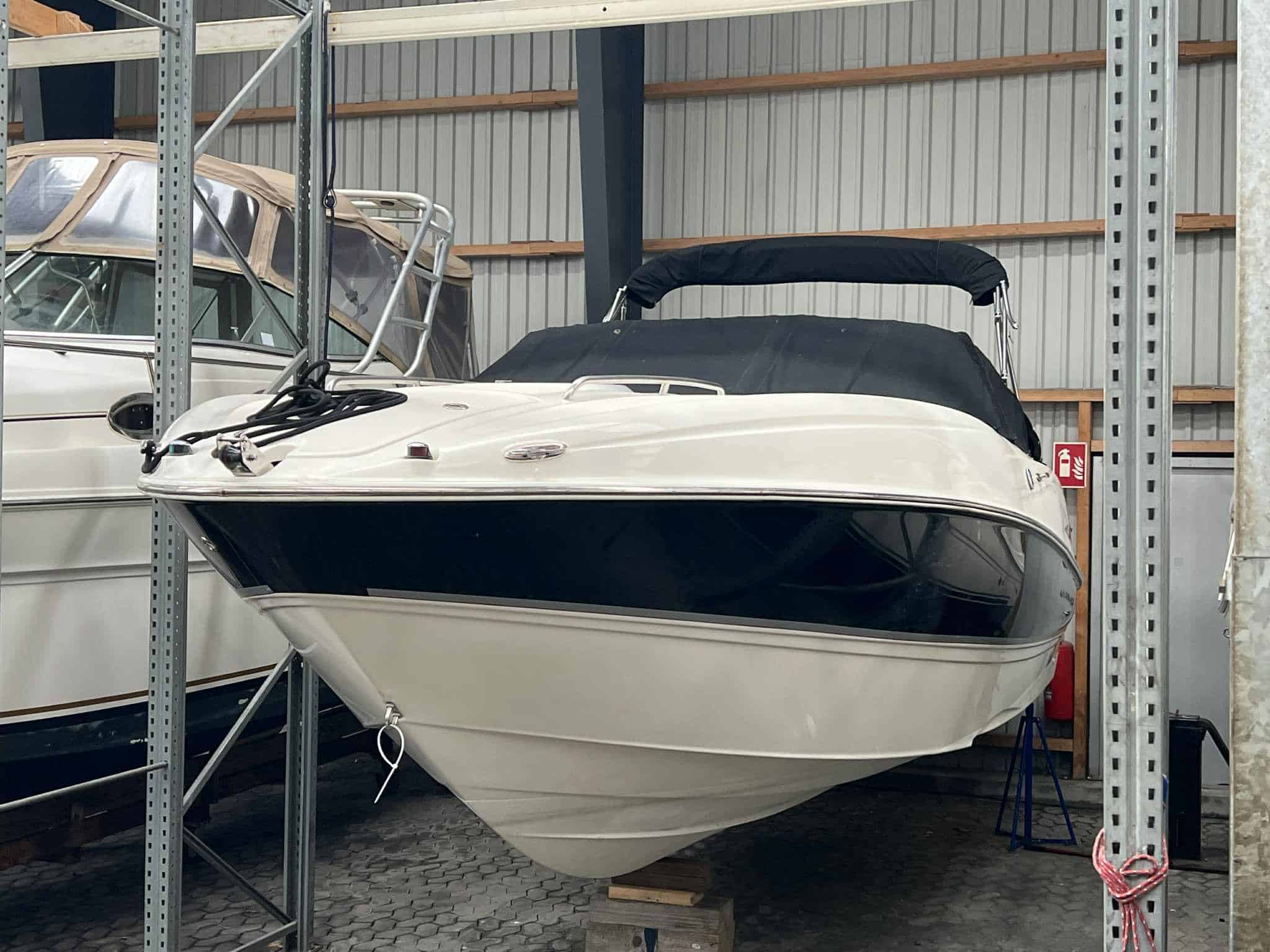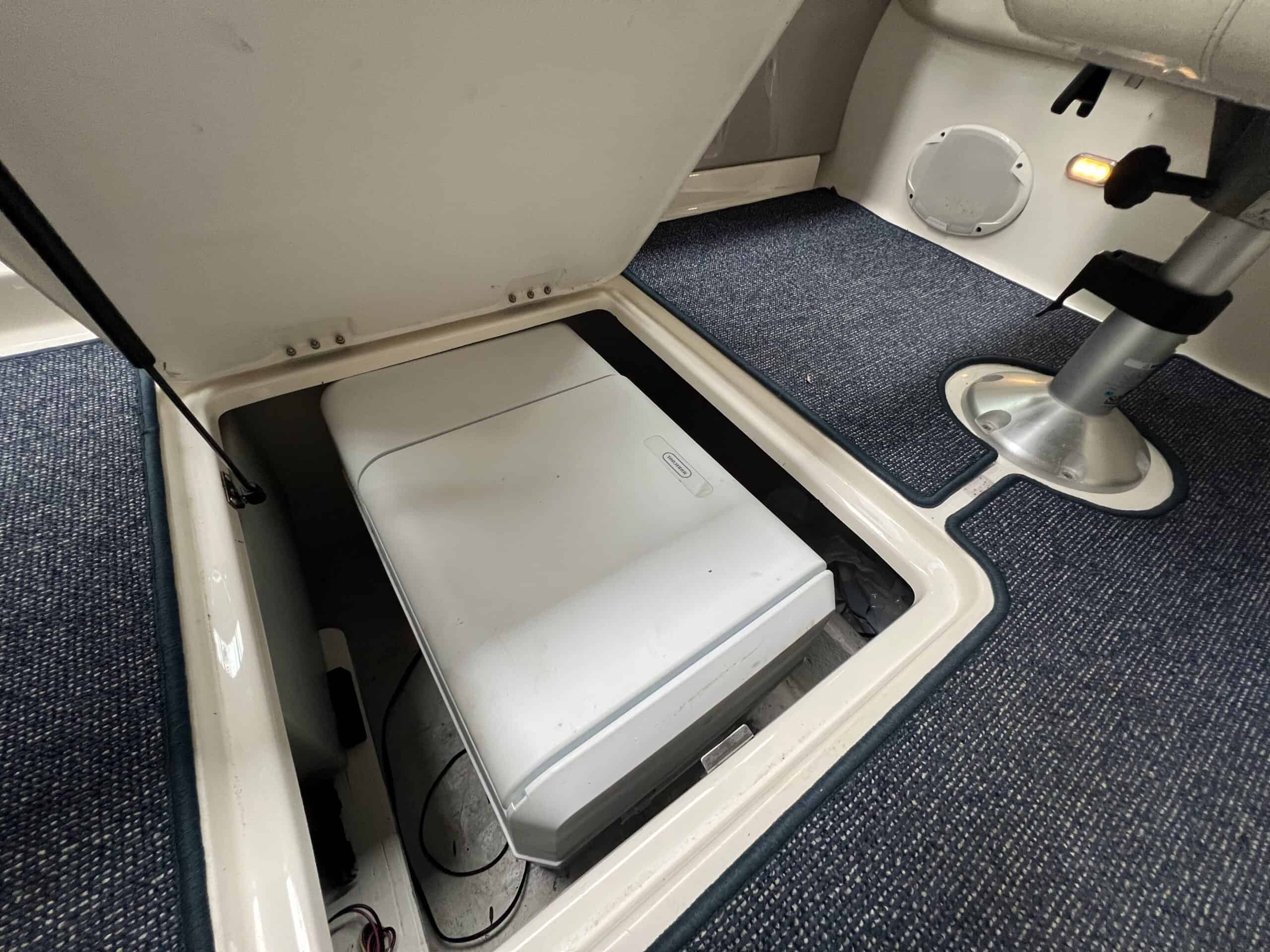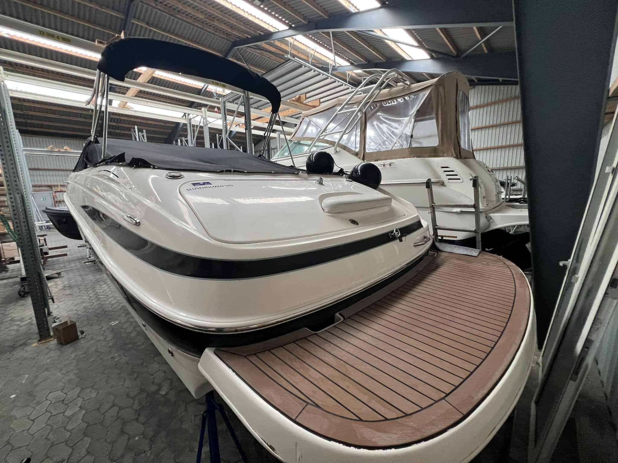 Fin badeplatform med badestige og vandskikrog. Sofa arrangement kan omgøres til stor solplads, Førestol og passagerstol som kan drejes 180 grader rundt så man nemt kan sidde 6 personer rundt om bordet. Helt nye Gulvtæpper med kant. Hele båden fremtræder yderst ren og velpasset – virkelig flot og velholdt daycruiser som altid har stået indendørs om vinteren og passet godt på om sommeren.– hvem kommer først til denne skønne båd.
