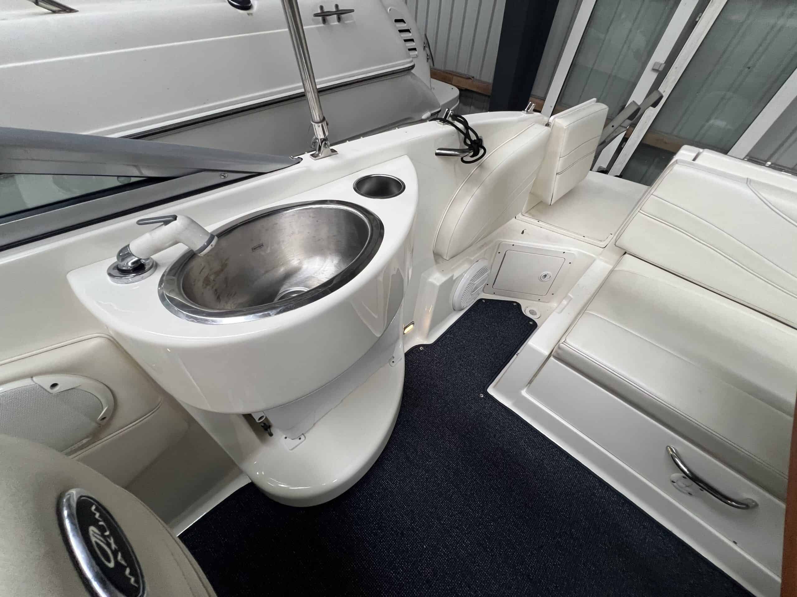 Velsejlende og yderst velholdt og velpasset populær Maxum 2400 med fin størrelse kahyt med toilet som giver dig mulighed for at overnatte i båden og udnytte dine fridage fuldt ud. Populær Mercruiser 5.0 Mpi motor som har overskud til vandsport og med indsprøjtning så også økonomien ikke “stikker af” og med næsten nye udstødningsknæ og manifolde.