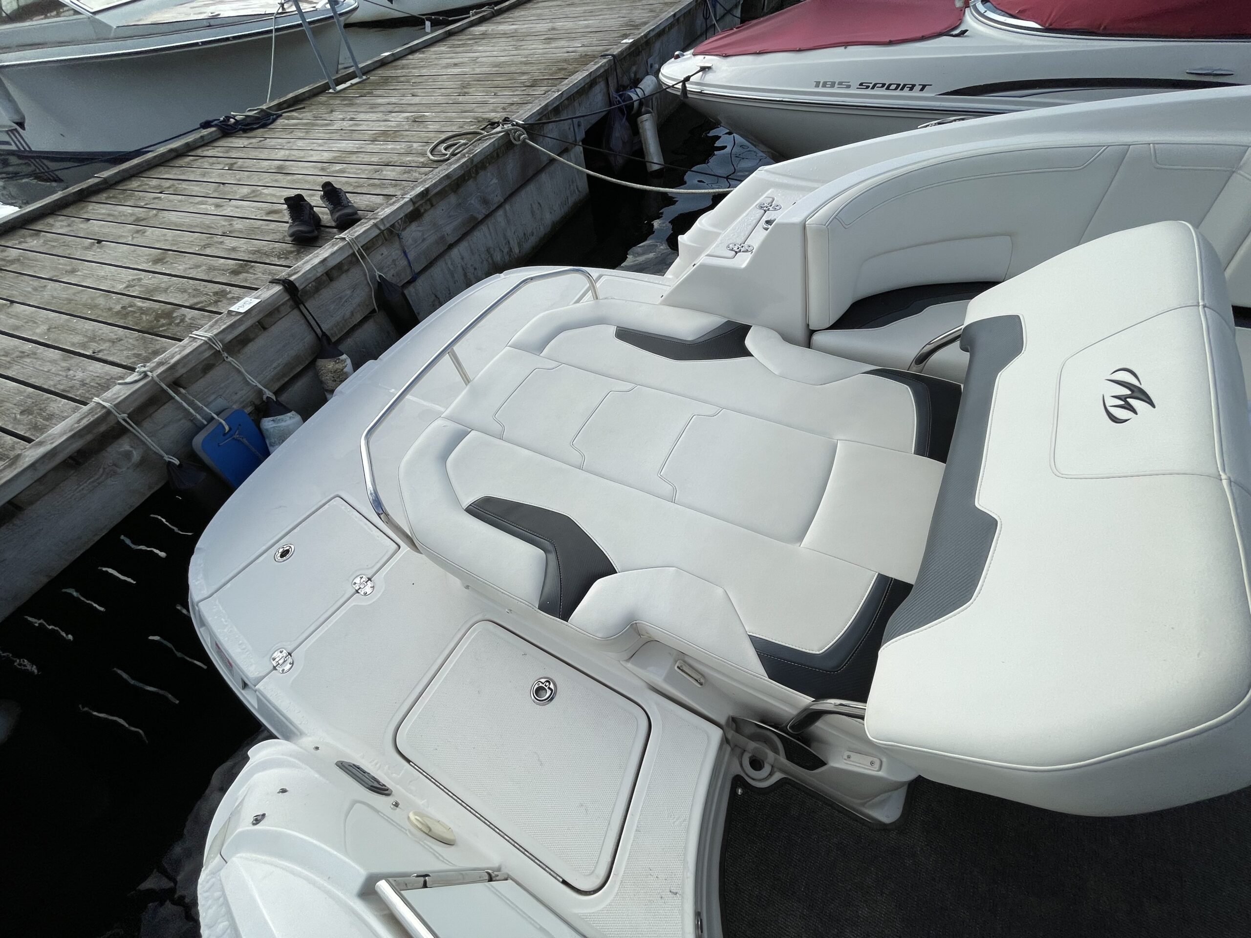 Agter solplads og stor badeplatform med badestige og styring af radio samt vandskikrog. Flotte tæpper og dejlig kahyt med fin sofagruppe som kan omgøres til dejlig bekvem dobbeltkøje. Aflukket toiletrum med vaskemodul og brus. Virkelig en flot og sporty båd – sjælden udbudt til en god pris.. Hov vi glemte at skrive at der også er Bovpropel og silent choice. og en stærk Volvo Penta 5,7 GXI motor fuldender billedet. Nyere trailer kan tilkøbes