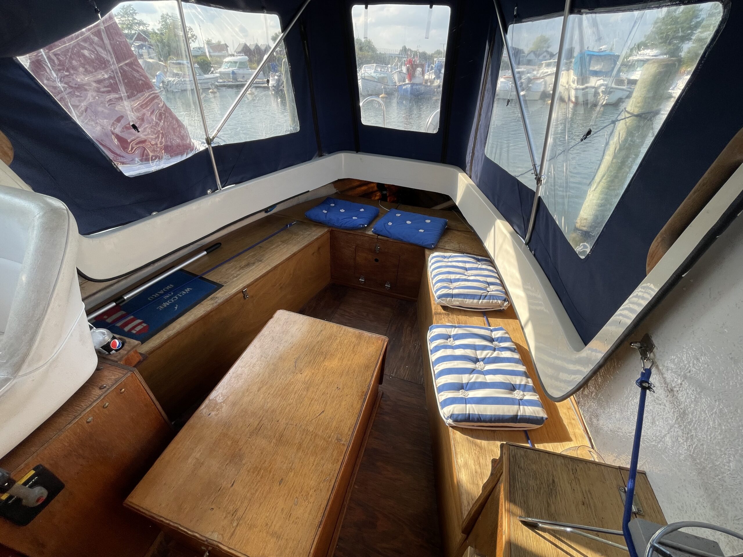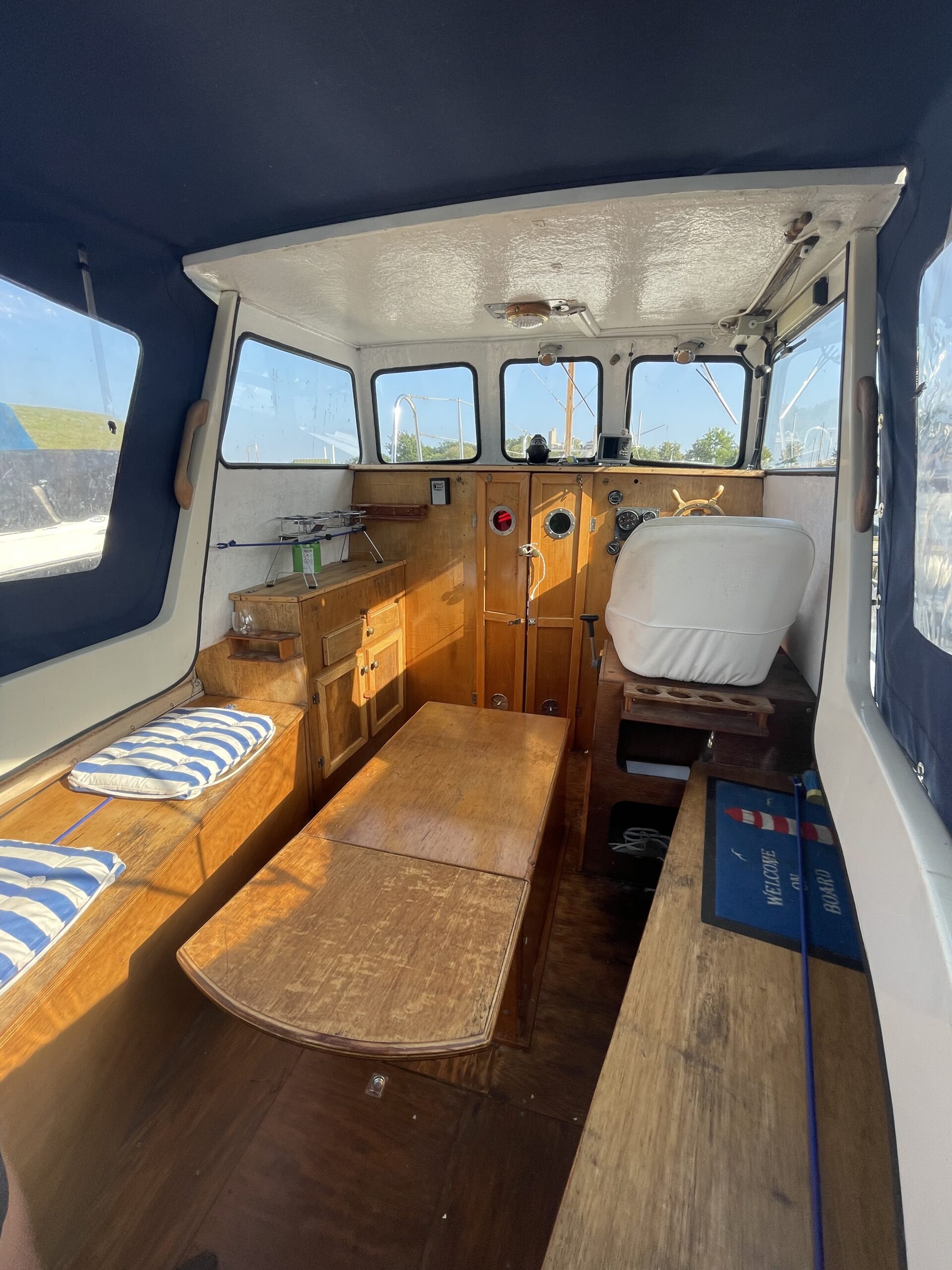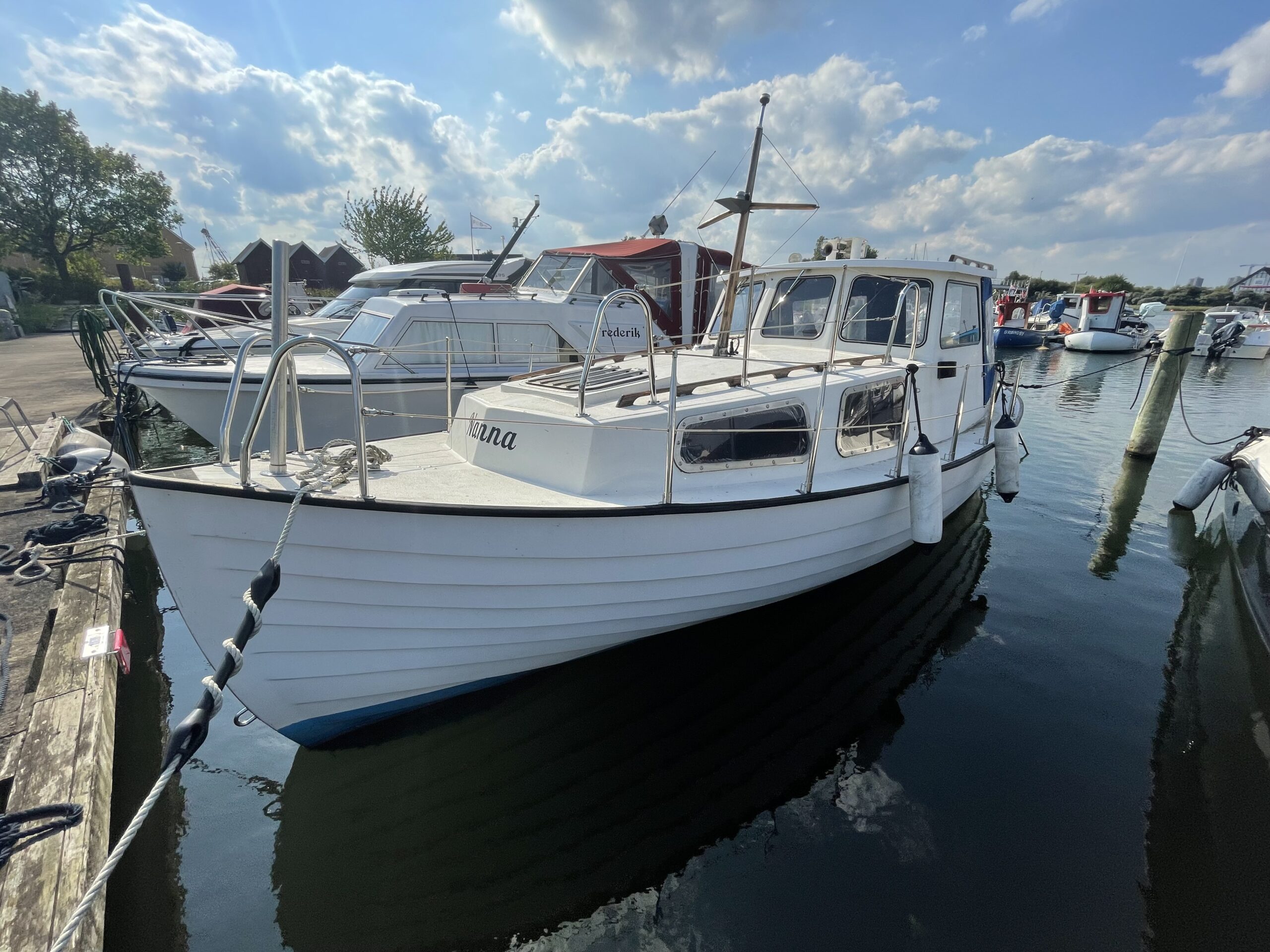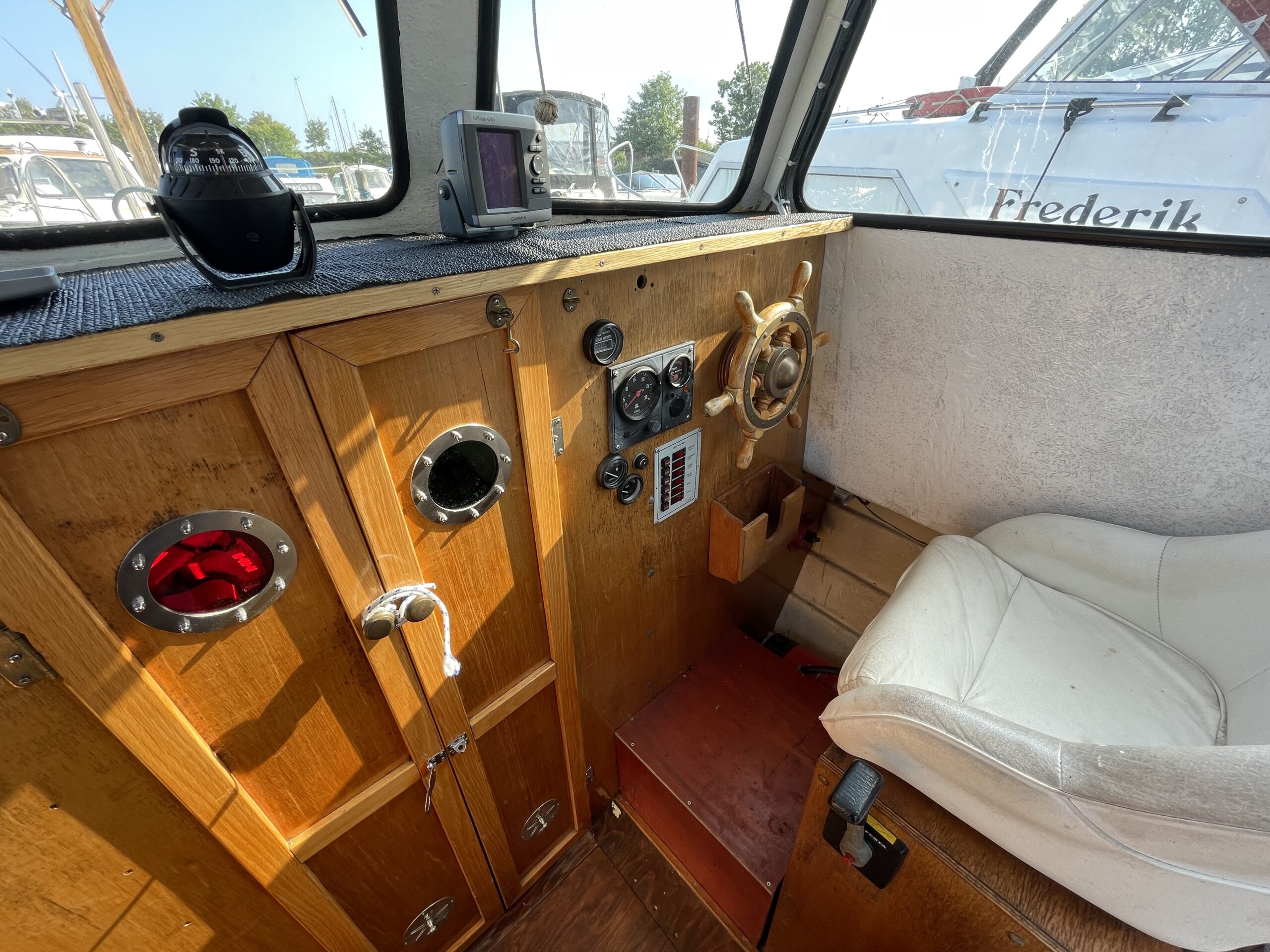 Nordisk snekke – Super hyggelig med sjæl og charme og ikke mindst sødygtig og godt indrettet. Stort cockpit med fin U-siddebænk. Fremme kaptajn stol og nedgang til kahyt med god plads til hele familien. Lille toiletrum. Bådens motor – en volvo penta MD11 – ferskvandskølet og renoveret i super fin stand. God nyere kaleche. Alt i alt en rigtig fin hyggelig turbåd til familien som ønsker god sejløkonomi og plads til hyggelige weekendovernatninger. Klar til levering. Mulig for at attraktiv havneplads i Brøndby havn kan tilkøbes.