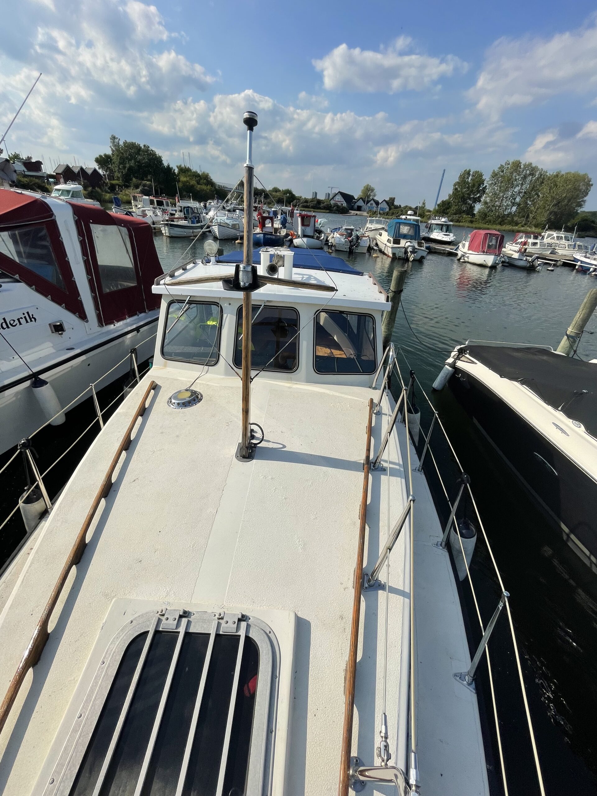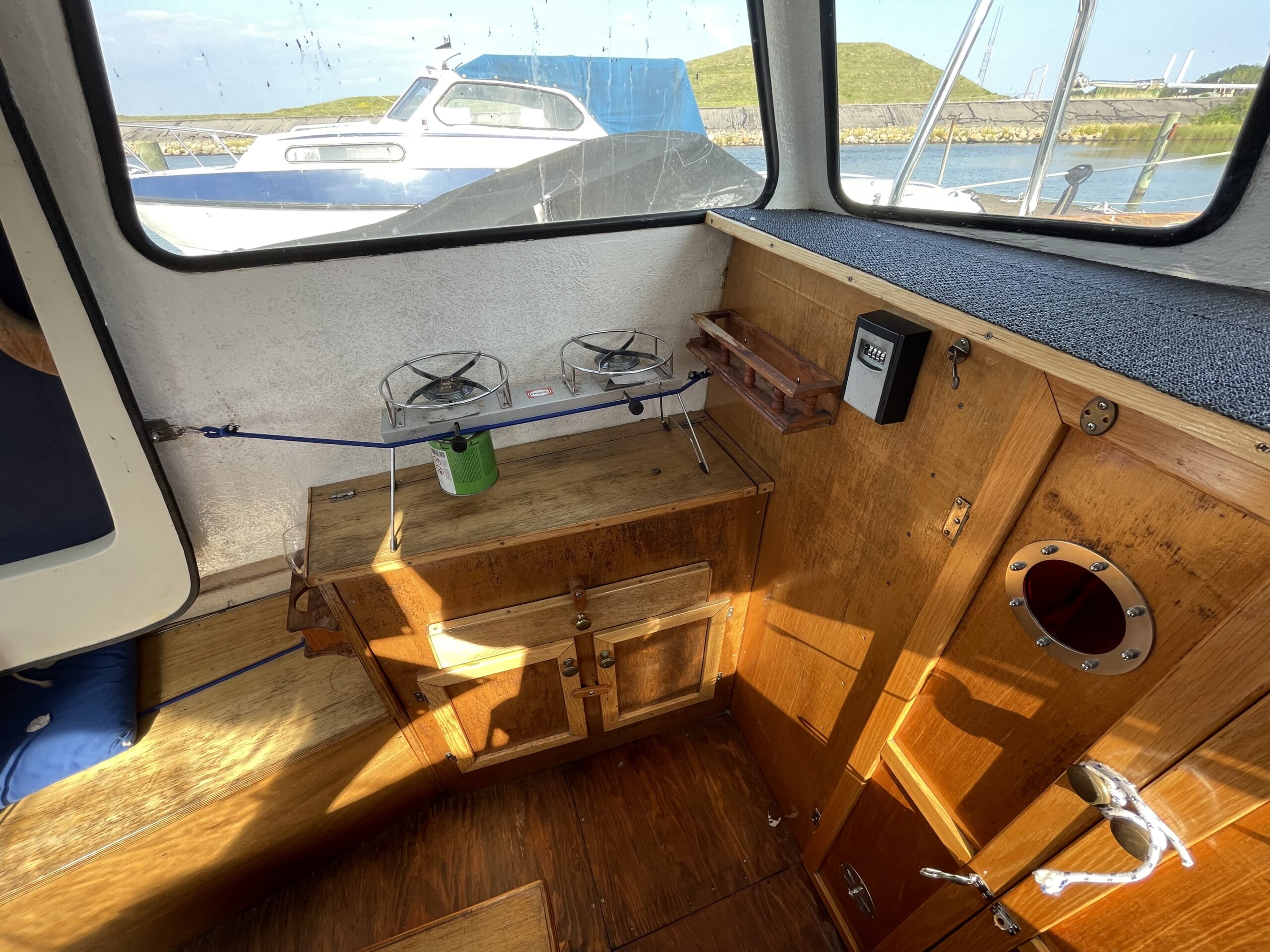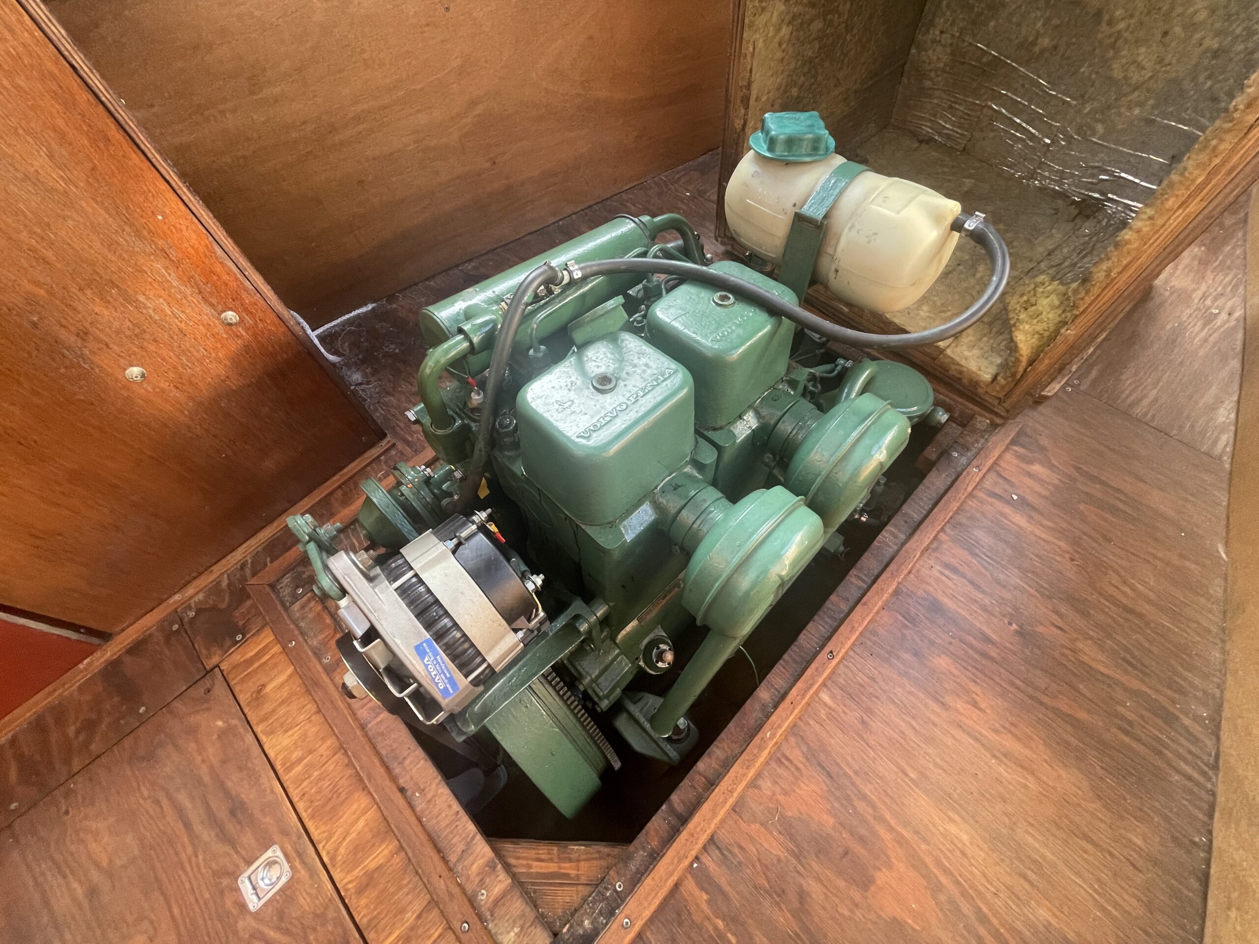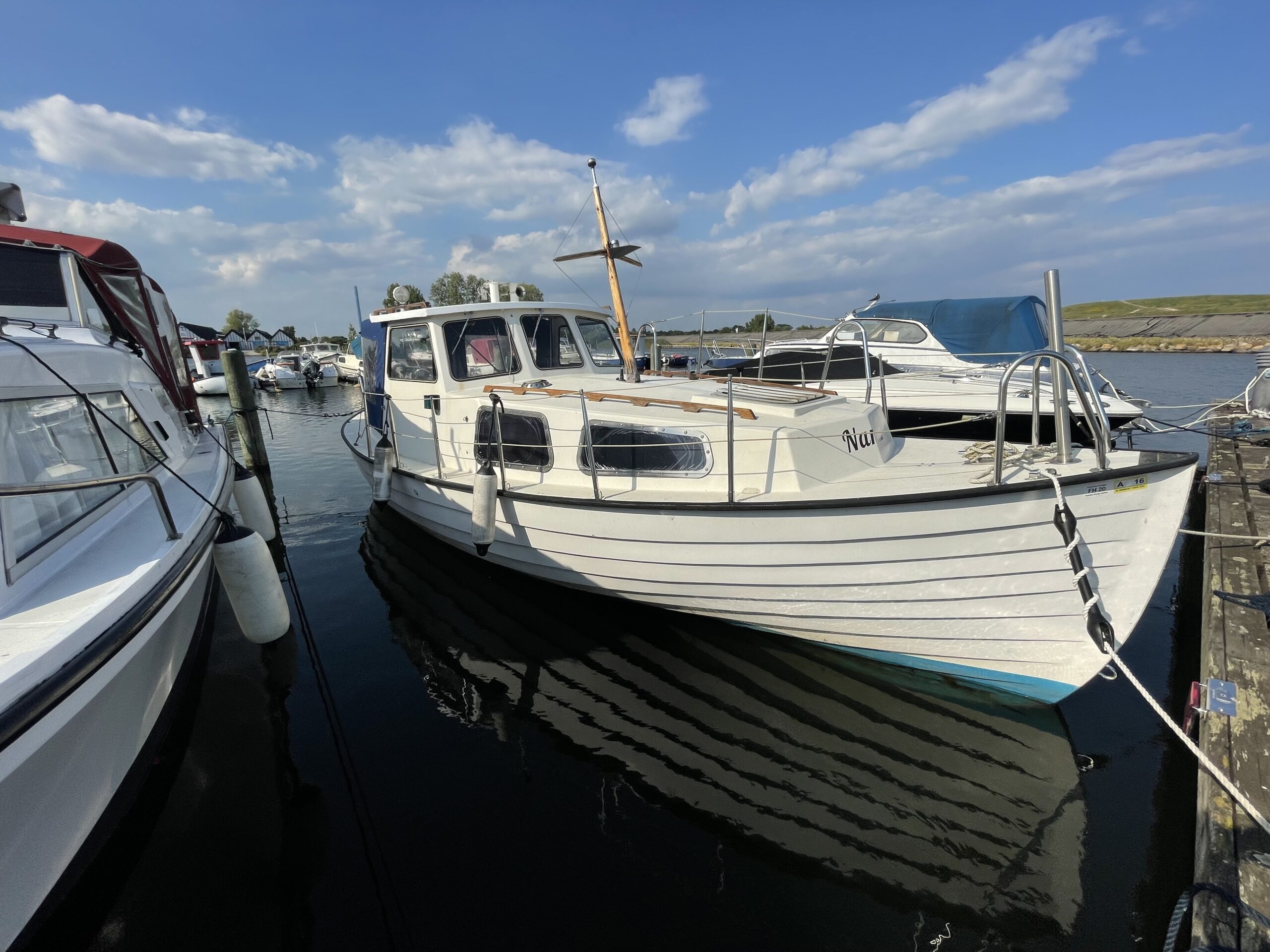 Nordisk snekke – Super hyggelig med sjæl og charme og ikke mindst sødygtig og godt indrettet. Stort cockpit med fin U-siddebænk. Fremme kaptajn stol og nedgang til kahyt med god plads til hele familien. Lille toiletrum. Bådens motor – en volvo penta MD11 – ferskvandskølet og renoveret i super fin stand. God nyere kaleche. Alt i alt en rigtig fin hyggelig turbåd til familien som ønsker god sejløkonomi og plads til hyggelige weekendovernatninger. Klar til levering. Mulig for at attraktiv havneplads i Brøndby havn kan tilkøbes.