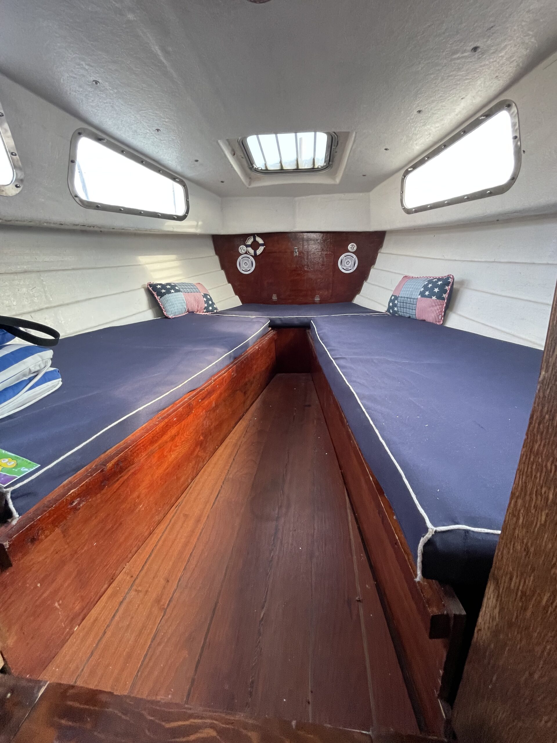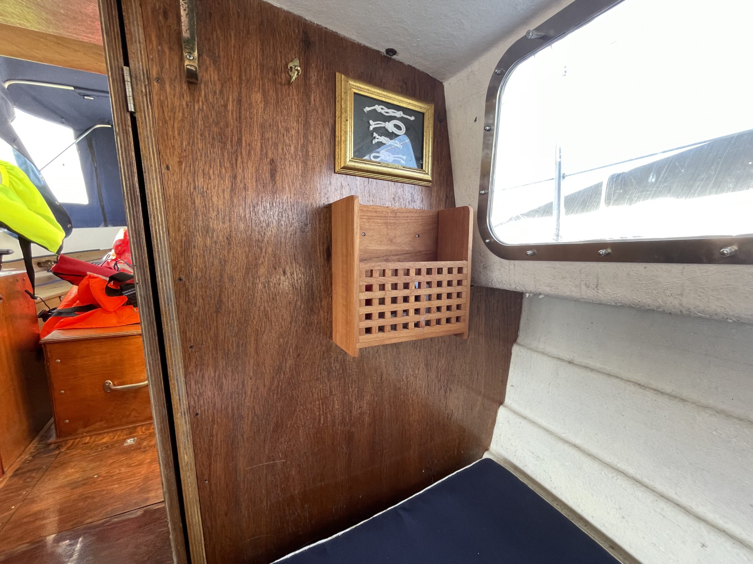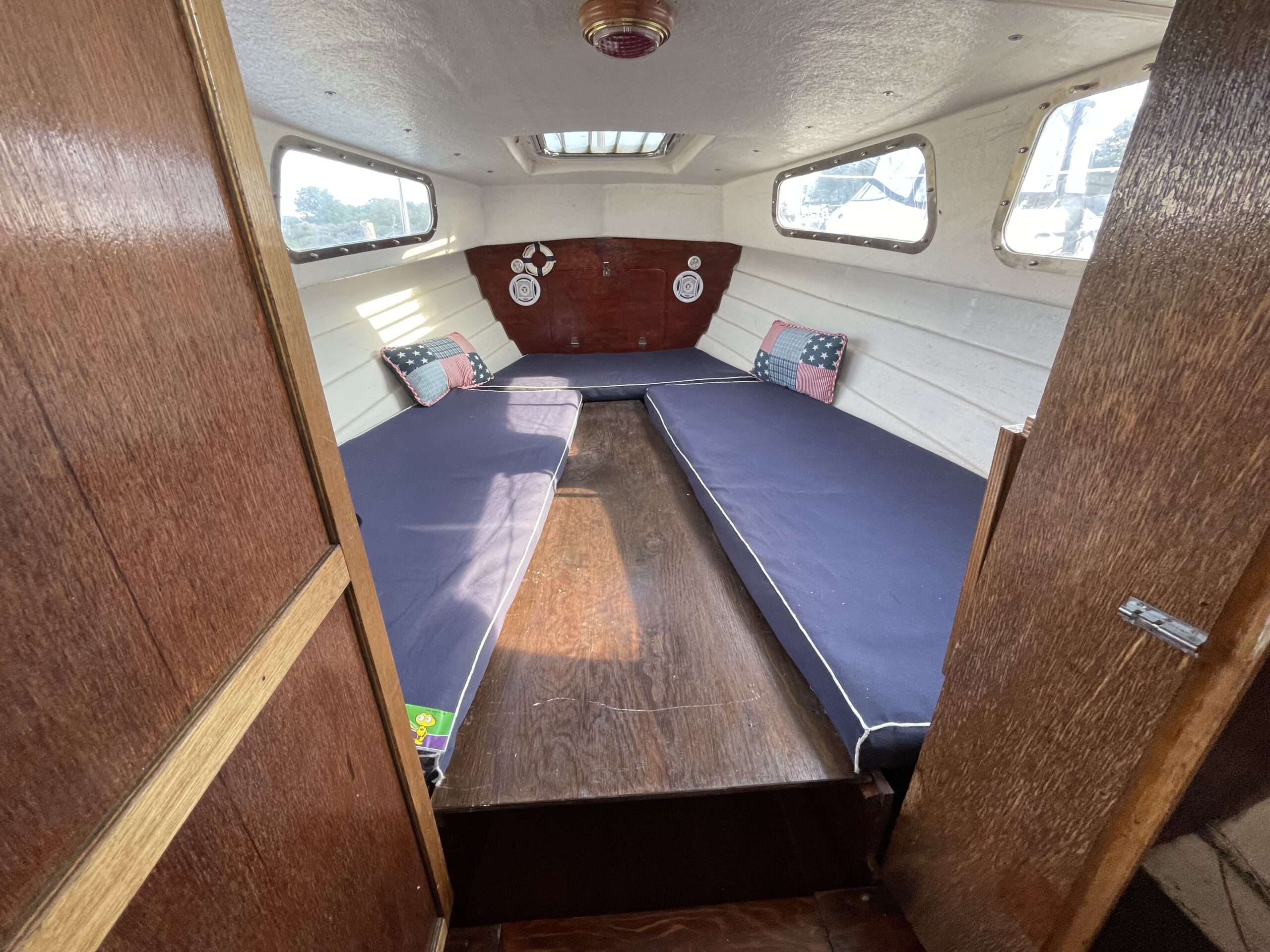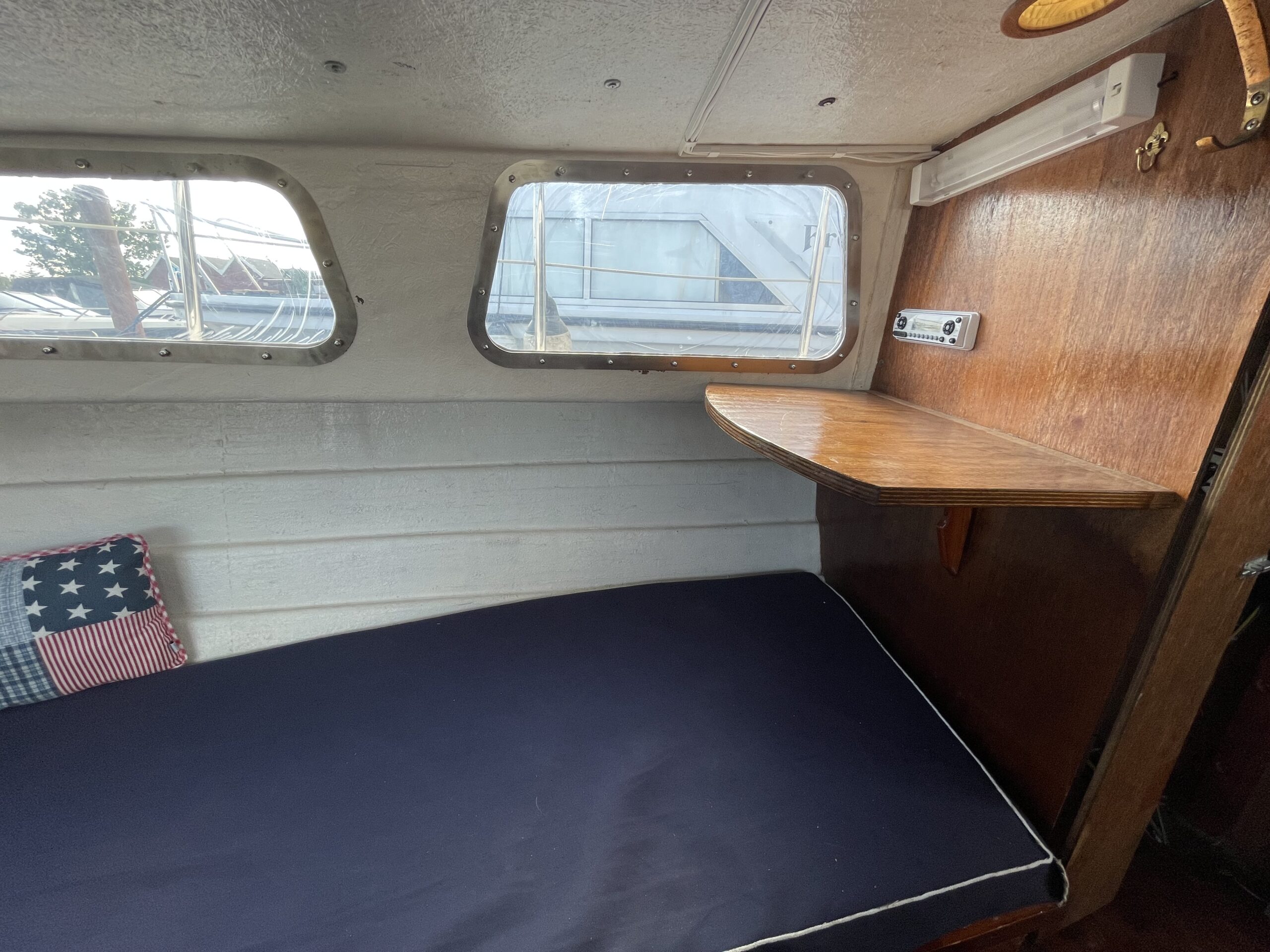 Nordisk snekke – Super hyggelig med sjæl og charme og ikke mindst sødygtig og godt indrettet. Stort cockpit med fin U-siddebænk. Fremme kaptajn stol og nedgang til kahyt med god plads til hele familien. Lille toiletrum. Bådens motor – en volvo penta MD11 – ferskvandskølet og renoveret i super fin stand. God nyere kaleche. Alt i alt en rigtig fin hyggelig turbåd til familien som ønsker god sejløkonomi og plads til hyggelige weekendovernatninger. Klar til levering. Mulig for at attraktiv havneplads i Brøndby havn kan tilkøbes.