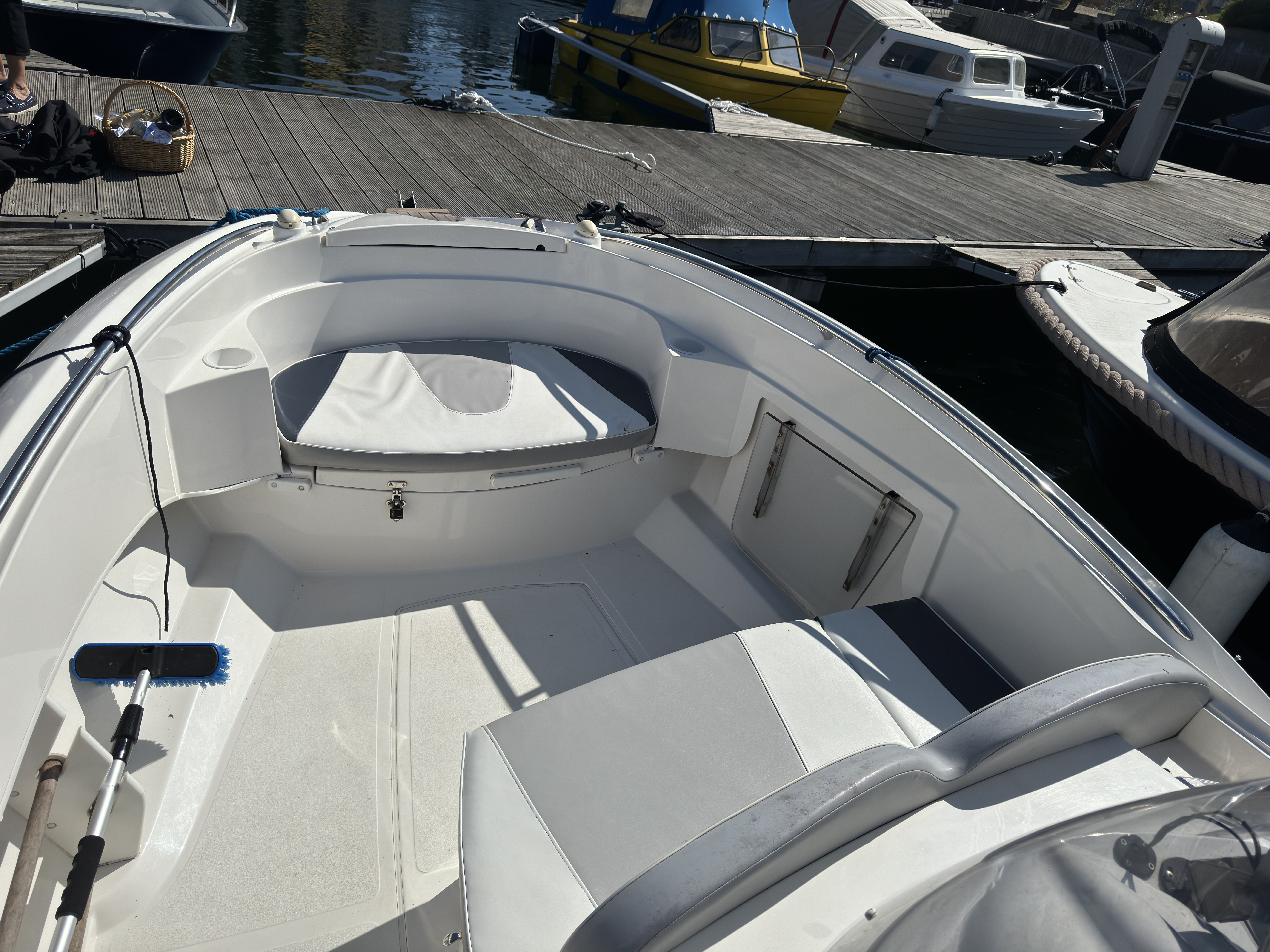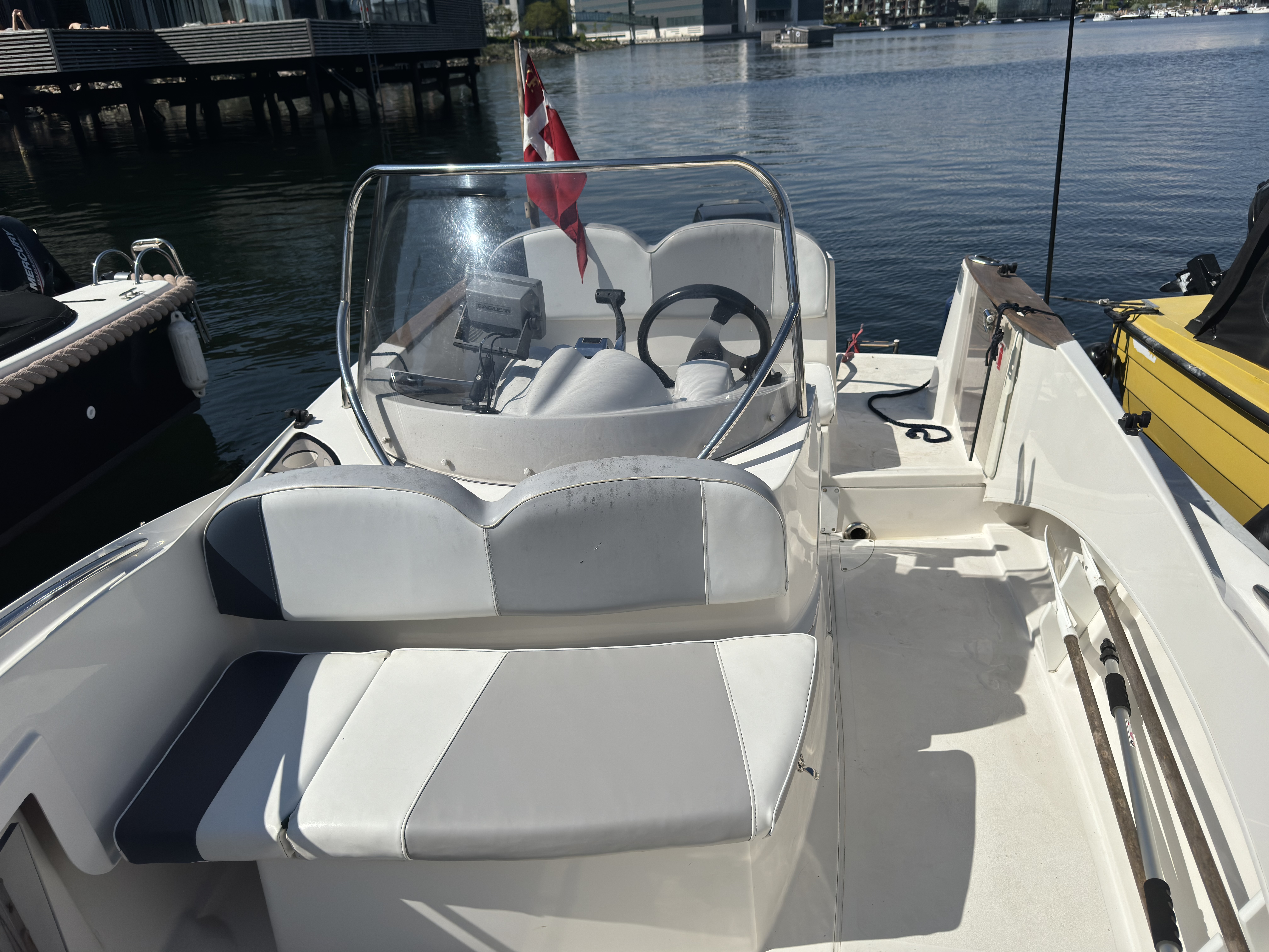En rigtig fin nybegynder båd eller til dig som lige har købt en bolig ved vandet og bare skal have en fin båd til og sejle rundt i københavns kanaler, men samtidig også kan sejle ud på Øresund og trække vandski, med 75 hk kan denne også sejle en god topfart