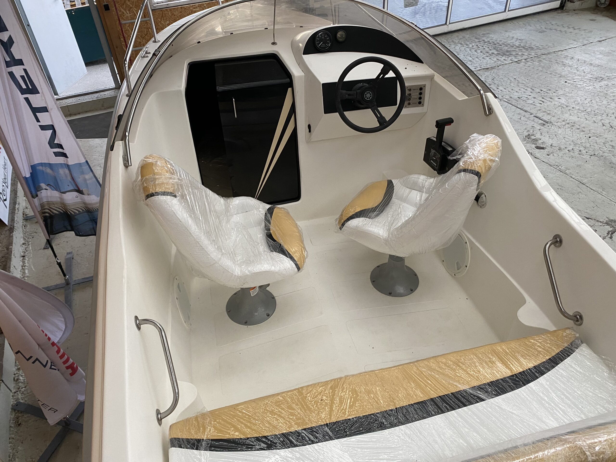 Olympia er helt unik, det perfekte møde mellem moderne design og praktiske detaljer. Sporty udseende med hurtig karakter til hyggelig komfort for hele familien. Fantastisk cockpit med god plads og mulighed for solplads. To pilotstole som kan vendes og sammen med agter sofaen bliver en velfungerende siddegruppe med mulighed for bordløsning. Fin hyggelig og rummelig kahyt med fin siddehøjde og god sovekomfort i den dejlige store dobbeltkøje. Sejler fantastisk med en Mercury 60 Hk 2takt