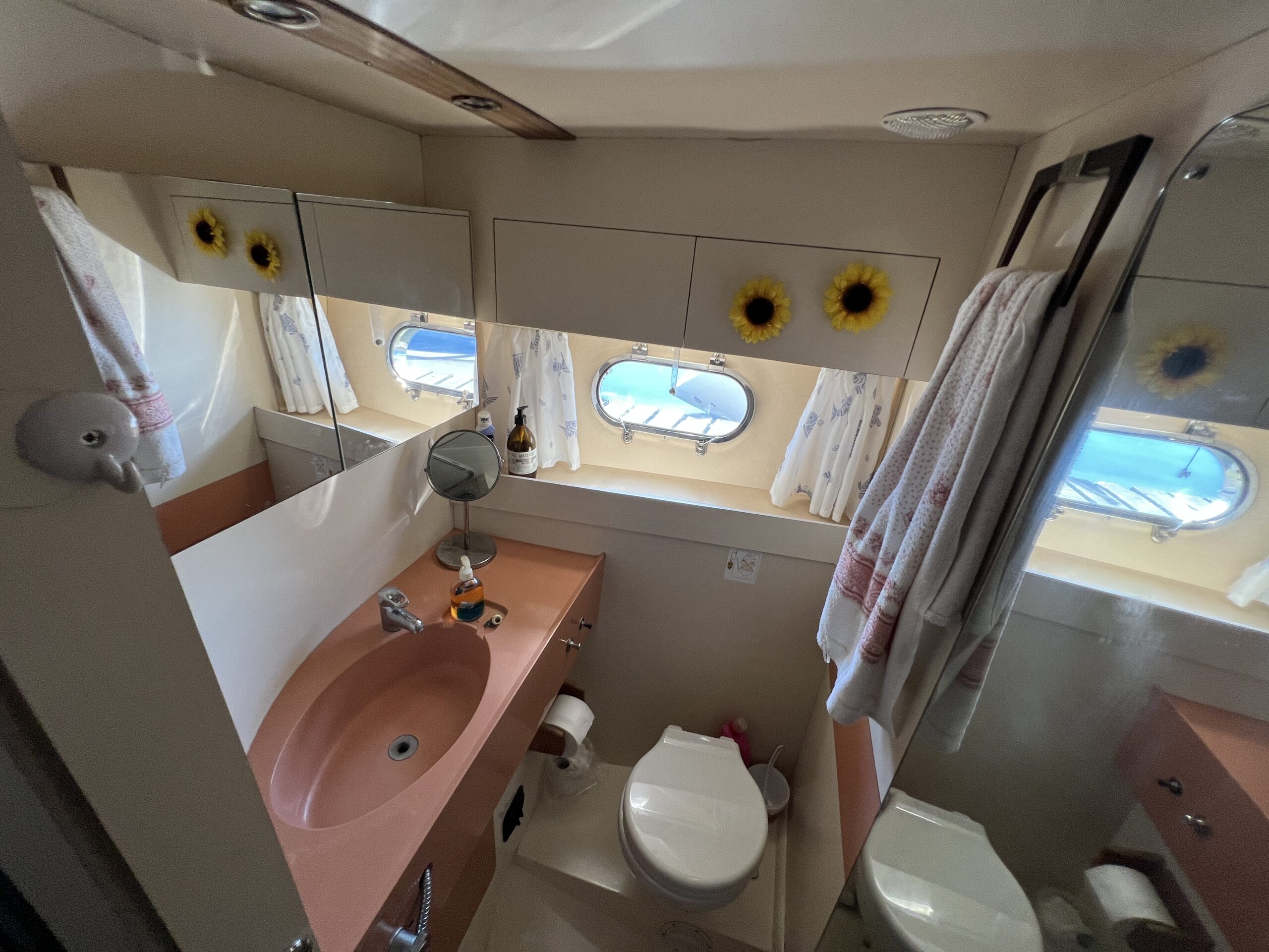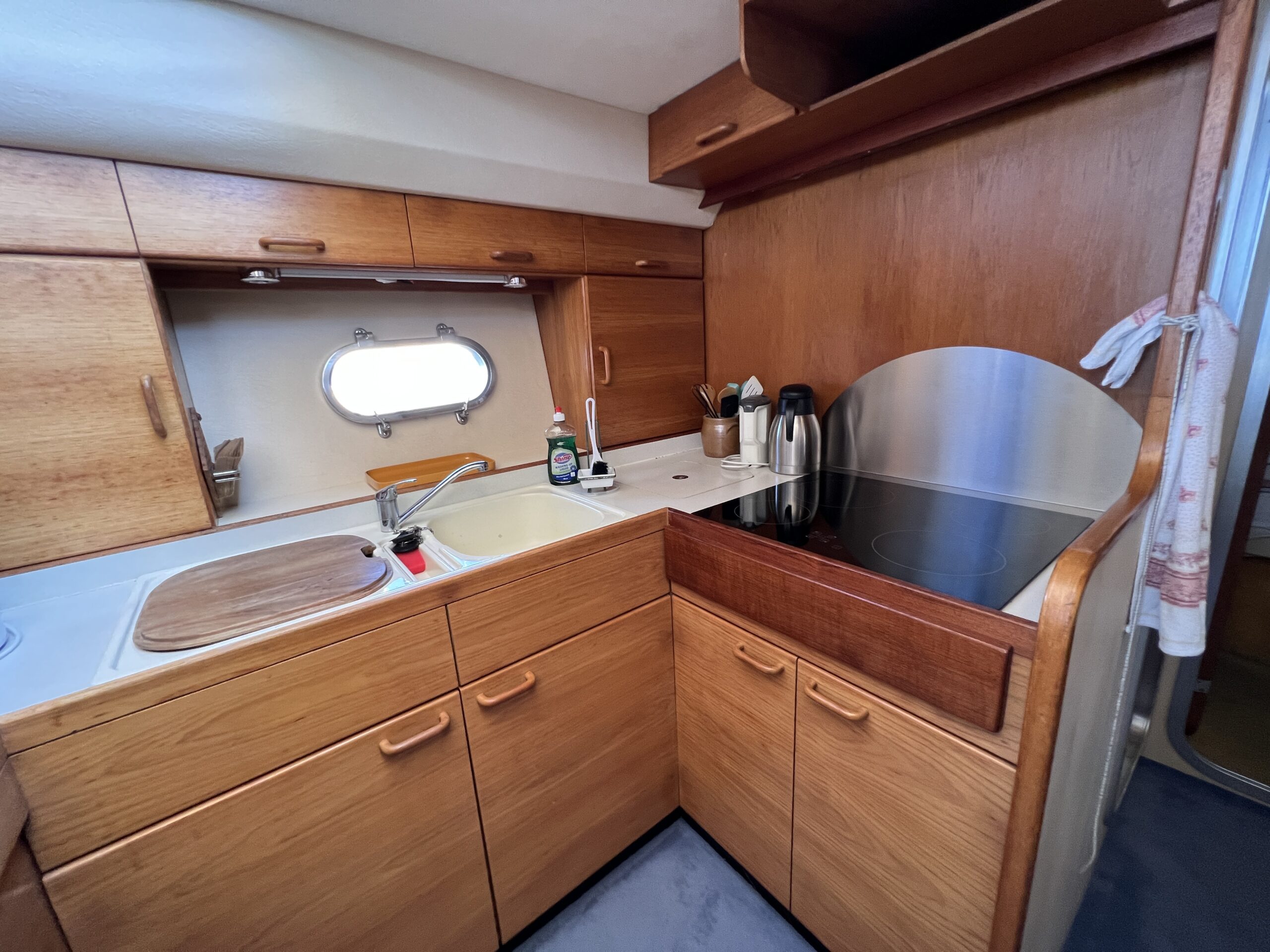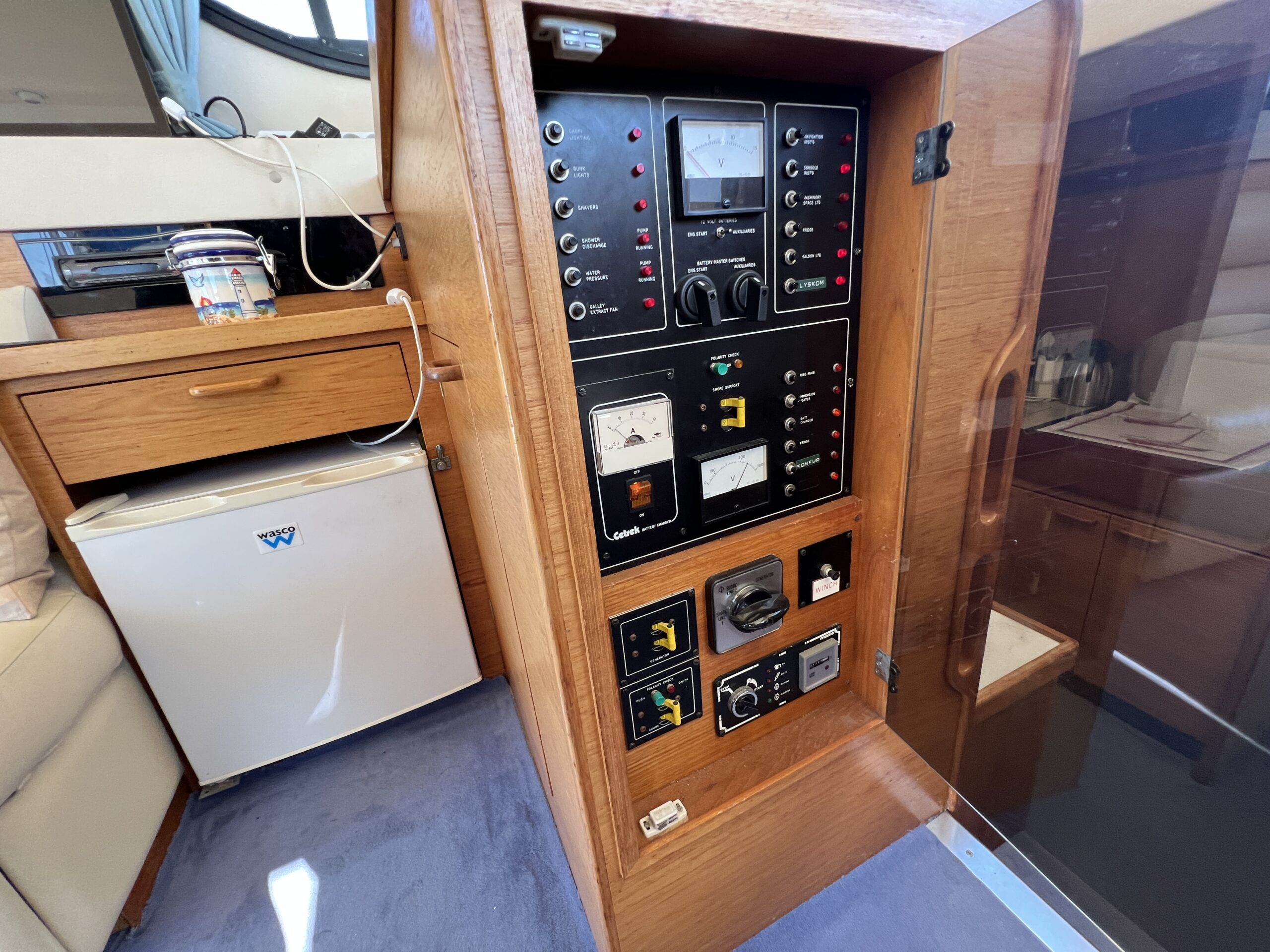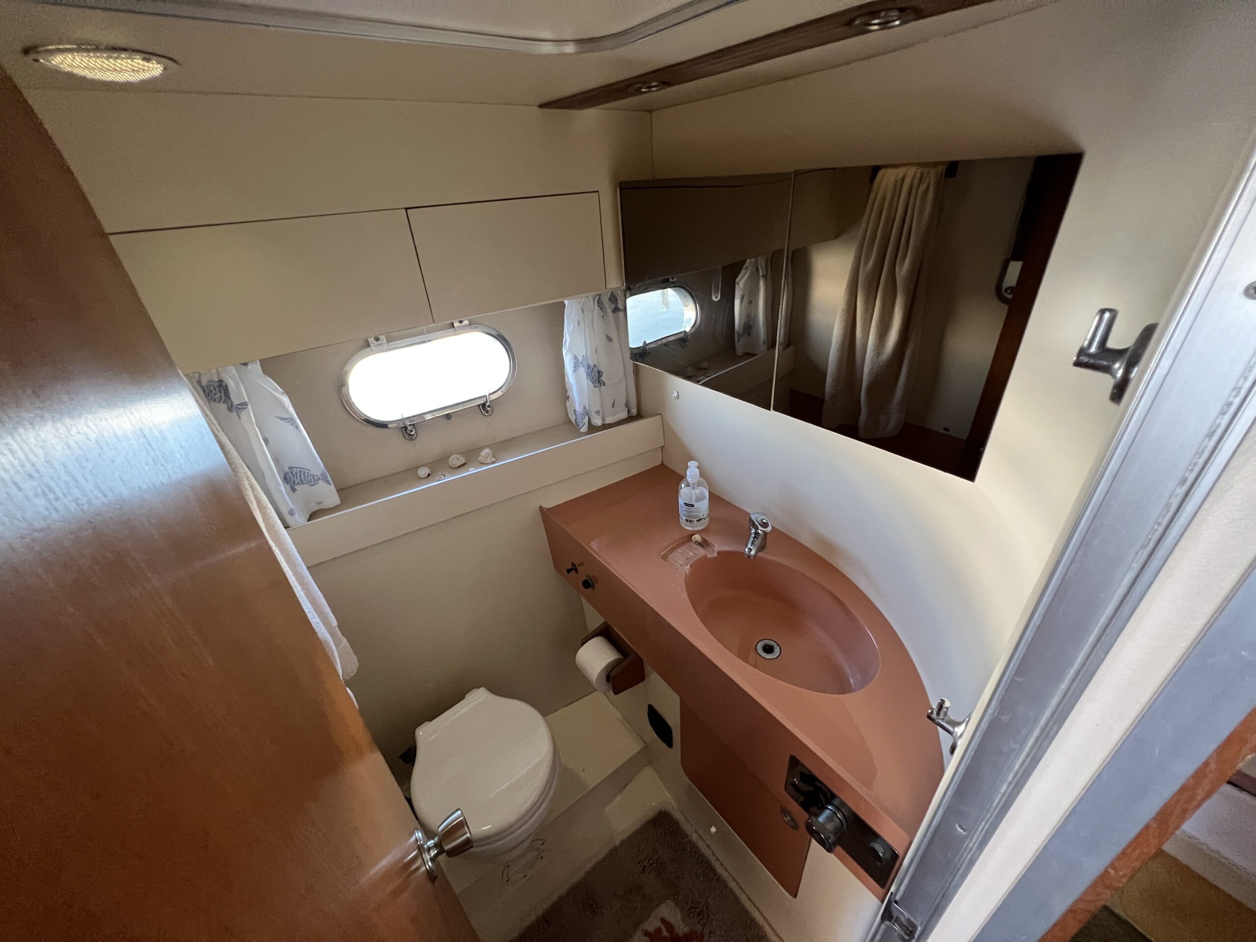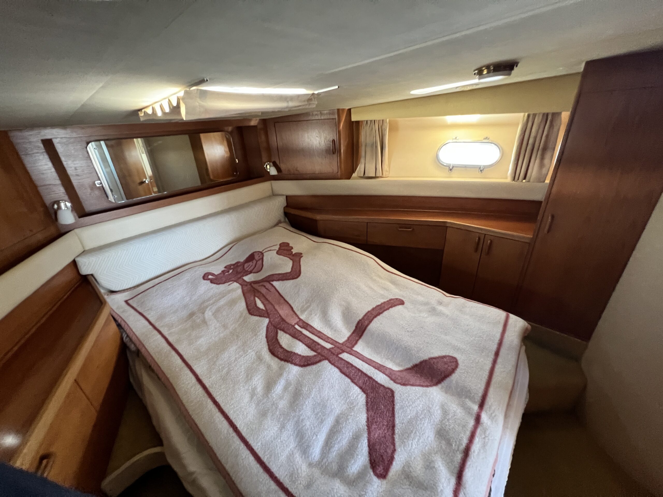 Populær engelsk kvalitetsmotorbåd med god plads og fine sejlegenskaber. Skønt stort agterdæk med gode siddepladser og adgang til badeplatform. Fra agterdæk adgang til flybridge hvor der findes førerplads og passagersæde med vipperyg sålkedes at det kan “deltage” i L-aofaarranementet. Bag skydedørsparti fra agterdæk findes hovedsalon med stor sofagruppe i SB og BB med salonbord. To trin op til dobbelt førerplads med godt udsyn og overblik. Trappe ned til “åben” pantrysektion med alt hvad der skal være. Fordelingsgang til sidekahyt med to enkeltkøjer. Toiletrum med brus og vaskmodul og fremme ownerskahyt med stor dobbeltseng og eget toiletrum med brus og vaskmodul. Masser af skabsplads og stuvrum i hele båden – virkelig fin kvalitetsaptering og gode gennemtænkte løsninger. Båden er velholdt, der er nyere kaleche, Bemærk med Agter og bow truster