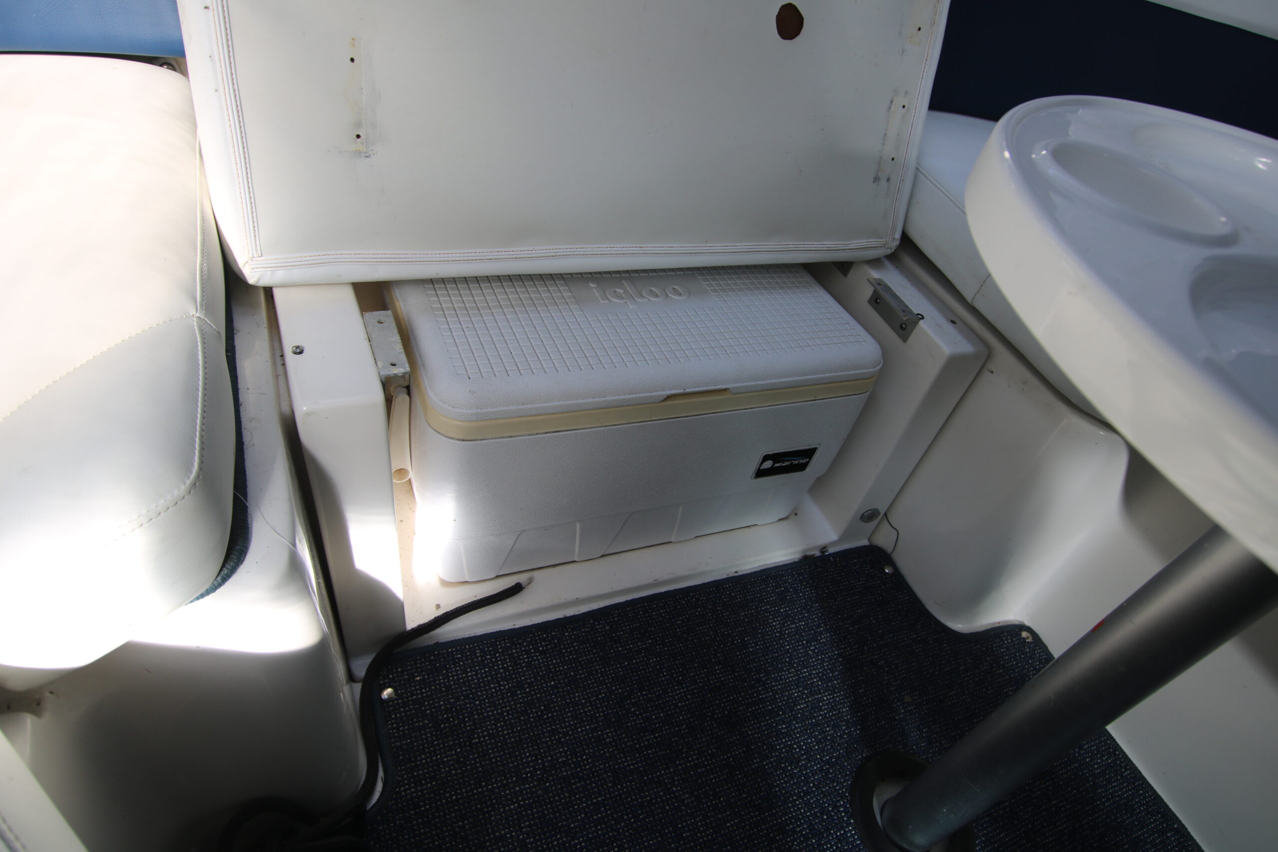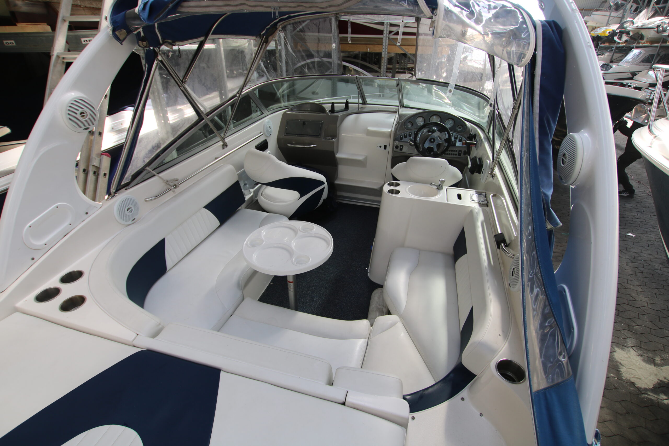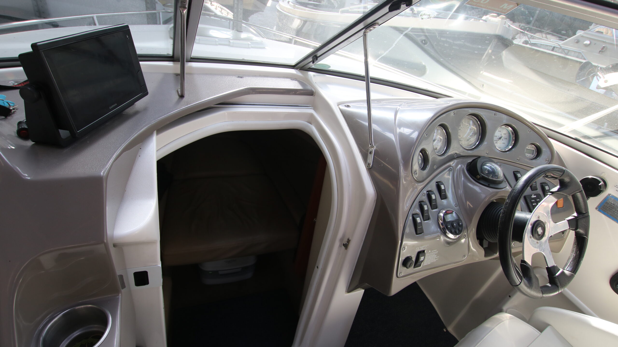 Lække og yderst velsejlende model med lækkert cockpit og fin kahyt til overnatning for 2+. Kæmpe badeplatform og solmadras agter. Stor U-sofa og lille wetbar. To drejebare pilotstole til kaptajnen og prinsessen. Adgang til fordæk via vindspejl hvor du kan ligge på et håndklæde og få sol på maven. Kahytten er rummelig og med komfortabel plads til 2+ for overnatning. Ligeledes fin toiletløsning. En båd der byder på det hele og i en god kvalitet. Bemærk båden har fået nyt betræk på alle hynder, stole og madres. Båden står i vinteropbevaring indendørs og derfor svært med billeder – kom til Brøndby og se den live.