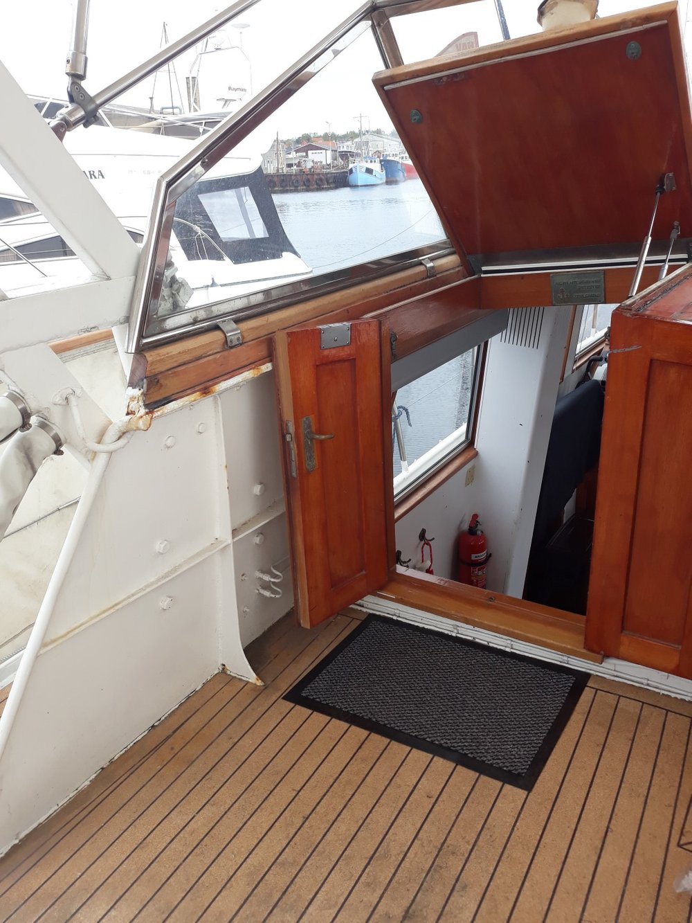 SALON indrettet med 4-5 pers. hjørnesofa og sofabord samt indvendig styreplads med alt i instrumenter, f.eks. Garmin Geonav 11C farveplotter og elektroniske søkort, ekkolod Eagle Ultra 3, Furuno radar GaAs Front End 8, autopilot, joystick til styring og bovpropel mm.