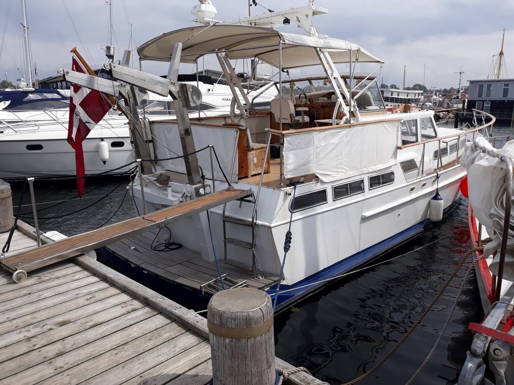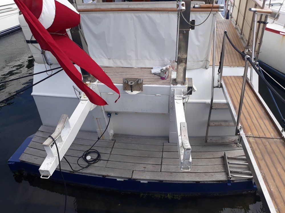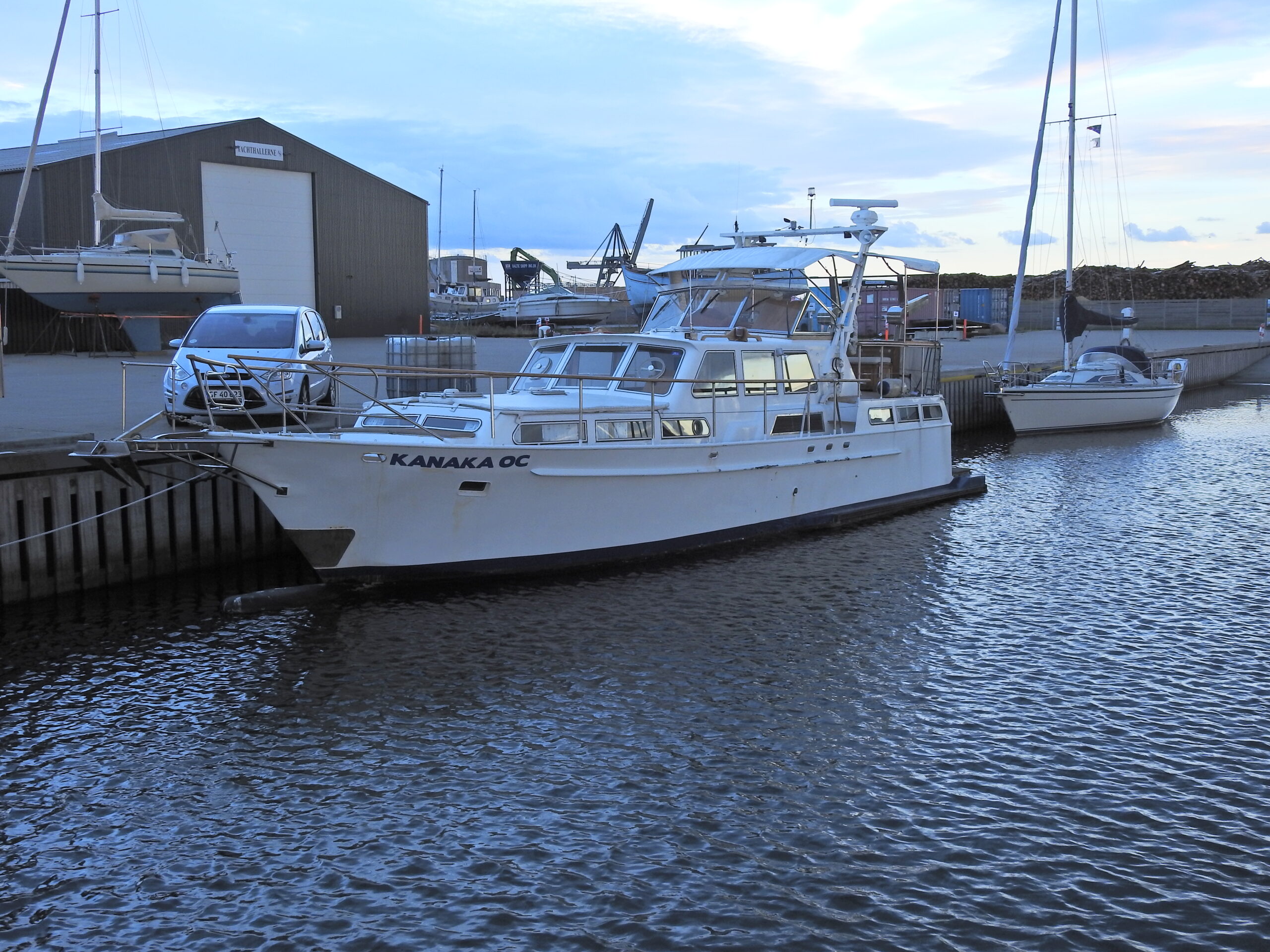 Båden er 14.80 inkl. forpulpit x 4,25 M Dybgang 1,45 M og vejer ca. 22 ton.