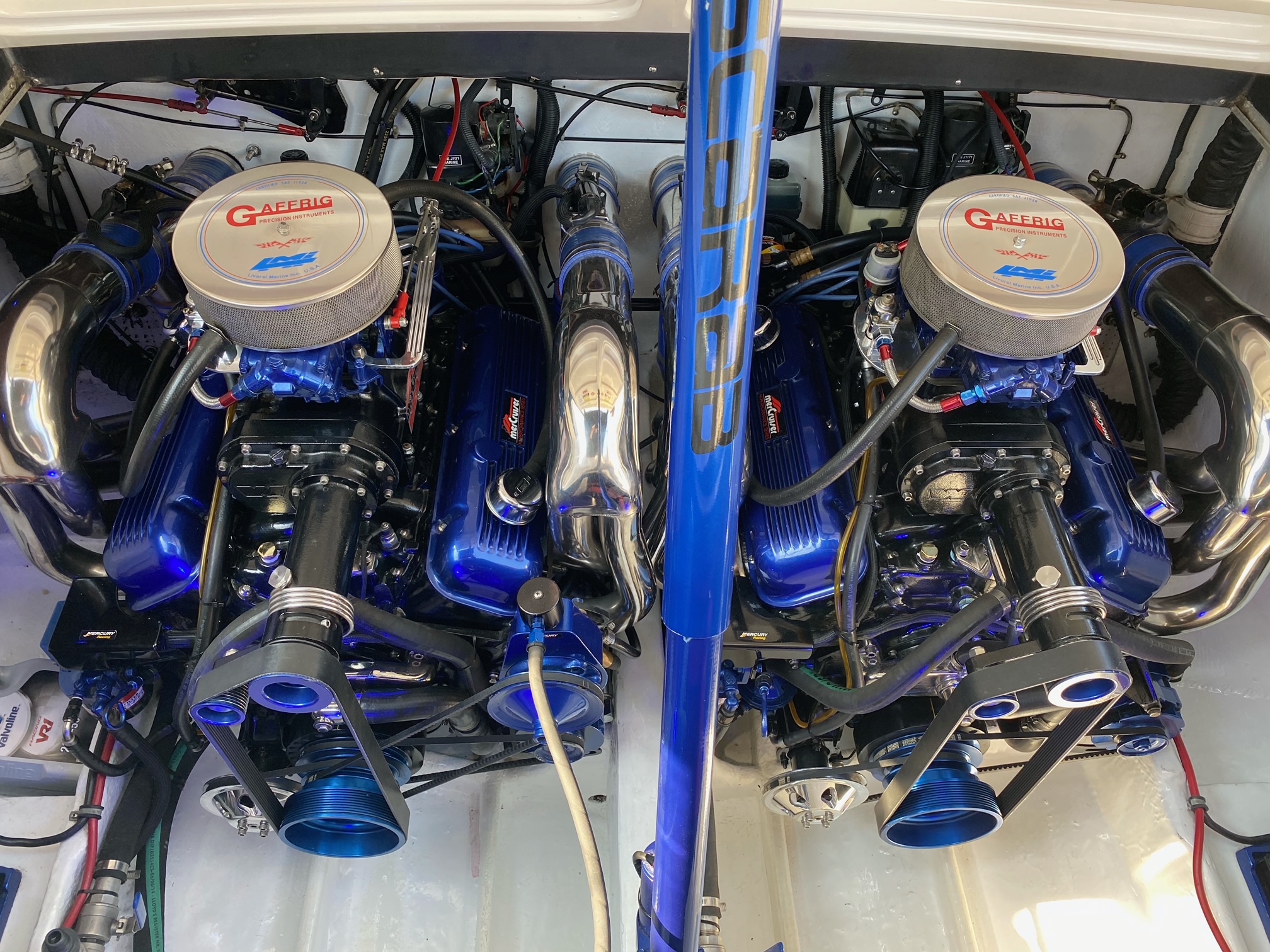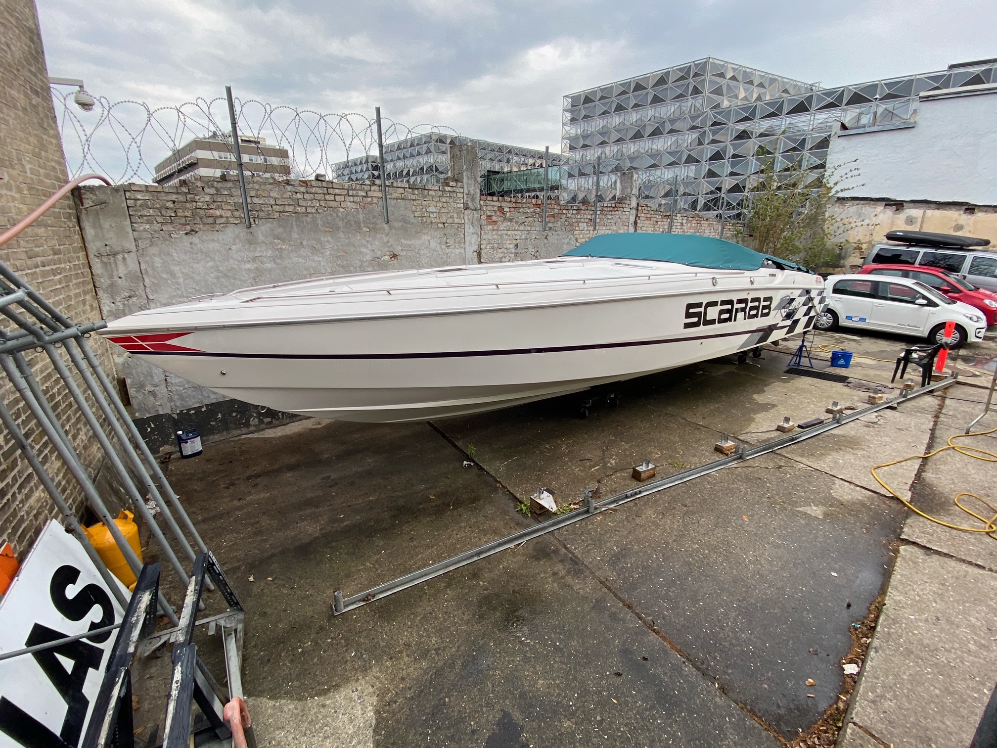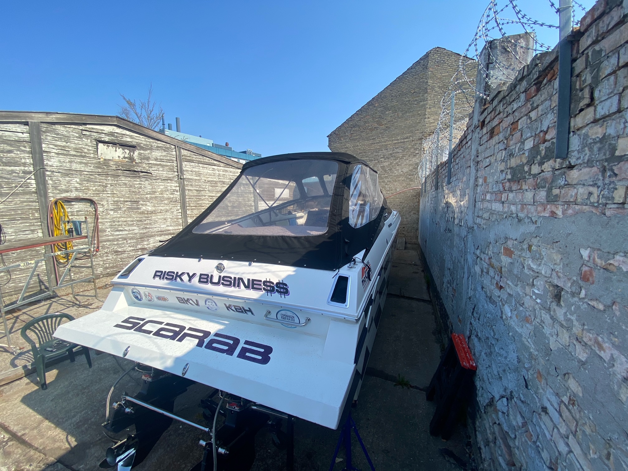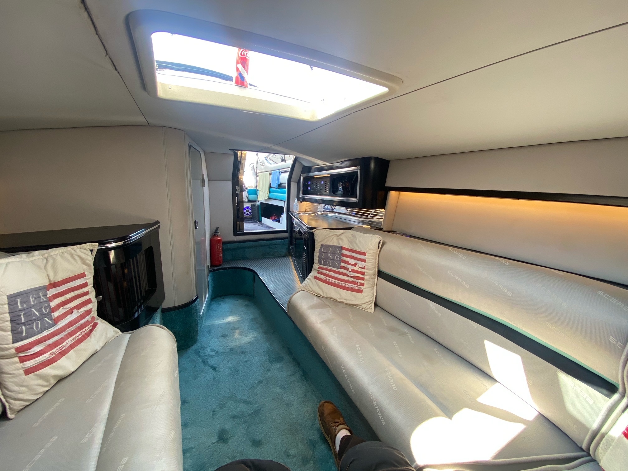 Scarab 34 er en af de fedeste oldschool Powerboats. Motorerne taler for sig selv, de er pudset og poleret, der er autolakeret dele på, alt der omhandler drivlinen er serviceret og passet på en næsten hysterisk måde. billederne taler for sig selv. nemlig meget velholdt, dog er sæder ikke nye mere og det kunne være en ting for den nye ejer og skifte ud om nogle år.