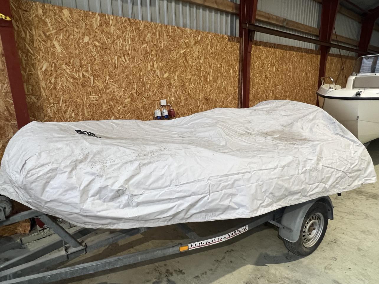 Der medfølger havnecover og trailer uden papir.